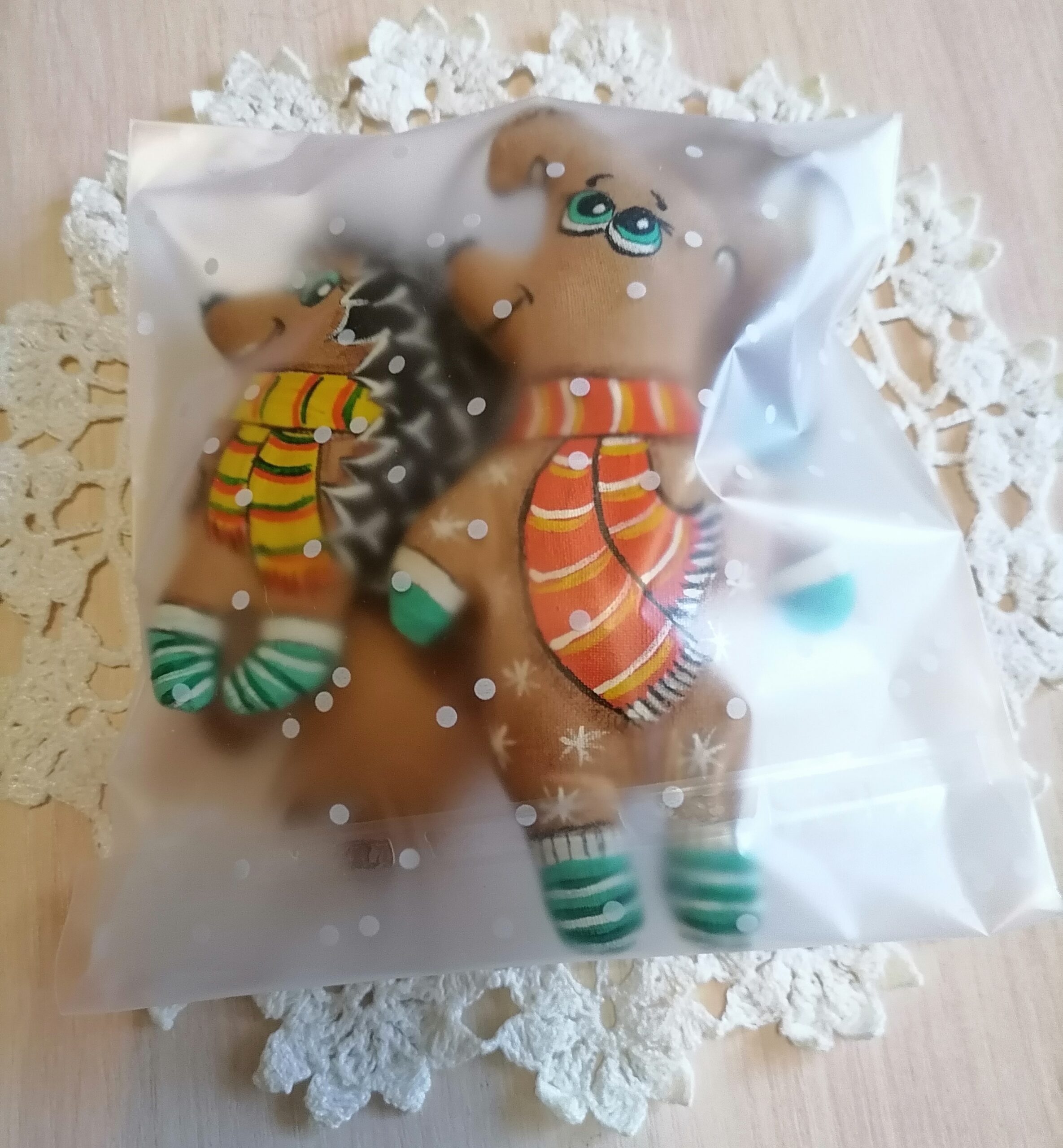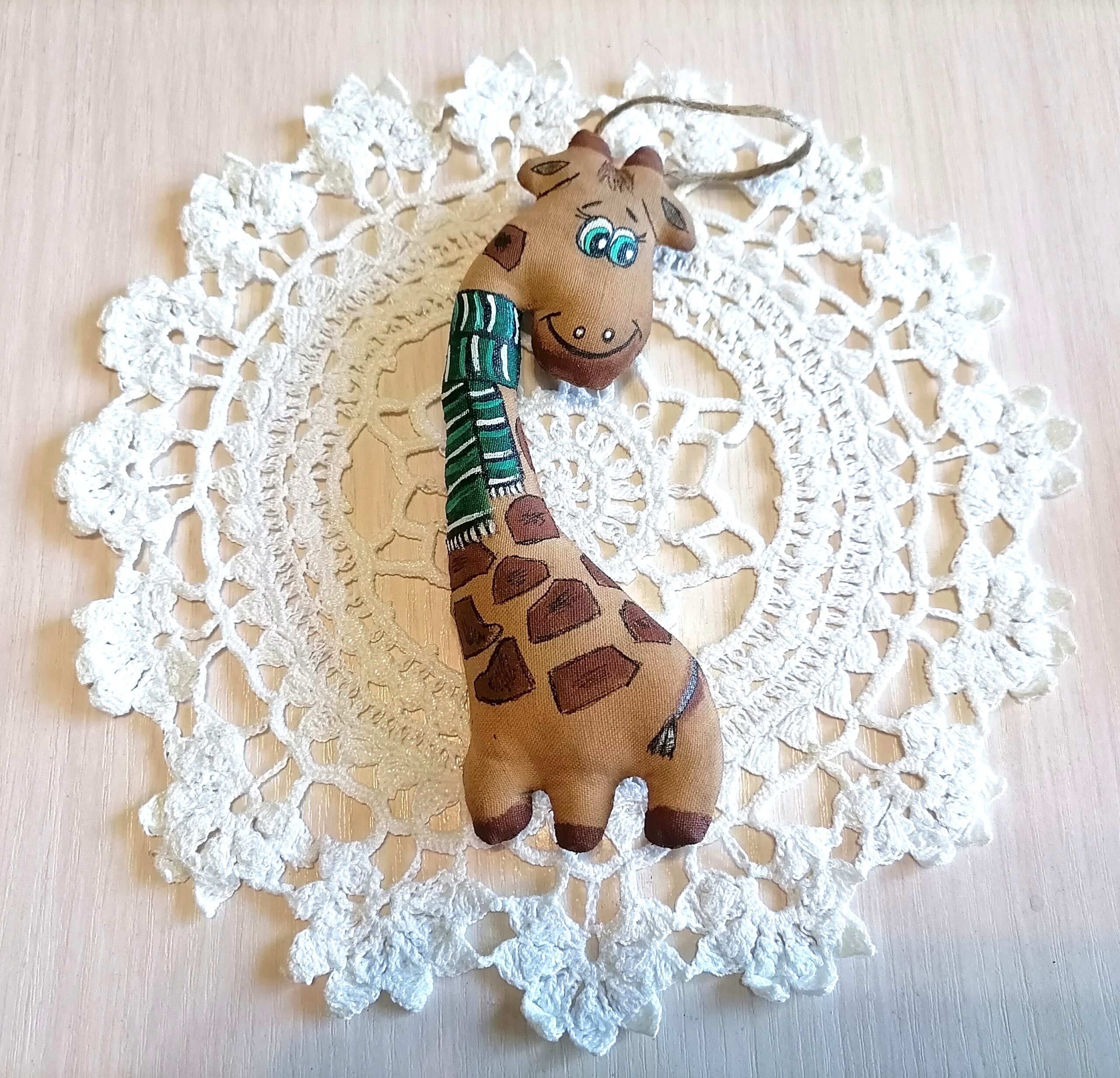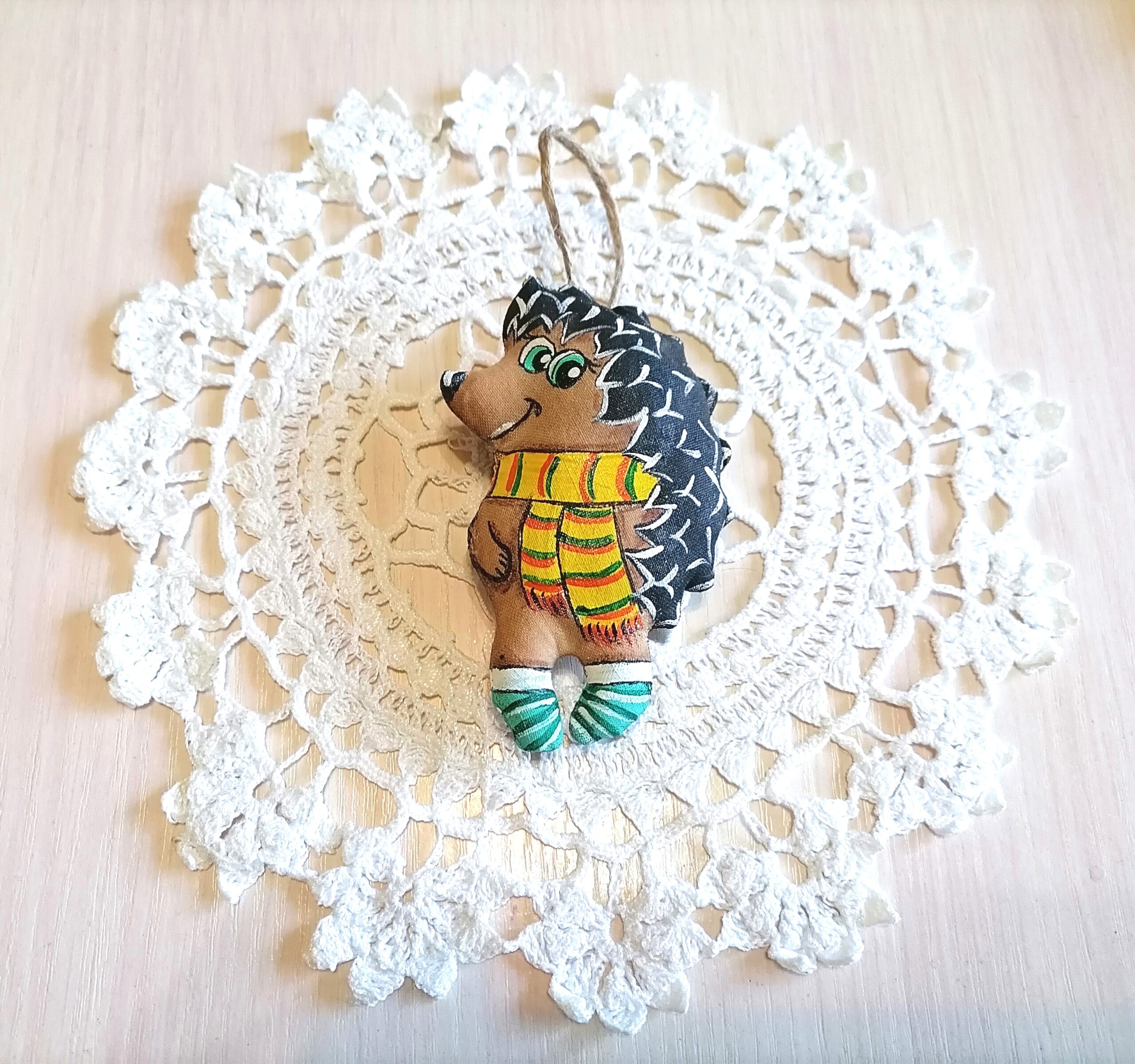 Сшита игрушка из хб ткани , пропитана раствором кофе и корицы , окрашена художественными акриловыми красками и гелиевой ручкой . Набита синтепоном . Имеется петелька из джута на пуговке .