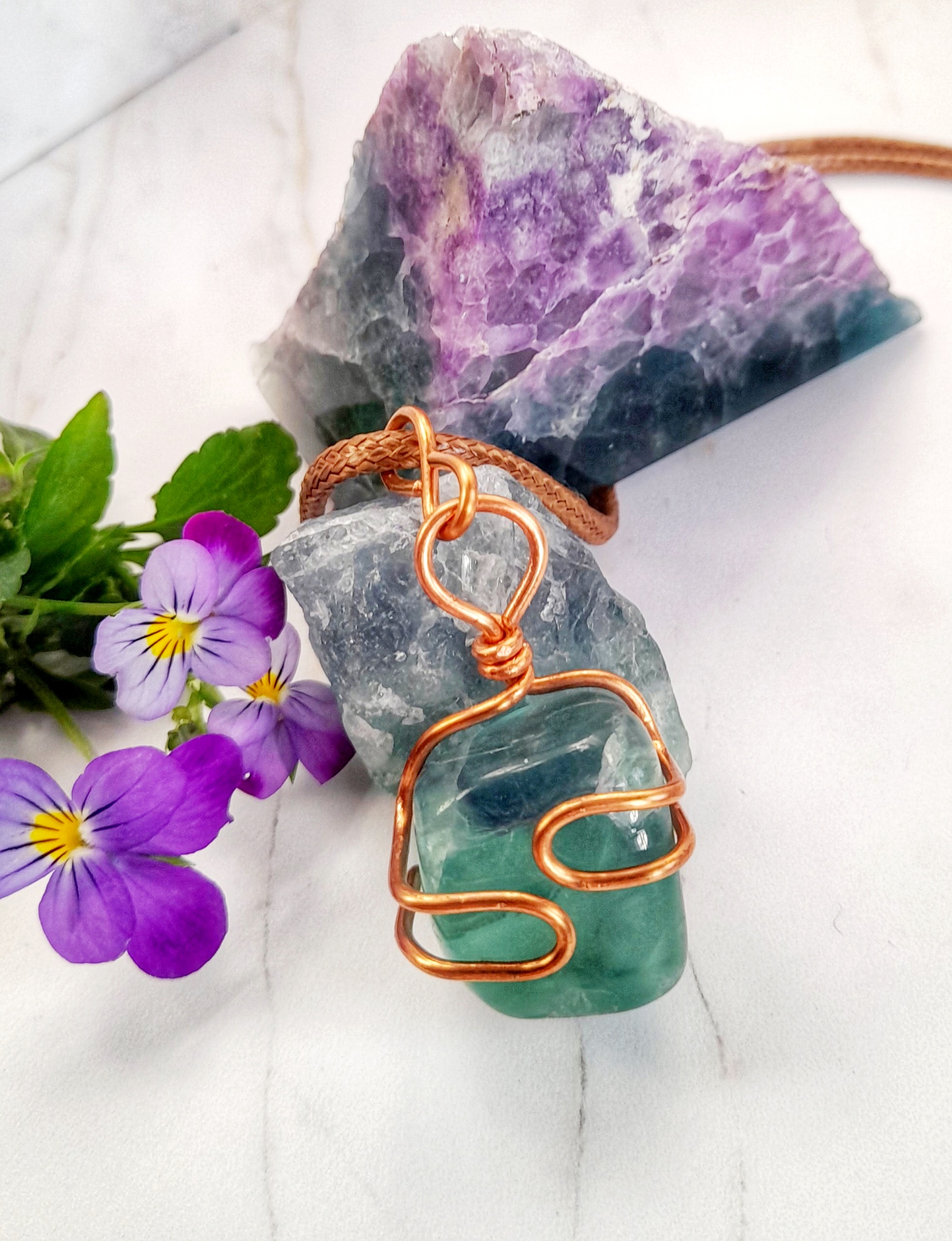 Кулоны с потрясающим флюоритом дополнят ваш неповторимый образ и индивидуальный стиль. Кулоны можно также дополнять браслетами из флюорита, которые будут усиливать их действие. Фурнитура из натуральной меди будет проявлять лечебные свойства меди.