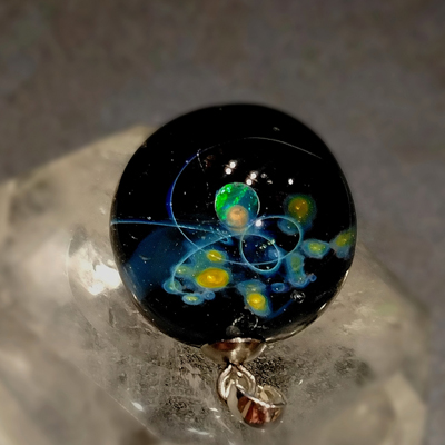 температуре 1200 градусов и отожжен для крепости в муфельной печи по программе для снятия внутренних напряжений. Диаметр космошара 23мм + 1 см серебренный бейл