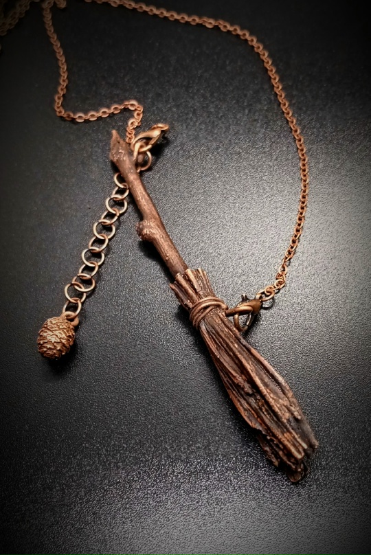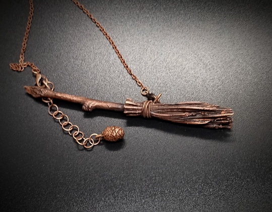 Кулон в виде метлы,выполнен из в технике гальванопластика