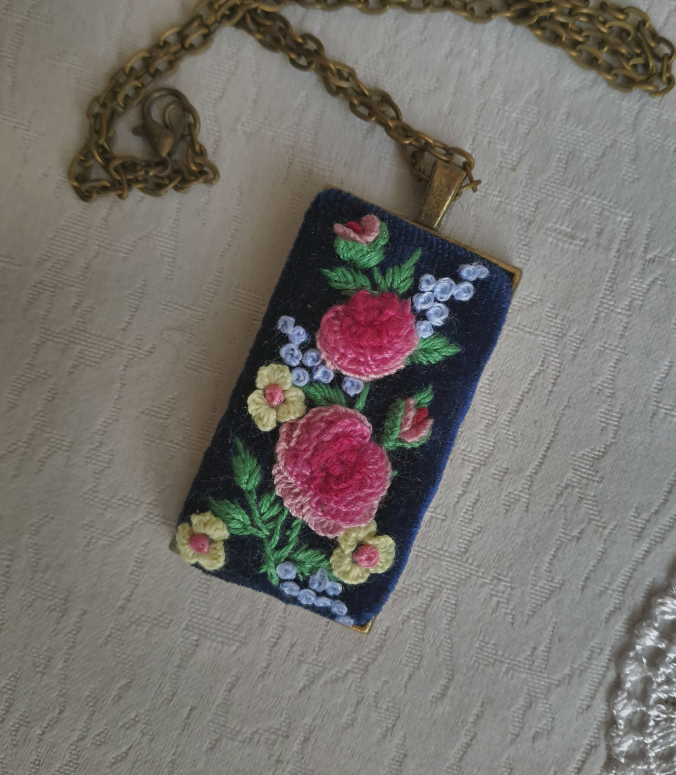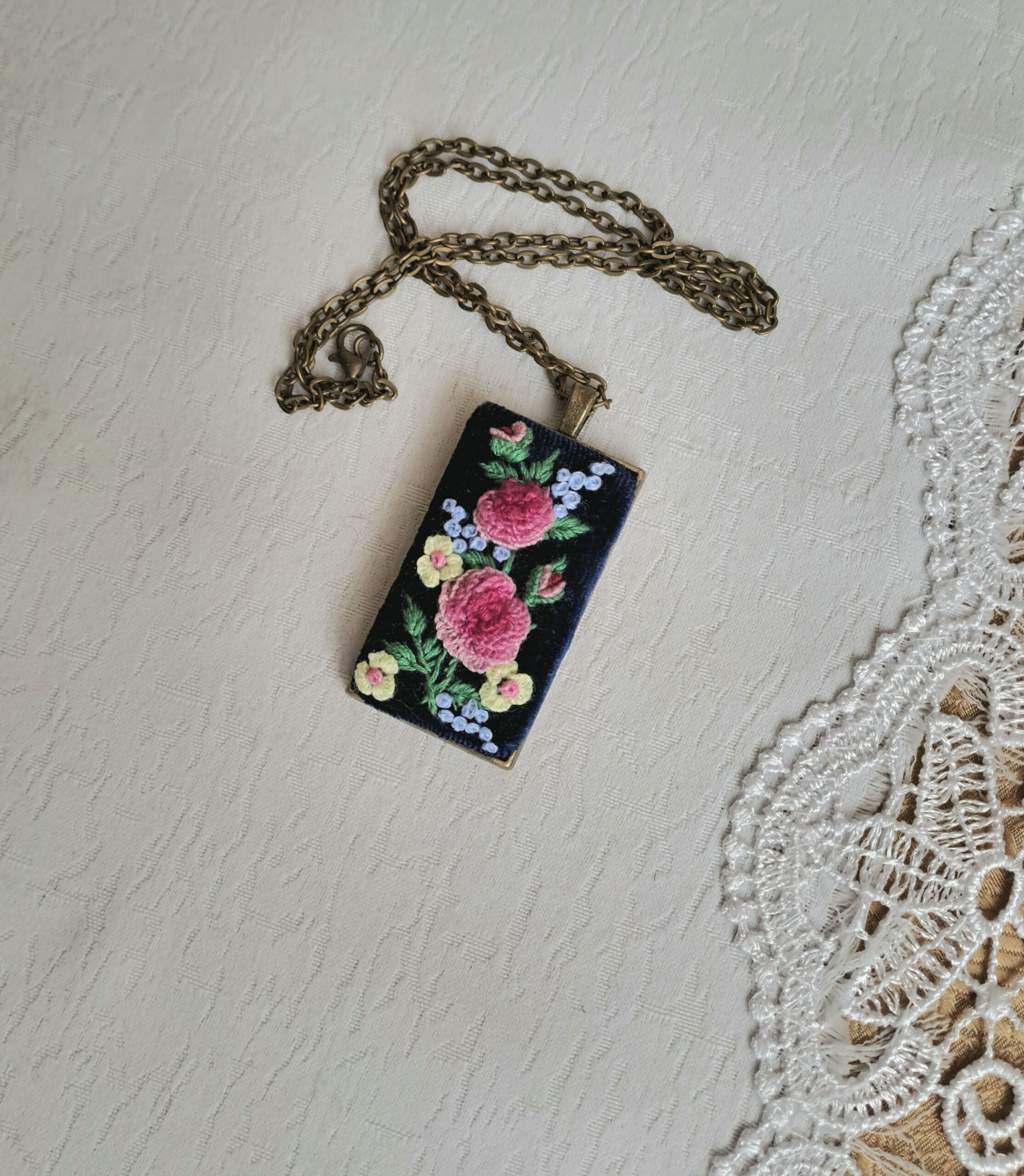 Кулон на цепочке с ручной объемной вышивкой
