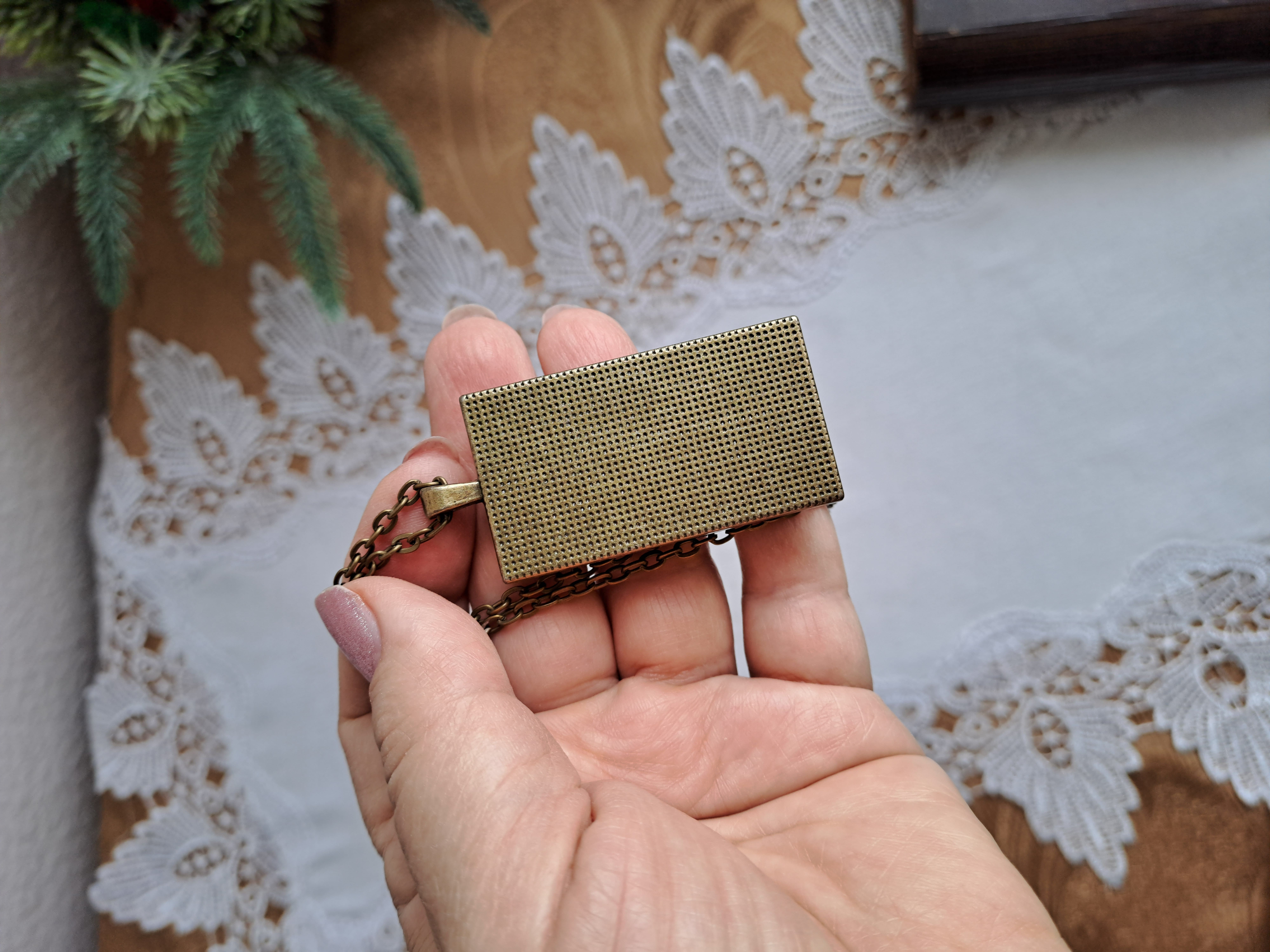 Сеттинг и цепочка цвета состаренной бронзы.