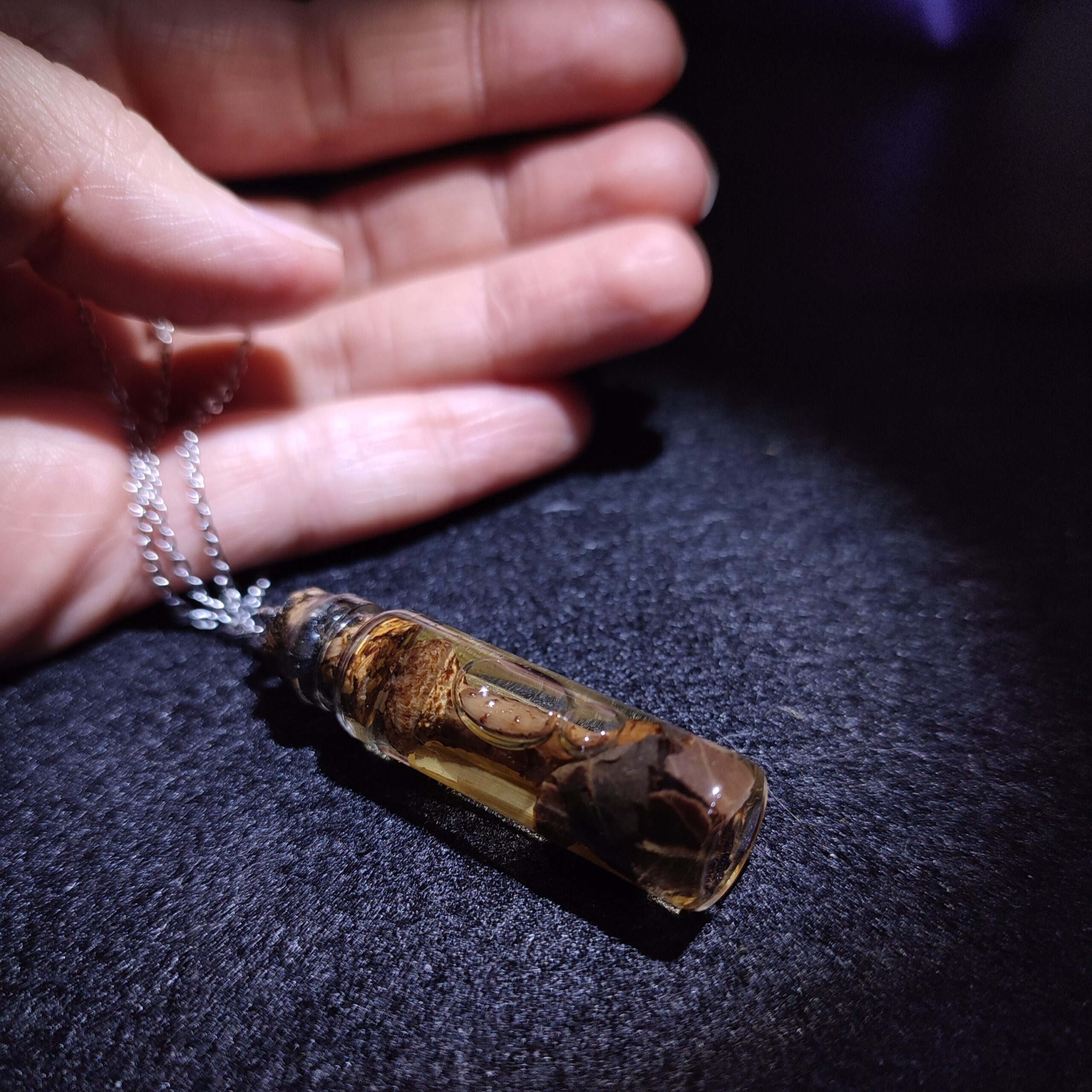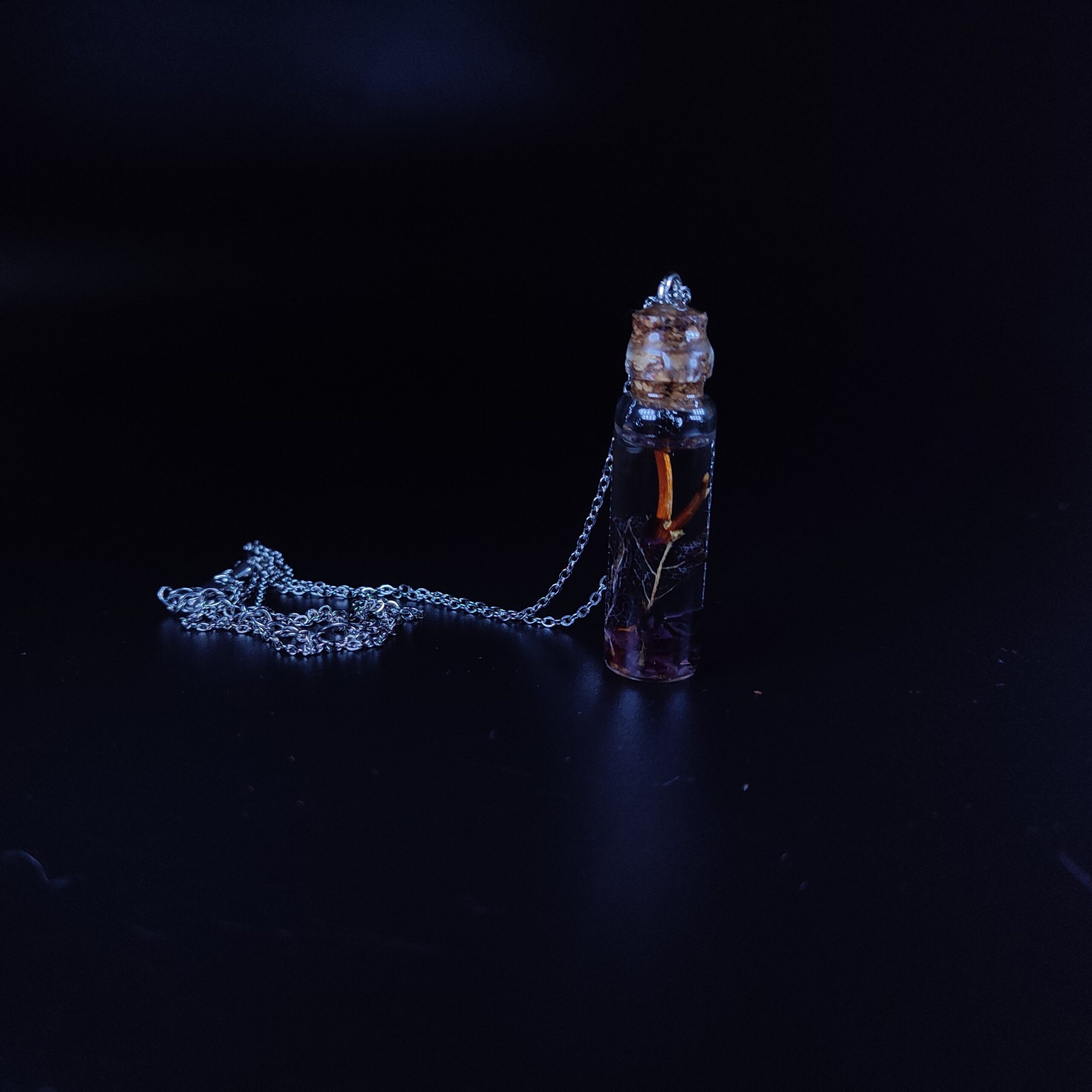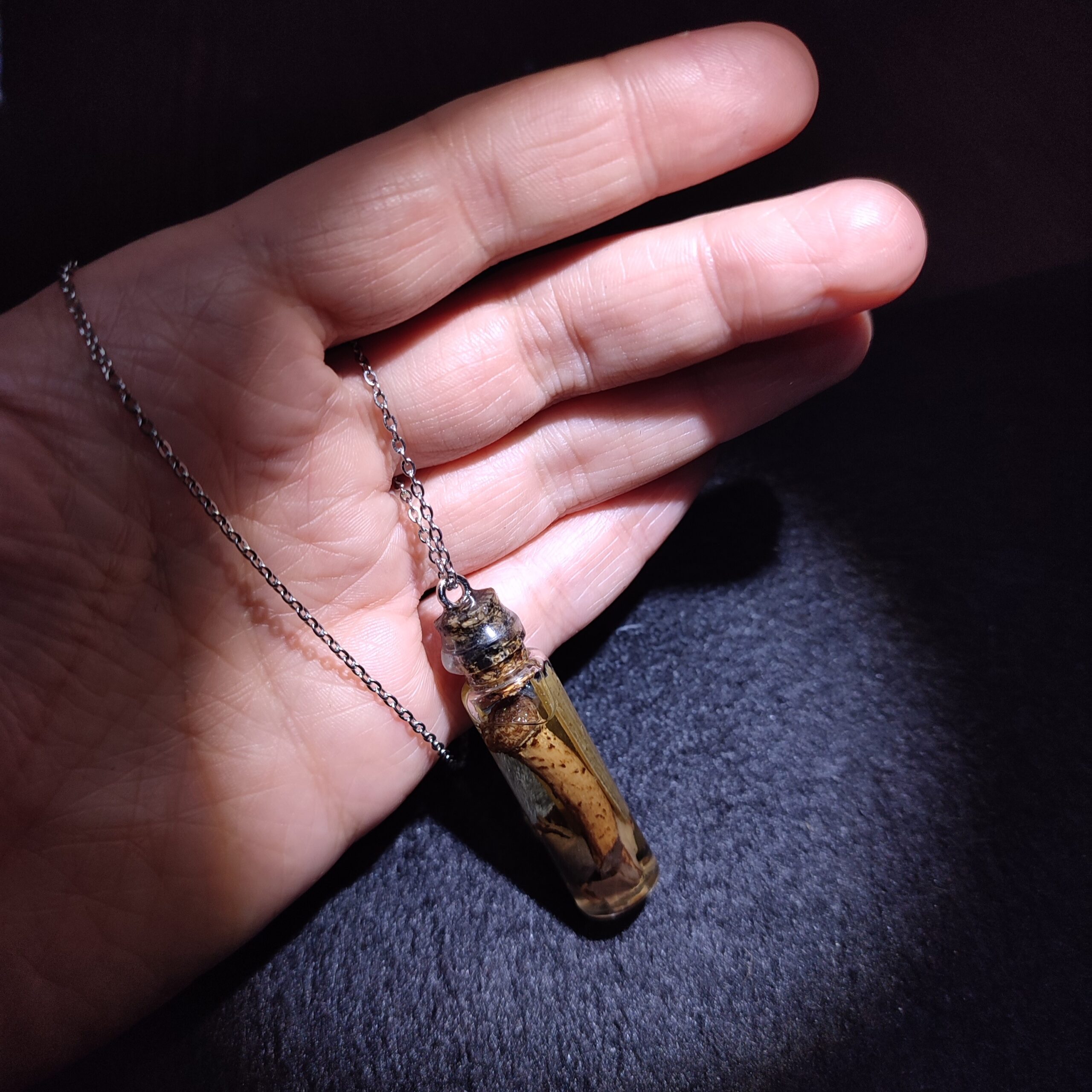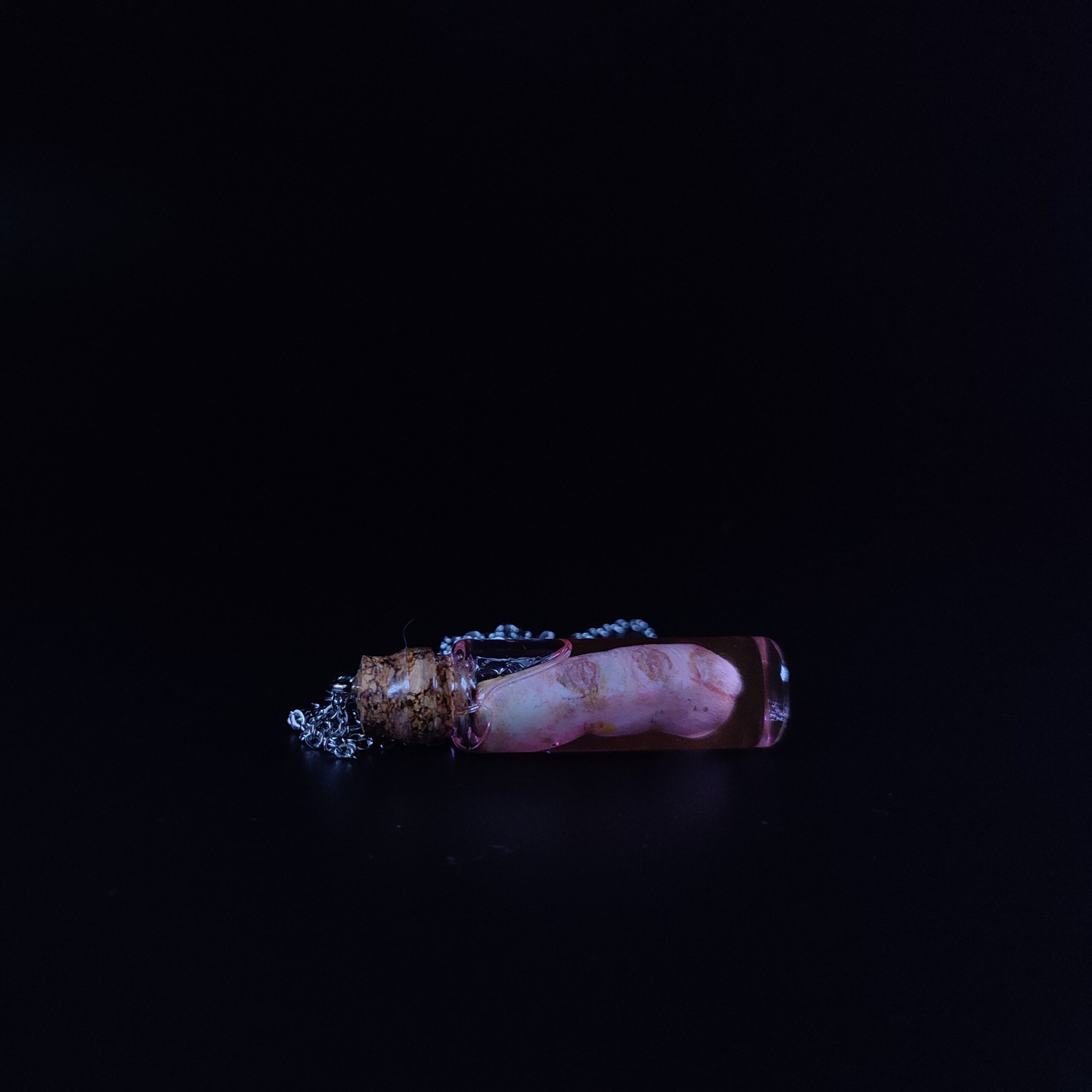 кулоны ручной работы в ассортименте — склянки с различным содержимым от цветов до глаз.