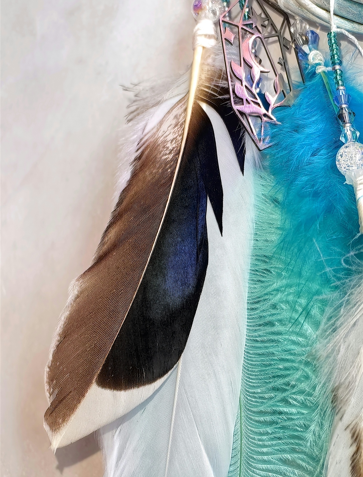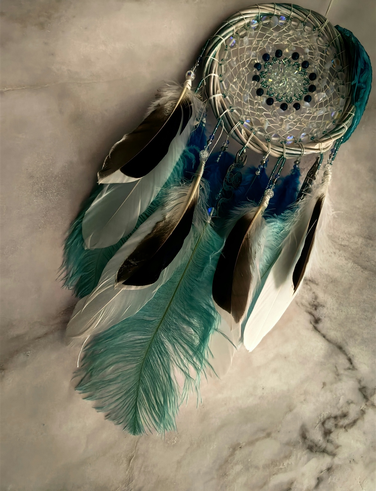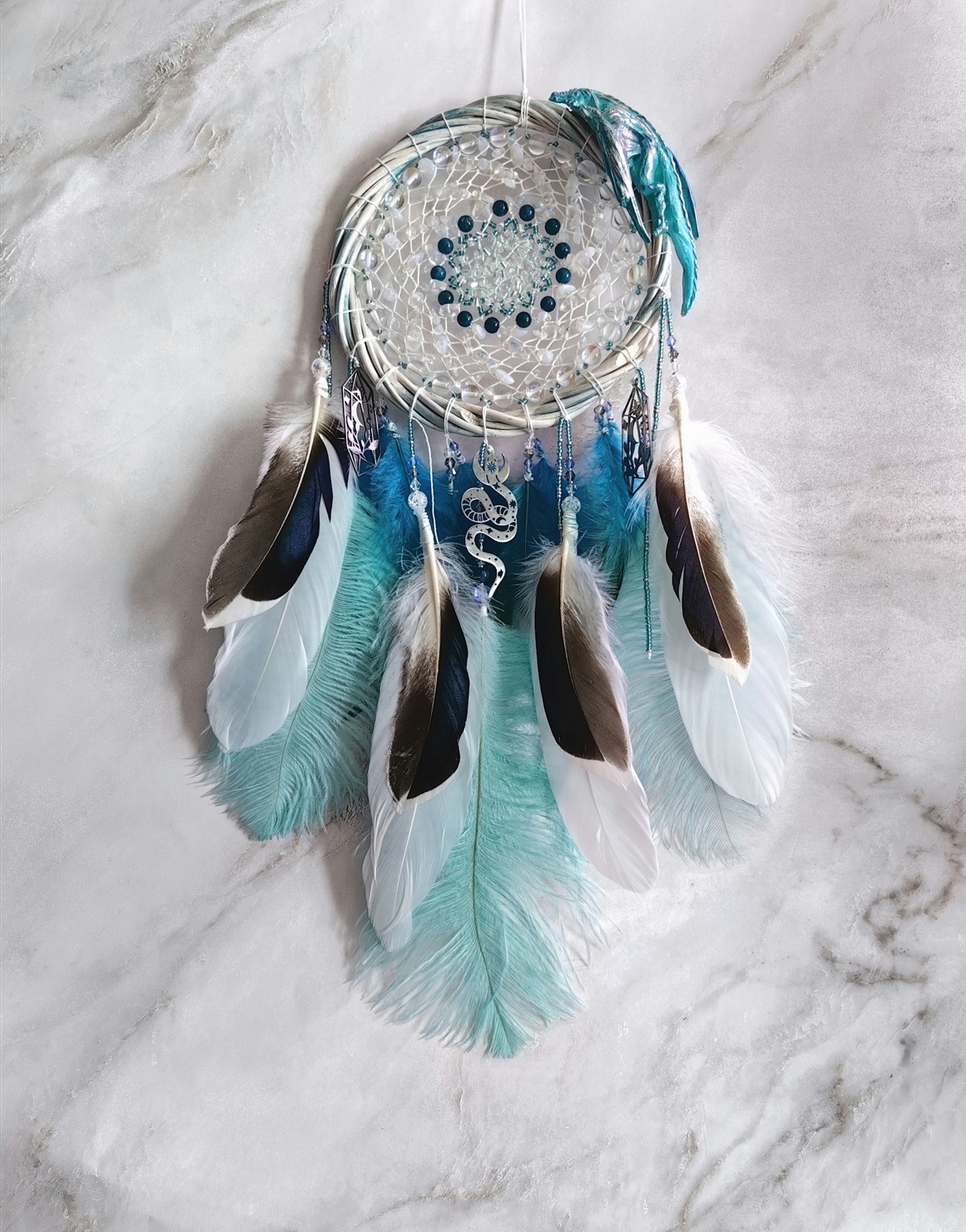 ✨Этот ловец — идеальный подарок для тех, кто ценит красоту деталей и верит в силу символов. Позвольте «Бирюзовой симфонии снов» наполнить ваш дом гармонией и защитить сон от тревог! 🌘