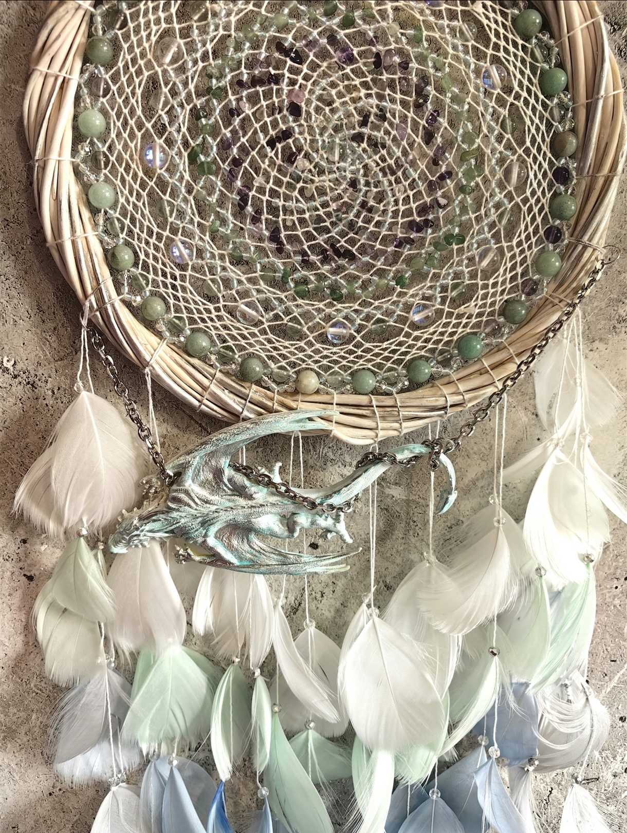 Метки: авантюрин, Аметист, Дракон, ловец снов, ручная работа, украшение для дома, флюорит