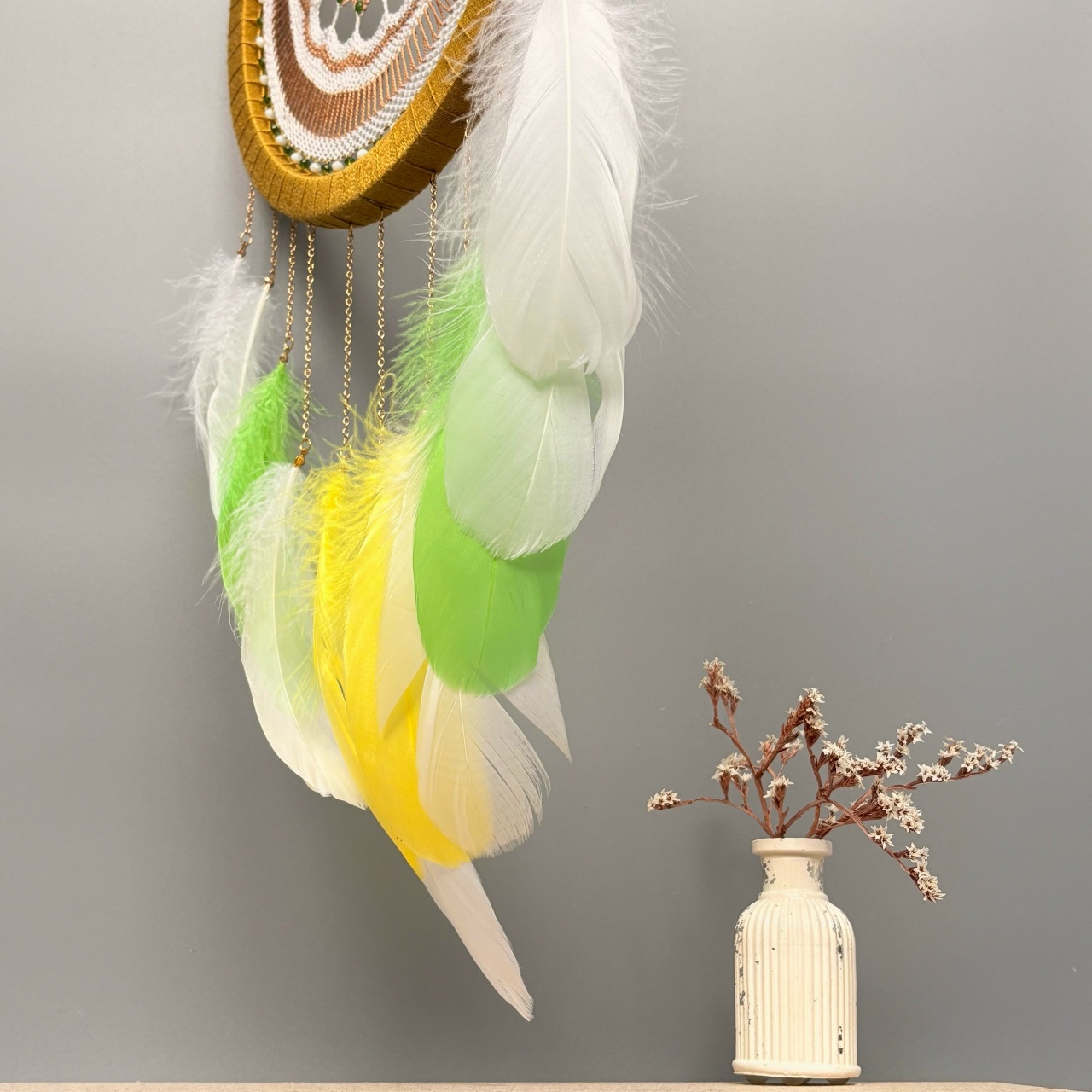 Плотная и прочная пластиковая основа, 100% хлопковая пряжа, стеклянные бусины, бусины из пластика, перья гуся.