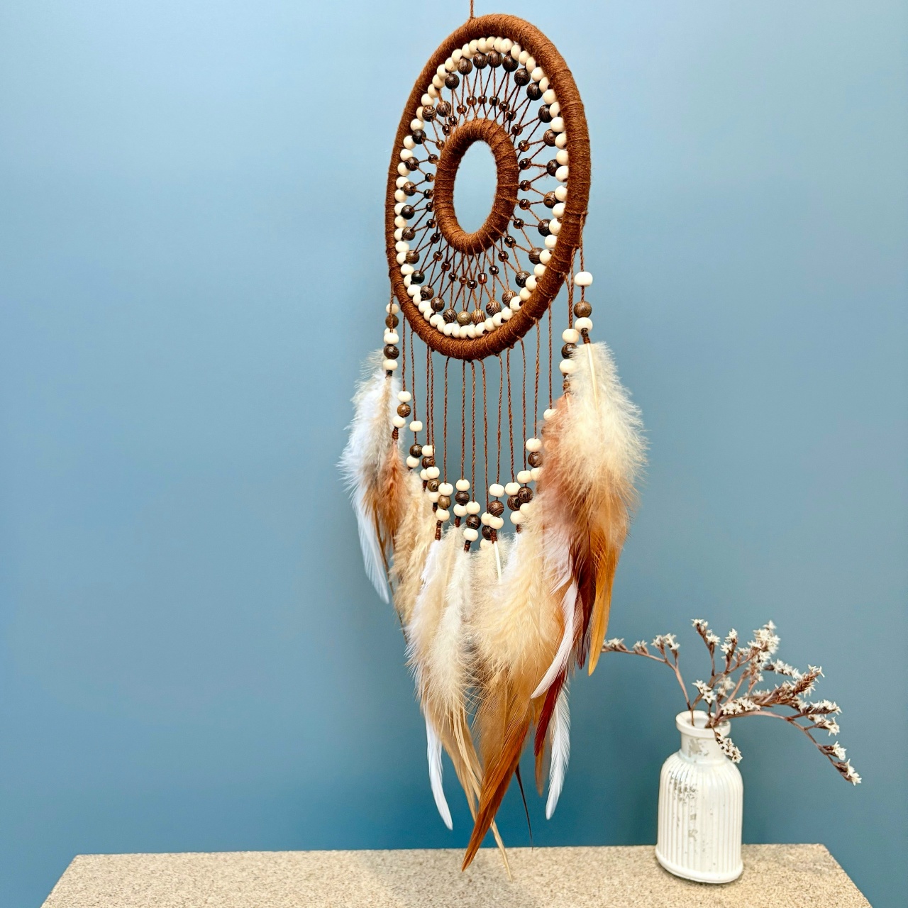 ловец снов с бусинами, ловец снов с перьями, деревянный ловец снов,