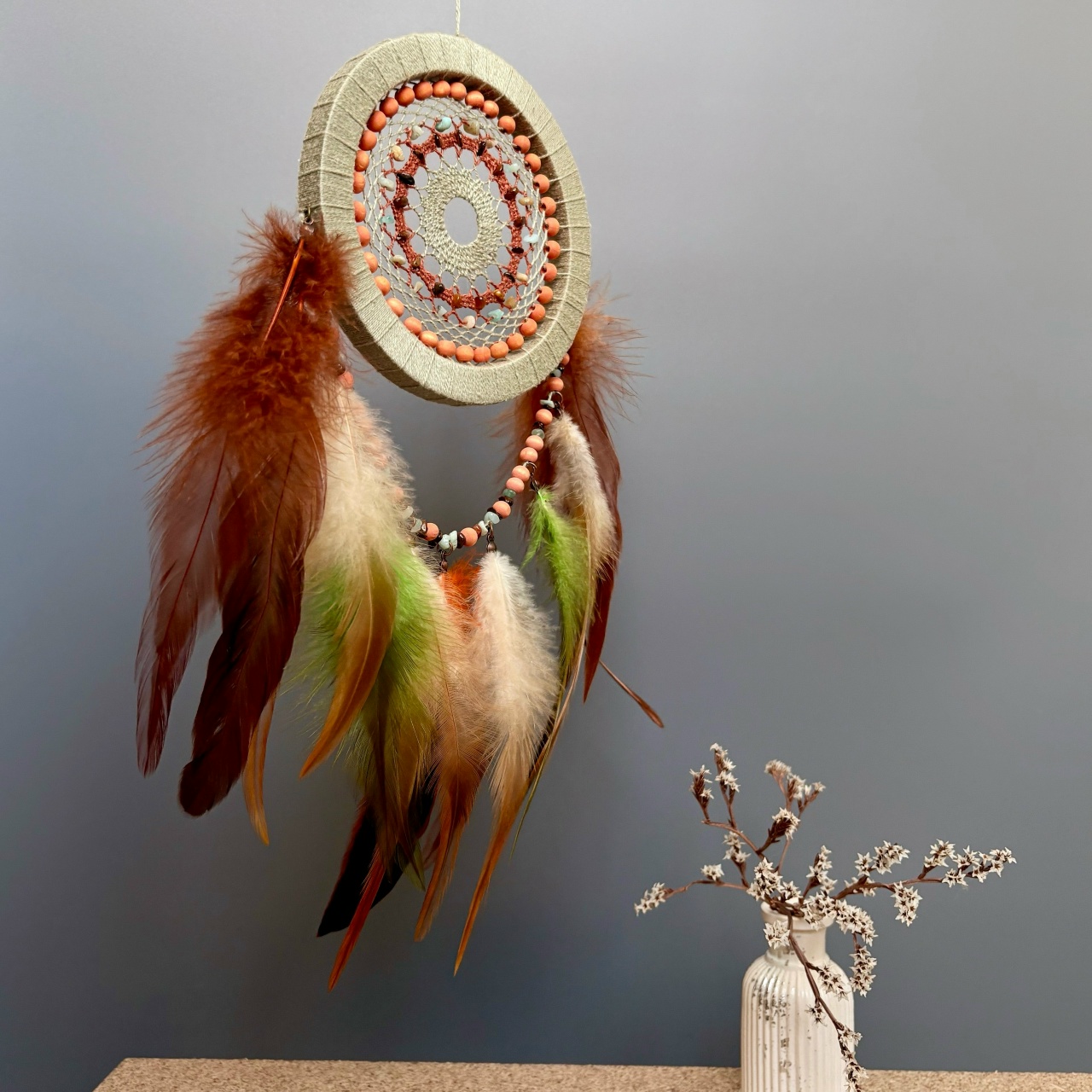 Такой ловец снов станет стильным дополнением любого интерьера – от модерна до минимализма.