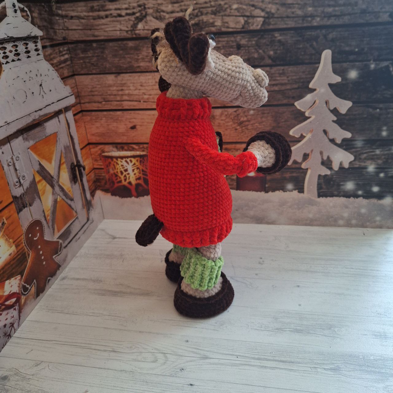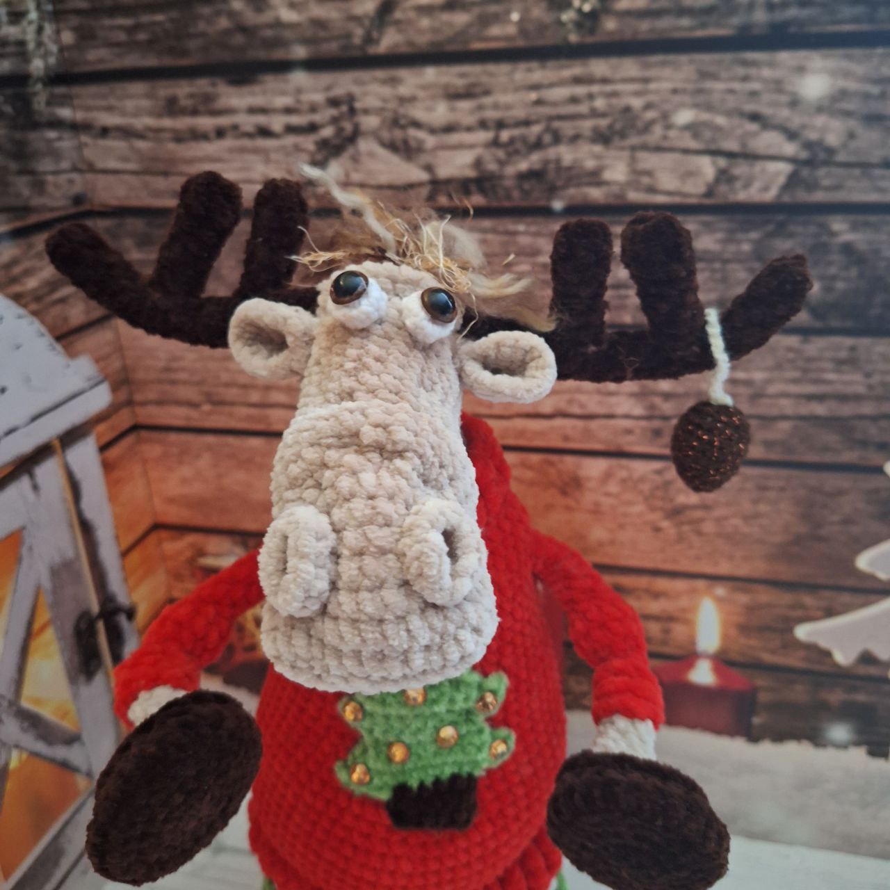 Лось Рудольф  — вязаная игрушка на металлическом каркасе из плюшевой пряжи