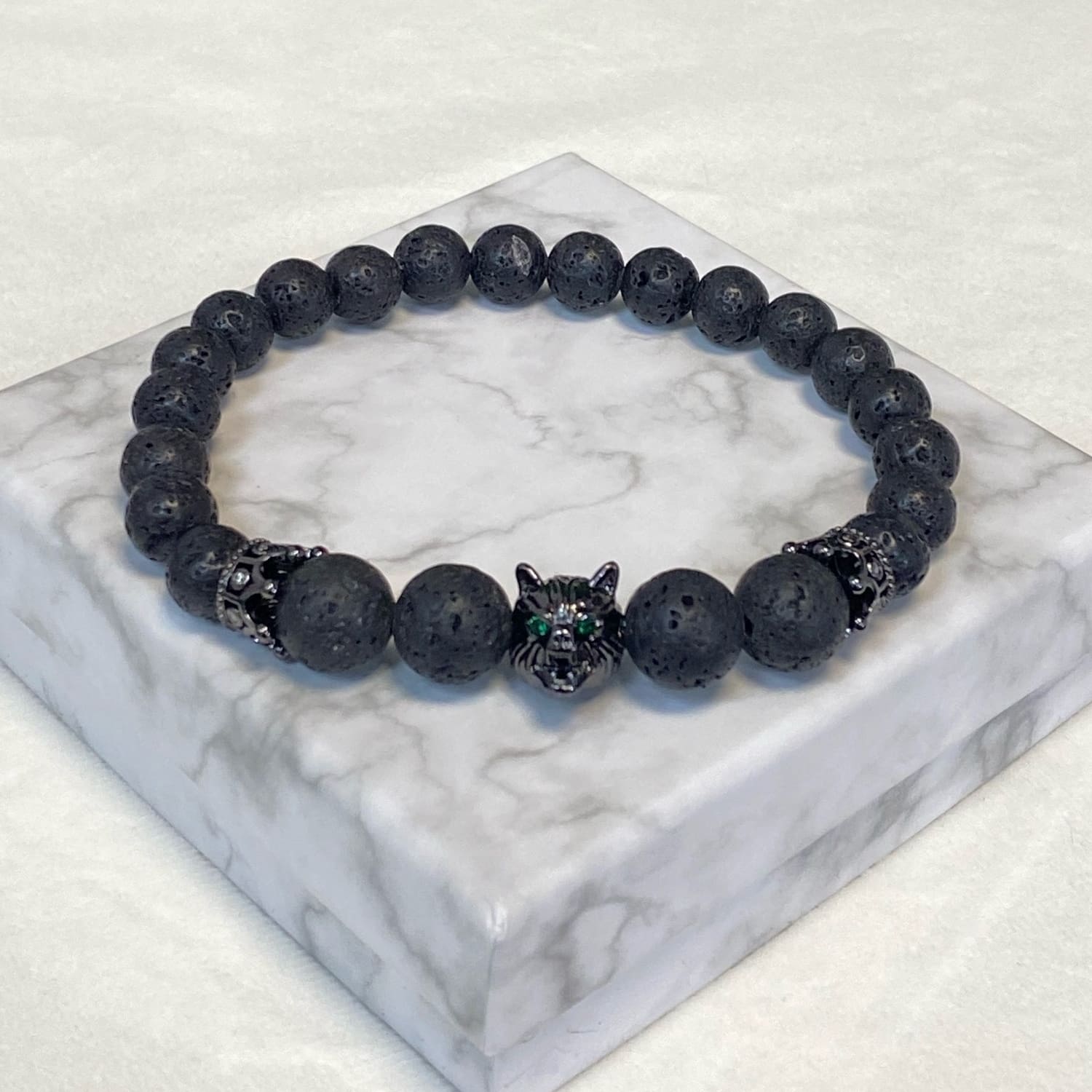 Браслет из лавы с подвеской в виде головы волка — это мощный аксессуар с глубоким символизмом, сочетающий в себе две сильные энергии.