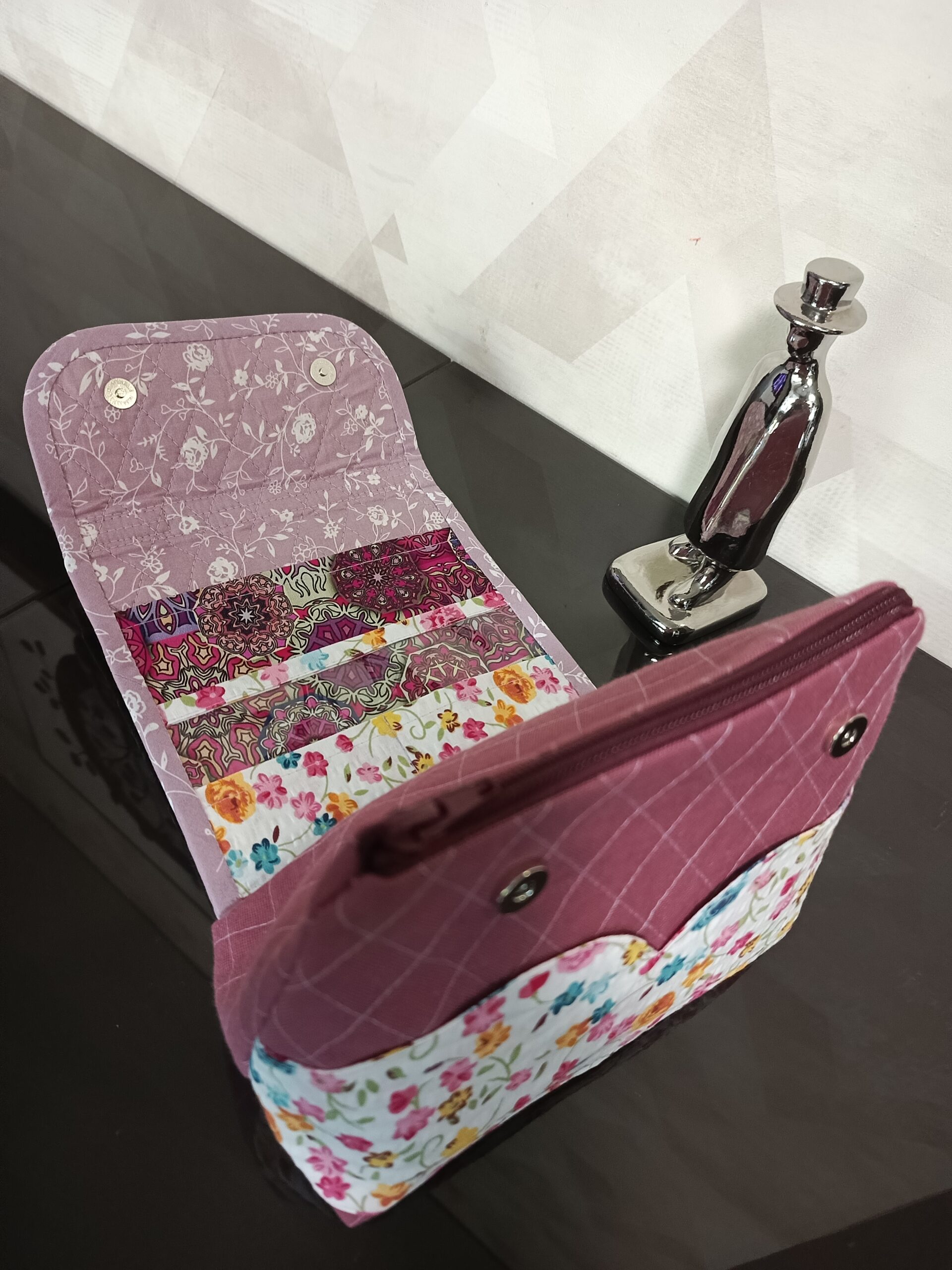 Изготовлен из натурального хлопкового прочного и приятного на ощупь текстиля. Простегана с уплотнителем для держания формы. Удобная и крепкая застежка магнитные кнопки надежно сохранит содержимое от рассыпания.