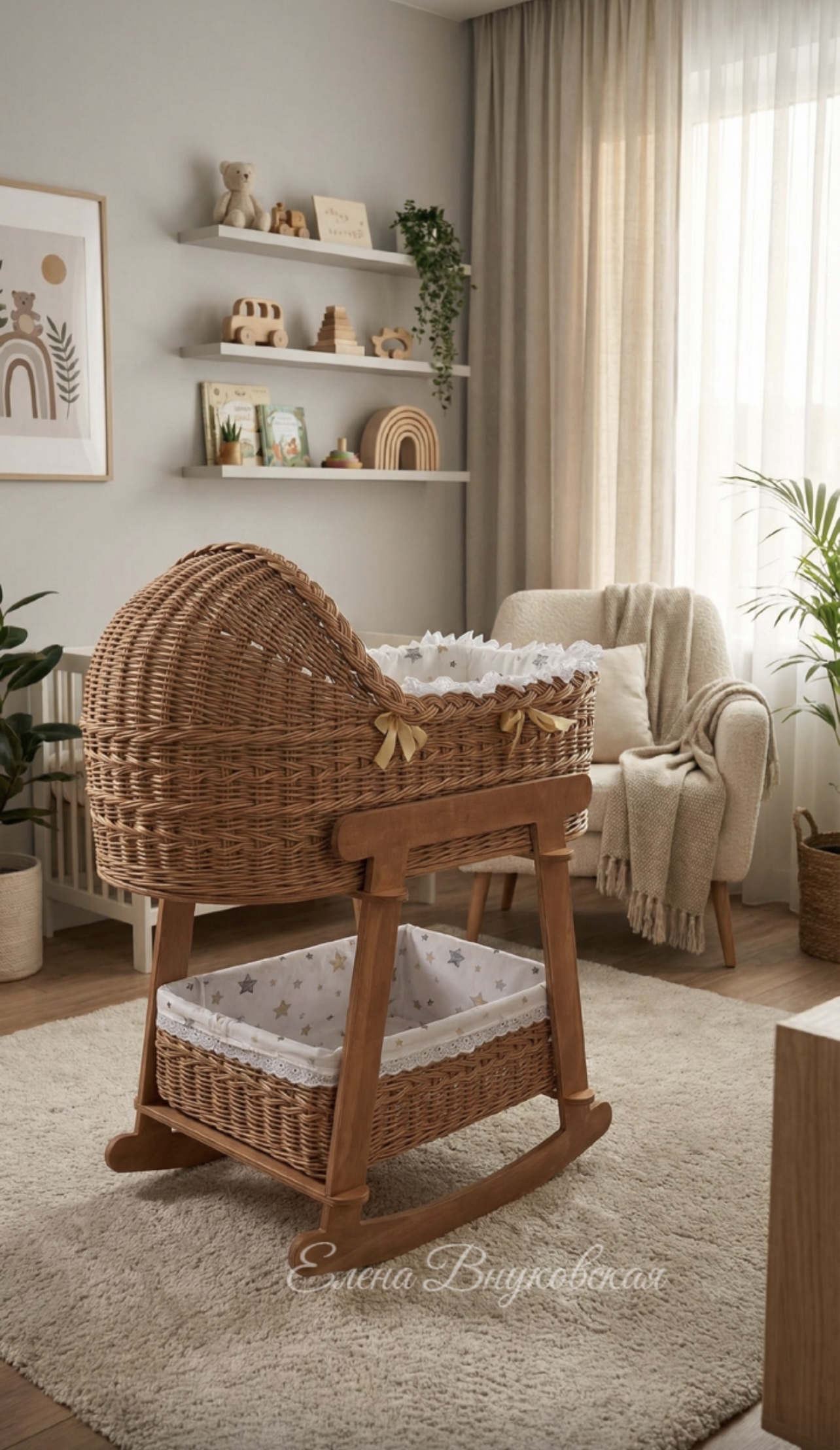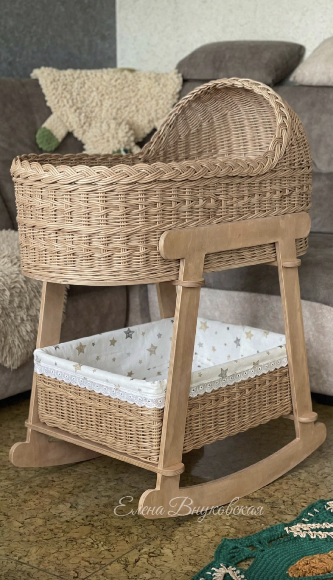 Каждая люлька сплетена вручную с вниманием к деталям: ровные борта, надежное дно, аккуратное плетение и гармоничные сочетания цветов. Она красиво смотрится в любой комнате и создаёт особую, тёплую атмосферу в доме.️