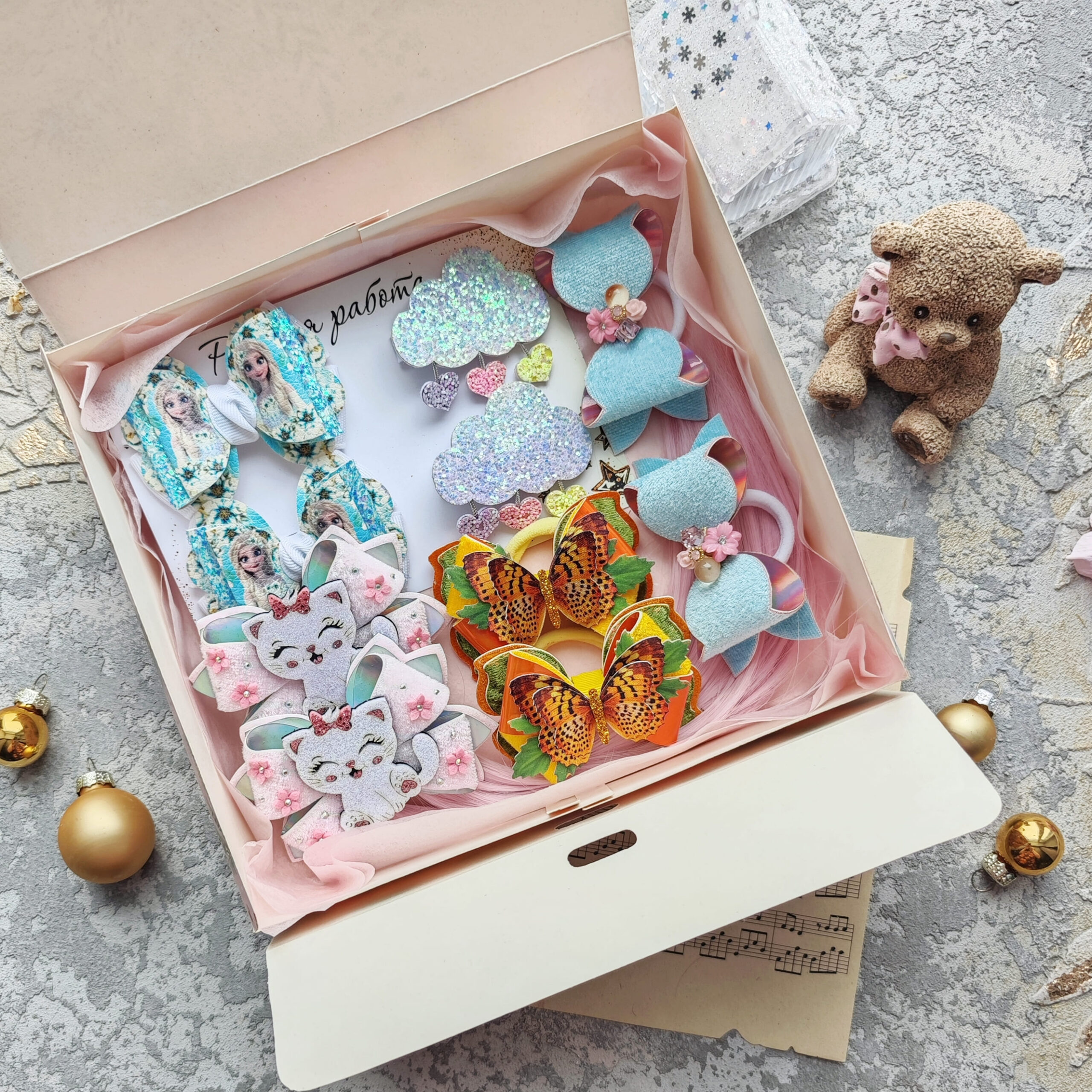 Ищете идеальный подарок для маленькой принцессы? Представляем изысканный набор бантиков ручной работы, аккуратно уложенный в элегантную подарочную коробочку. Этот набор не просто аксессуар — это маленькое чудо, которое подарит радость и украсит любой образ!
