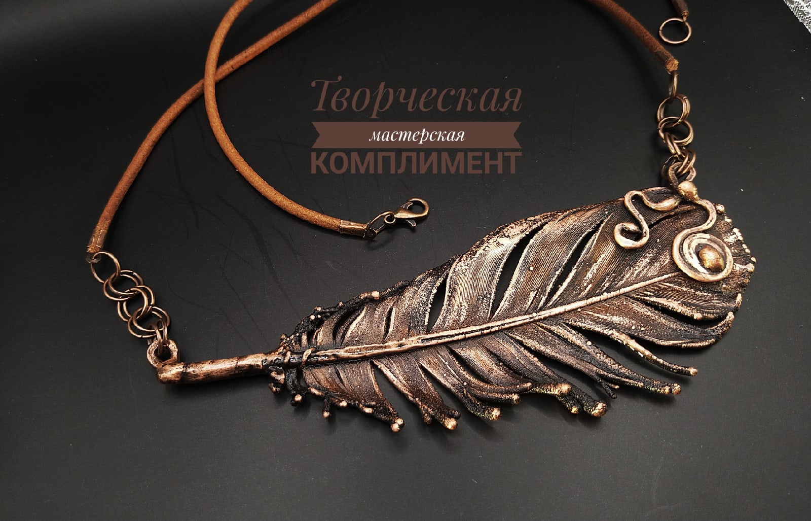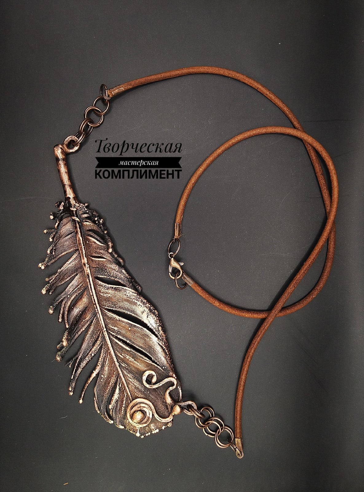 Медь, чернение, кожаный шнур (длину шнура можно изменить)