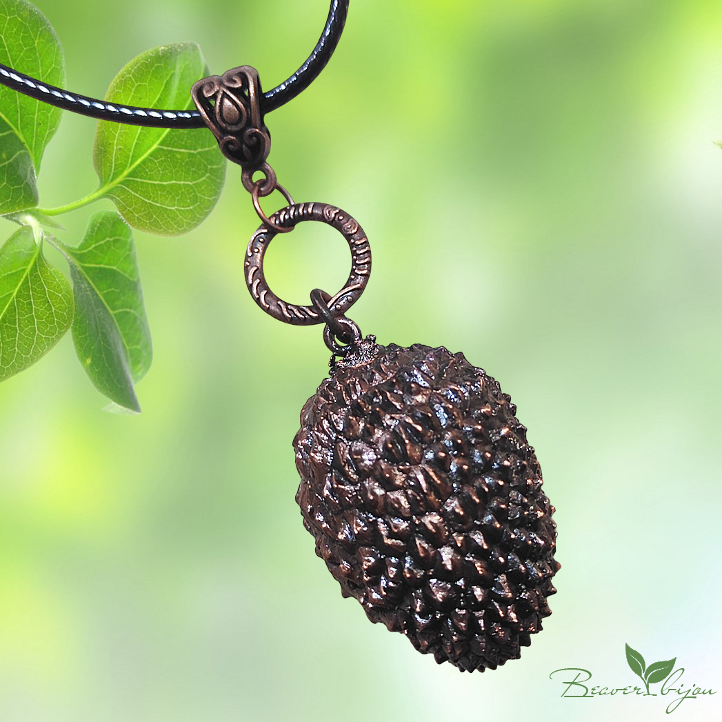 Подвеска из плода личи, омедненного методом гальванопластики.