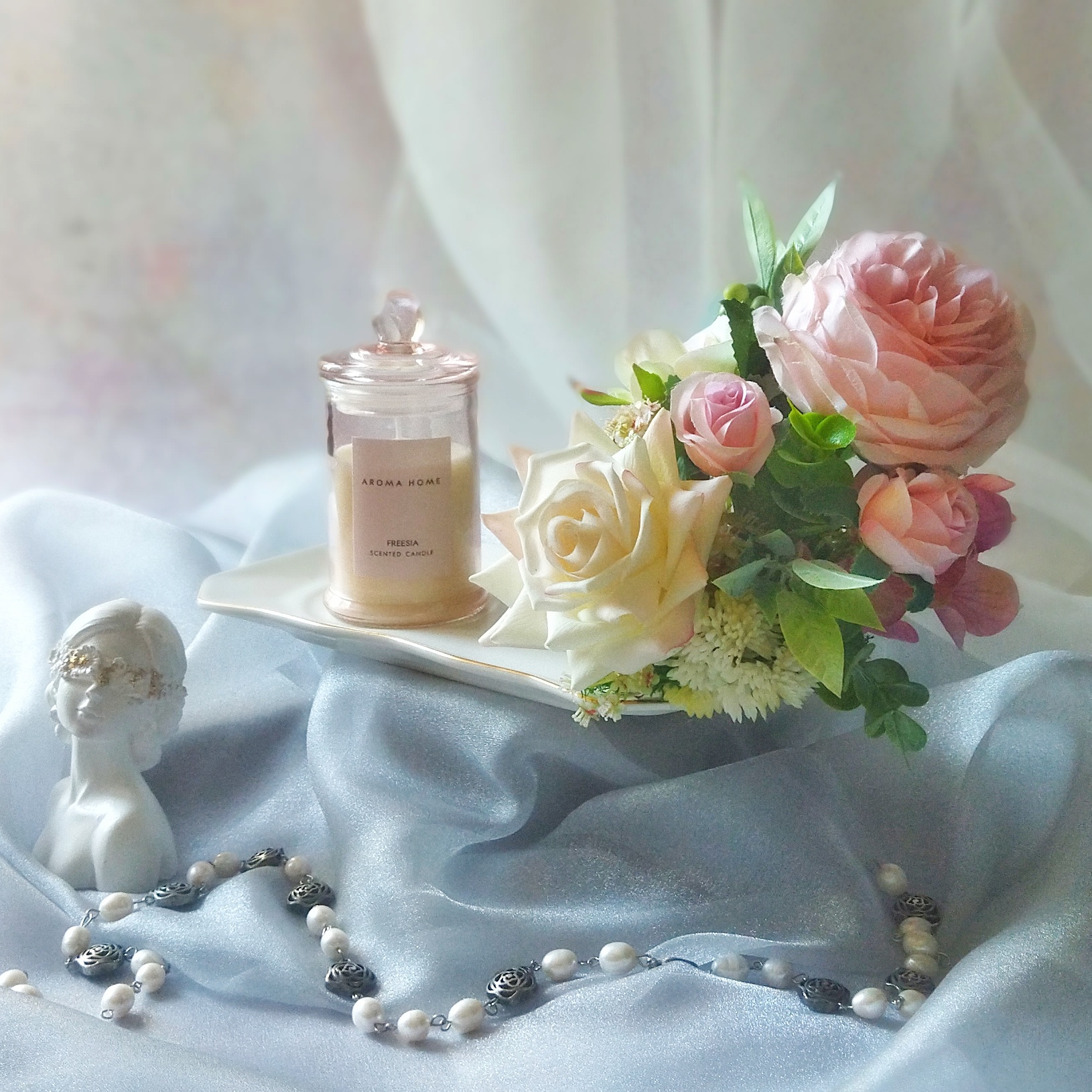 В набор входит: подсвечник, букет малышка, ароматическая свеча.