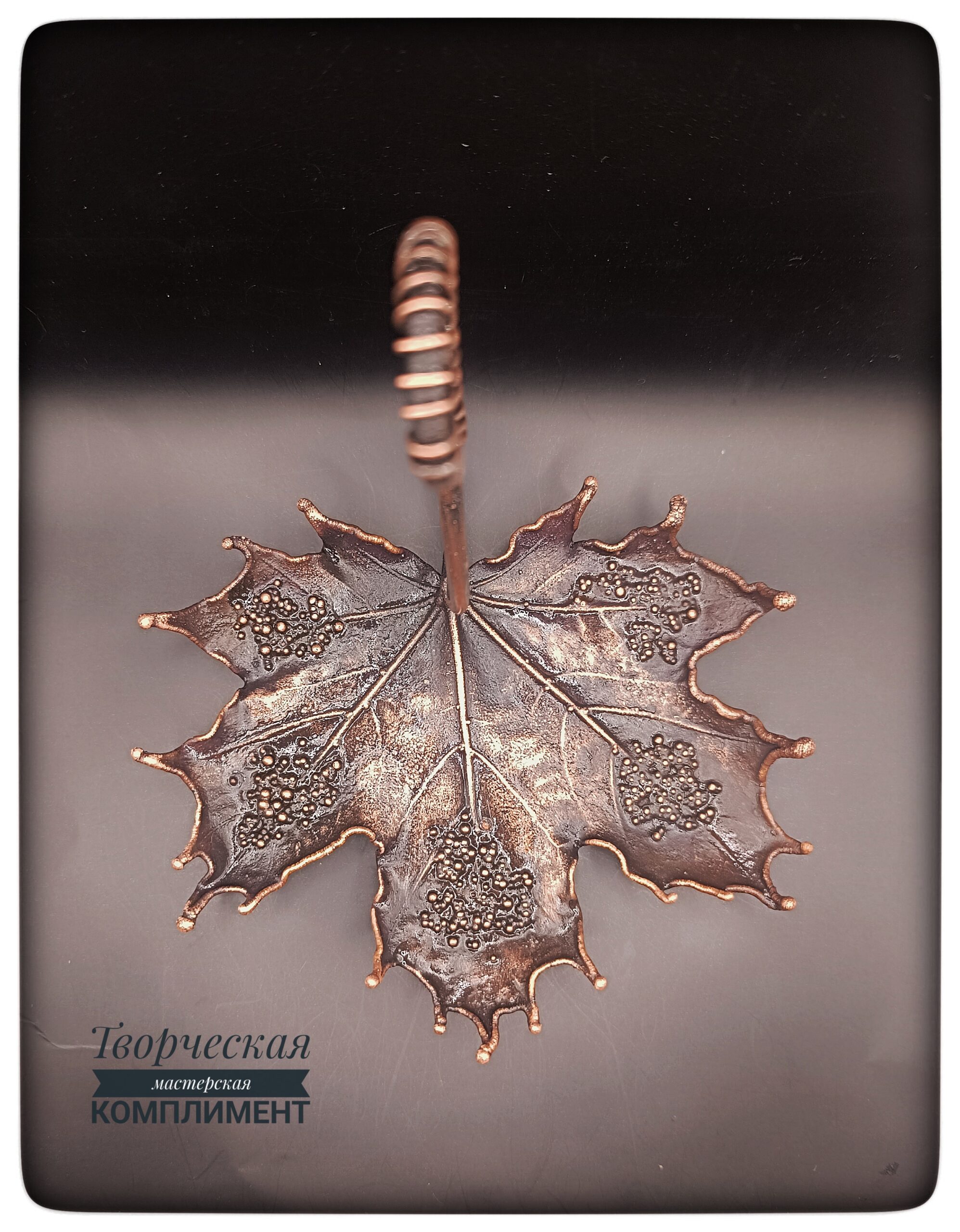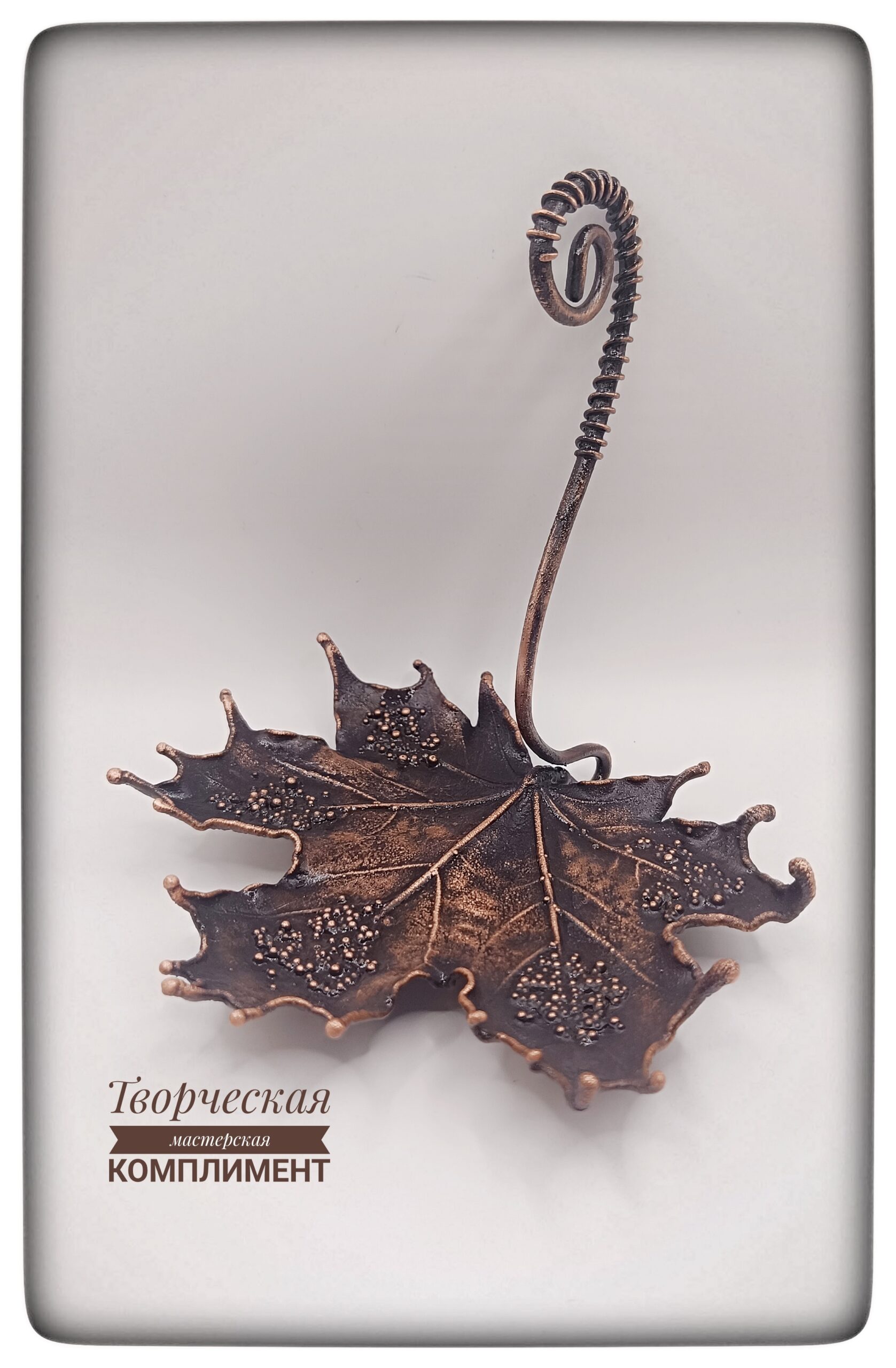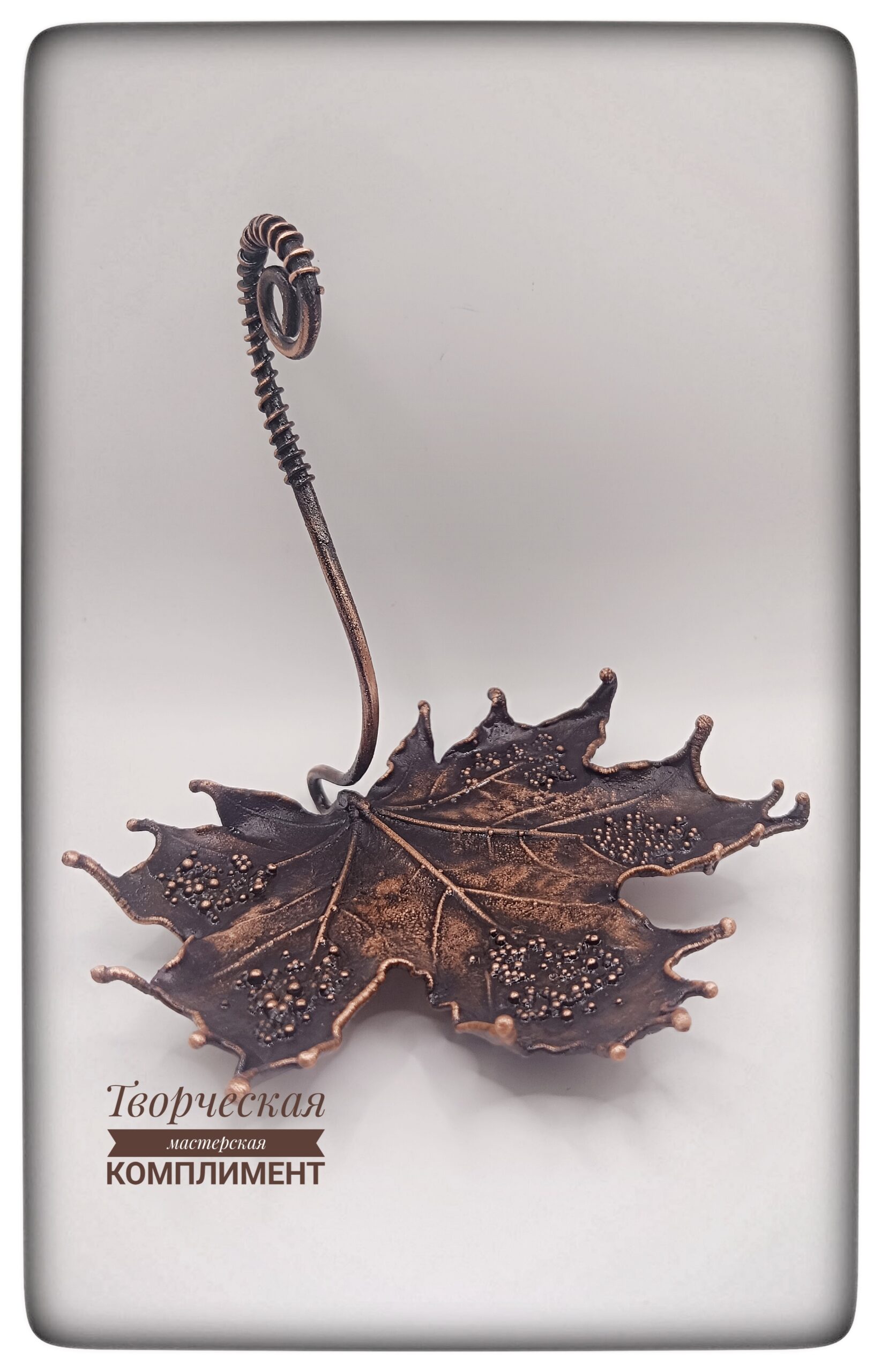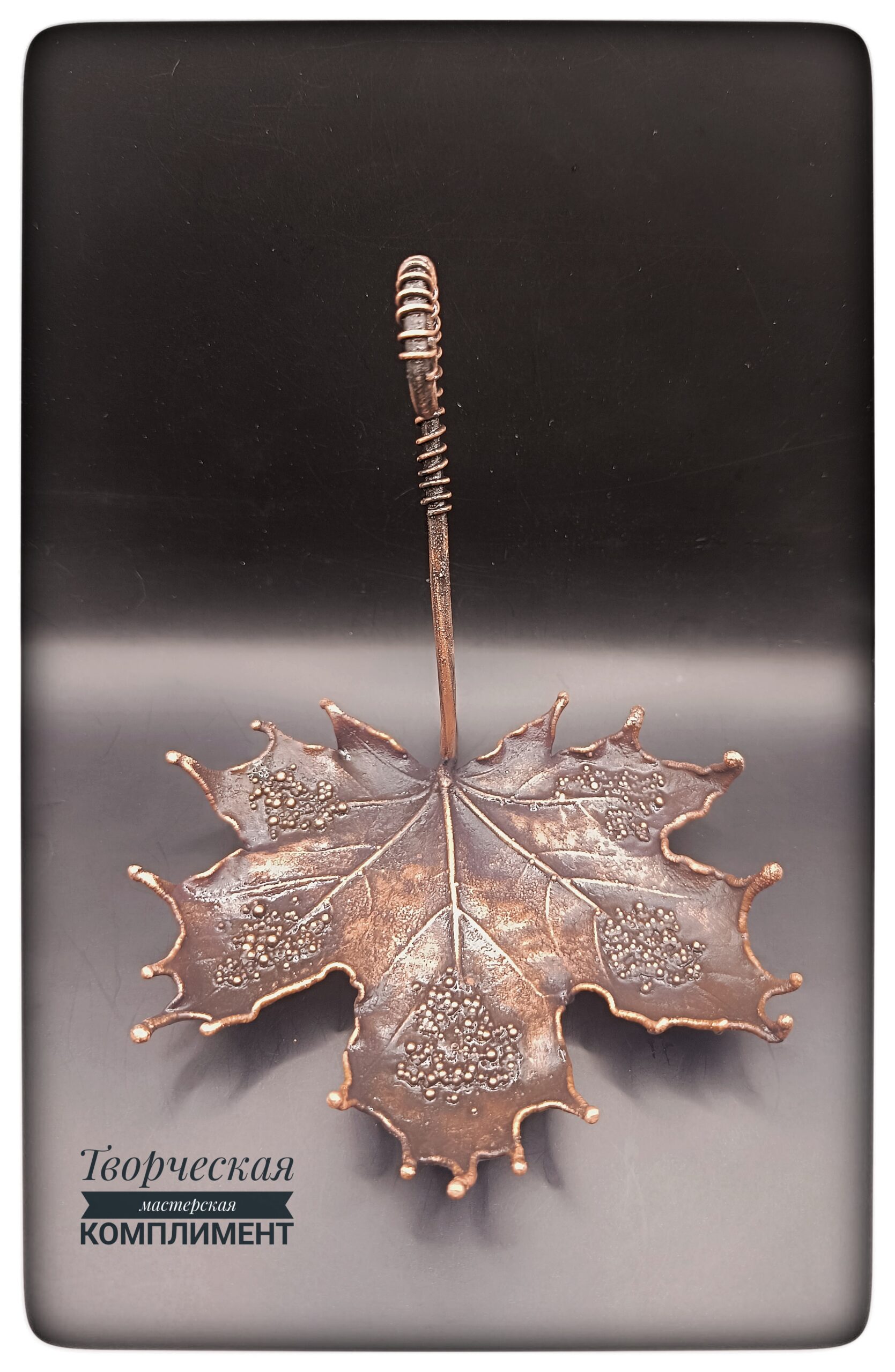 Лист клена в чернение с ручкой на небольших ножках.
