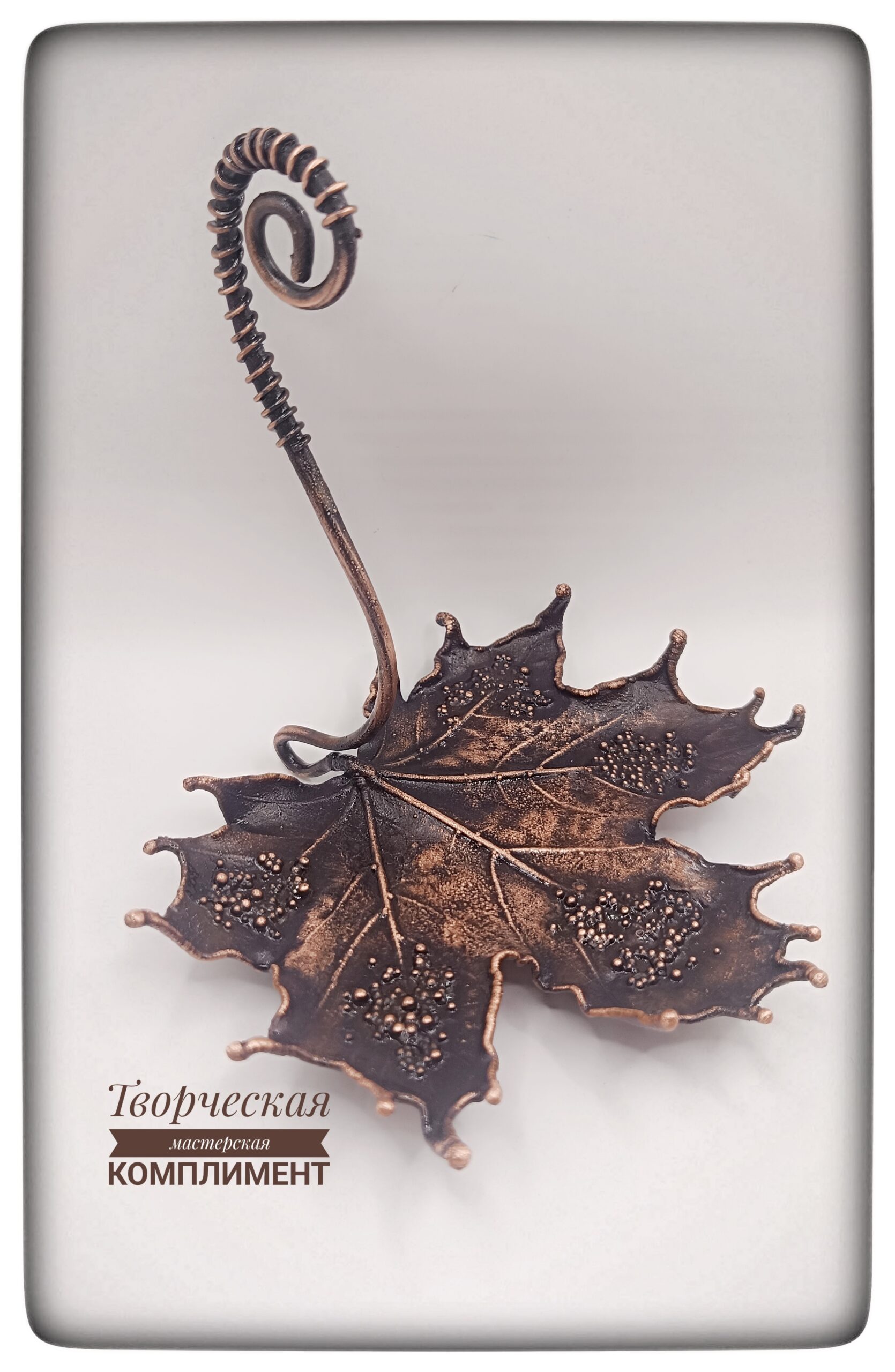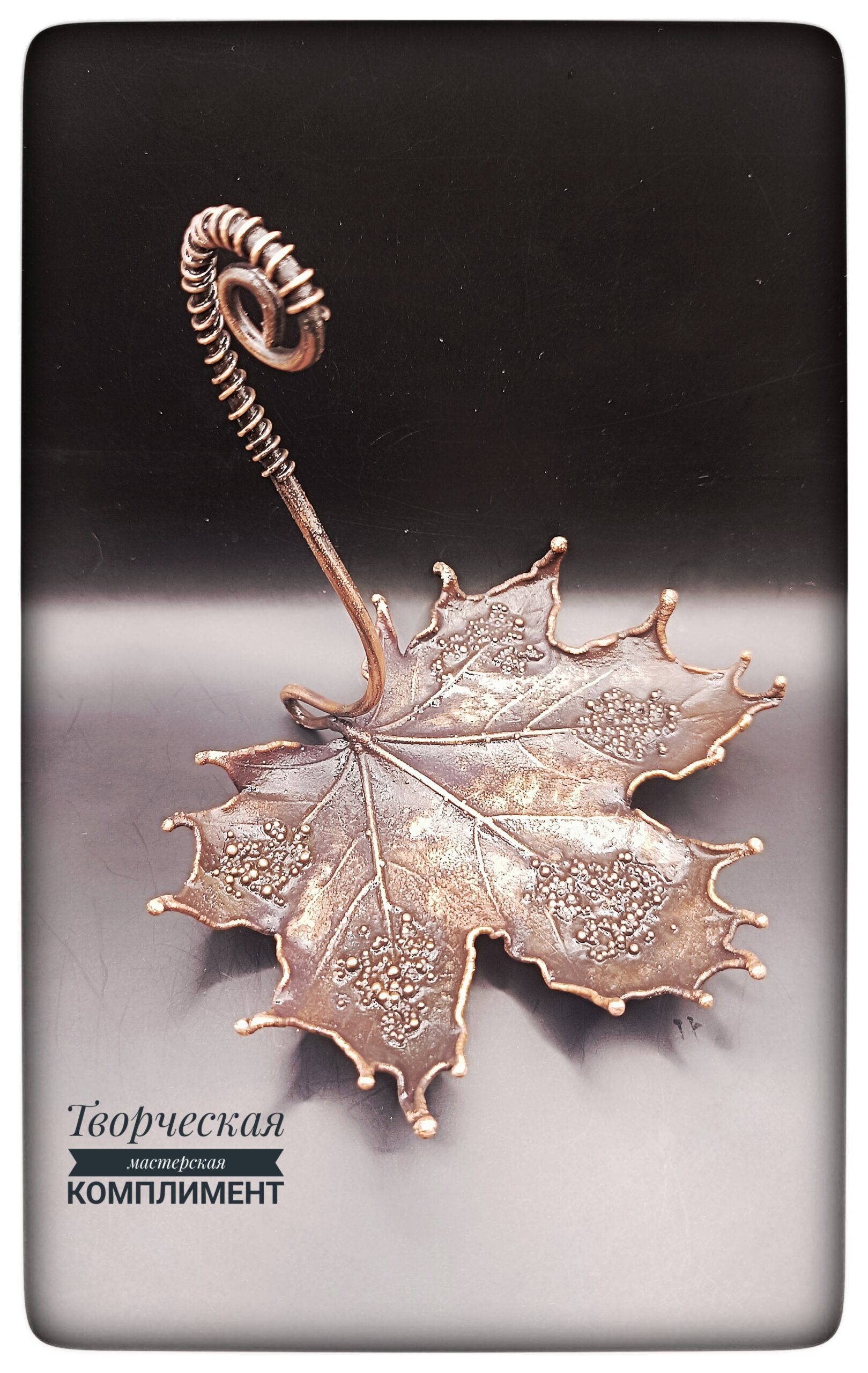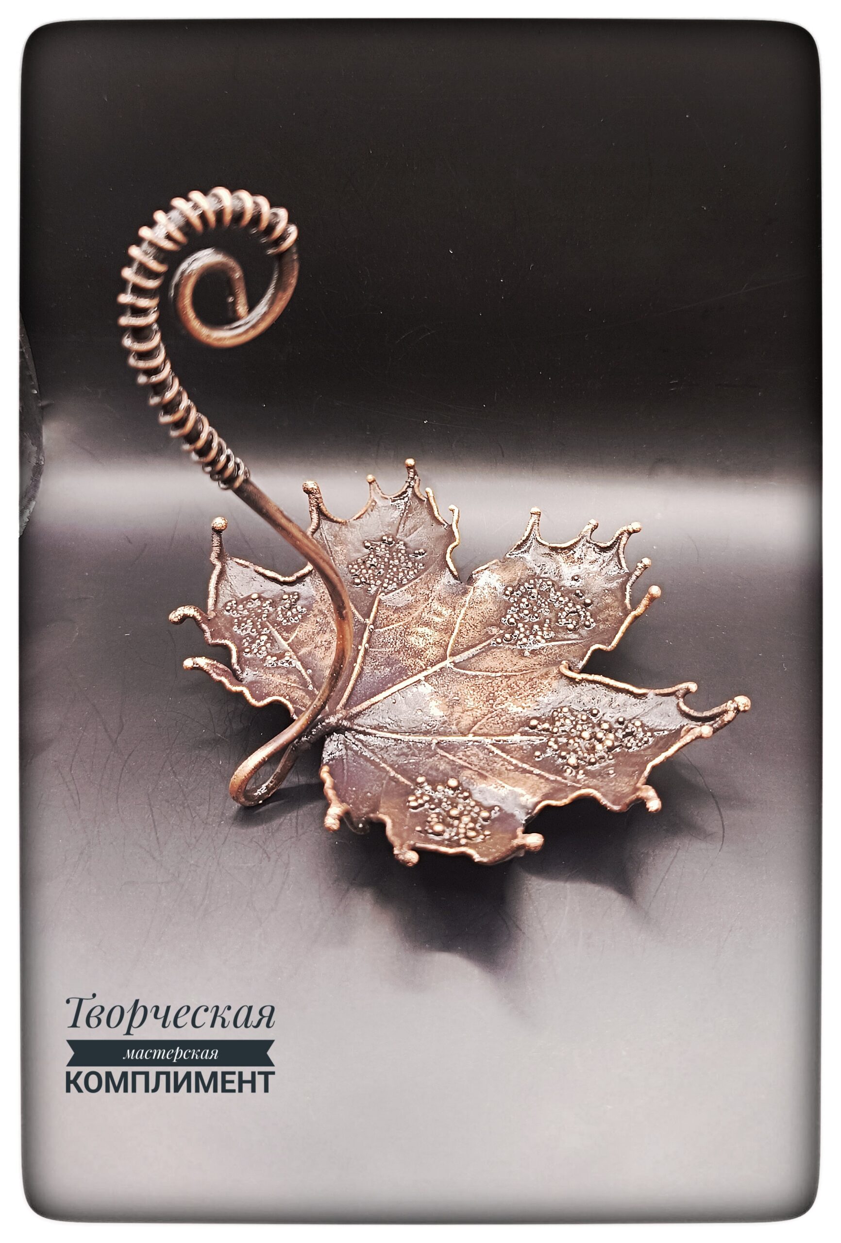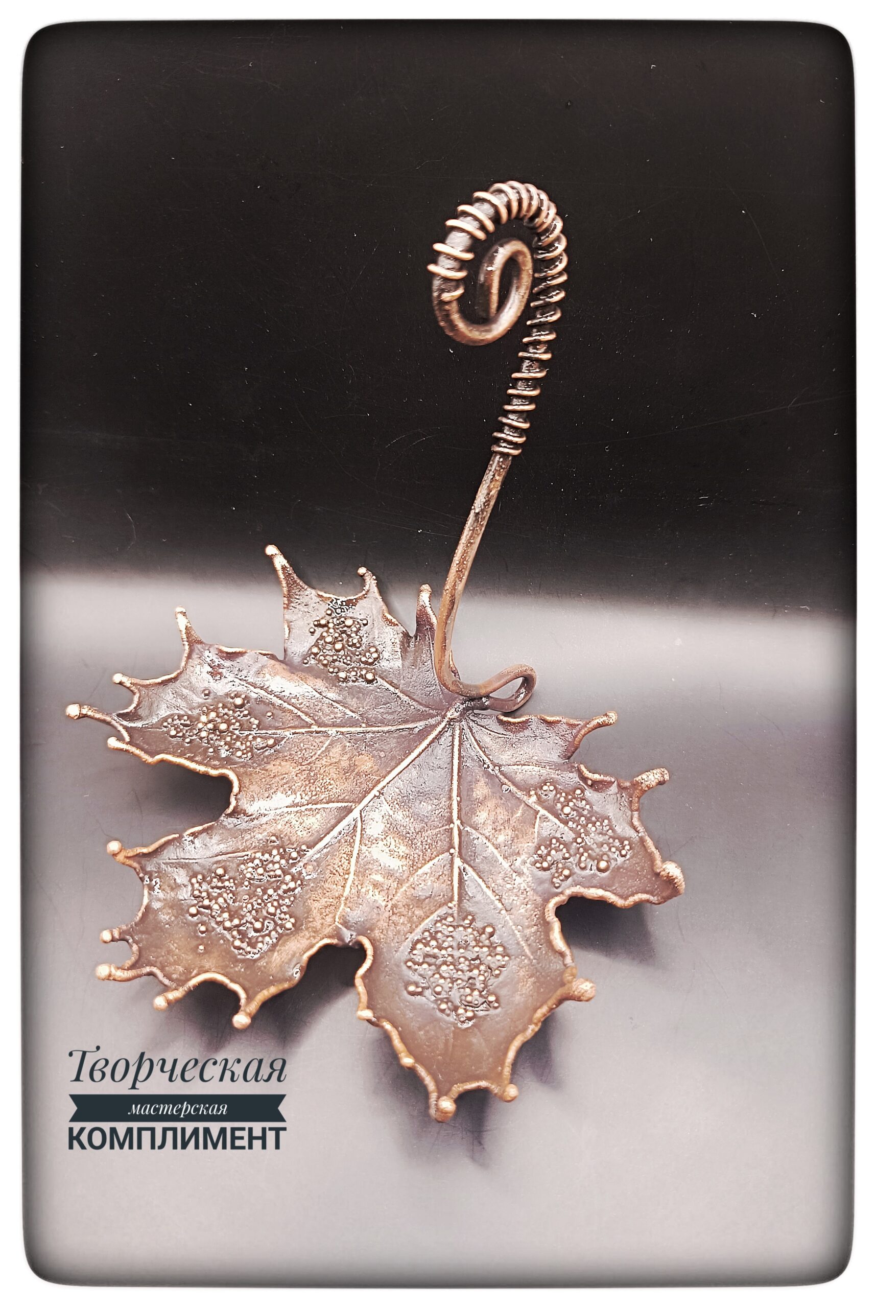 Лист клена в чернение с ручкой на небольших ножках.