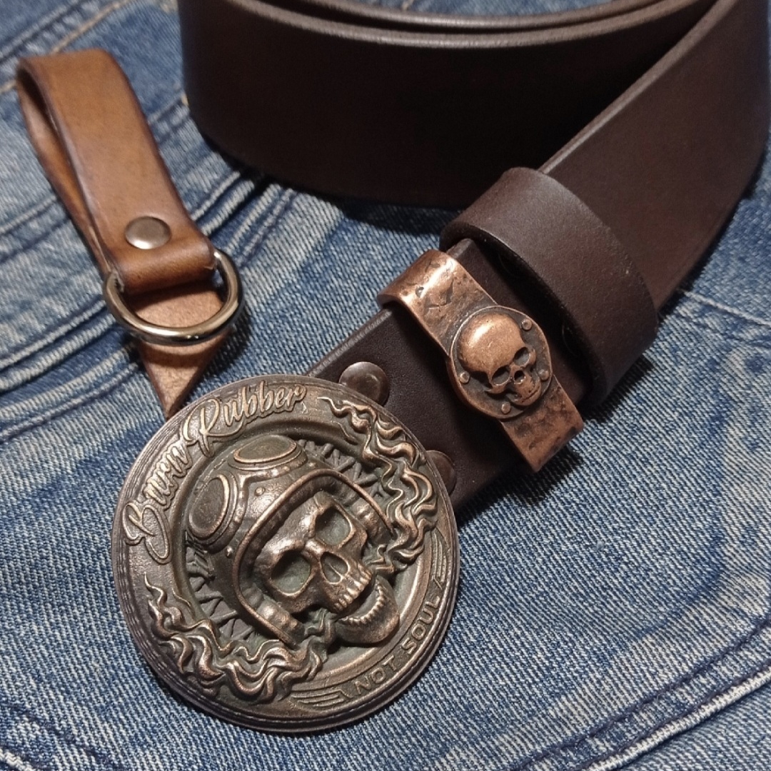 Мощный байкерский ремень линейки Люкс с бляхой из литой бронзы.