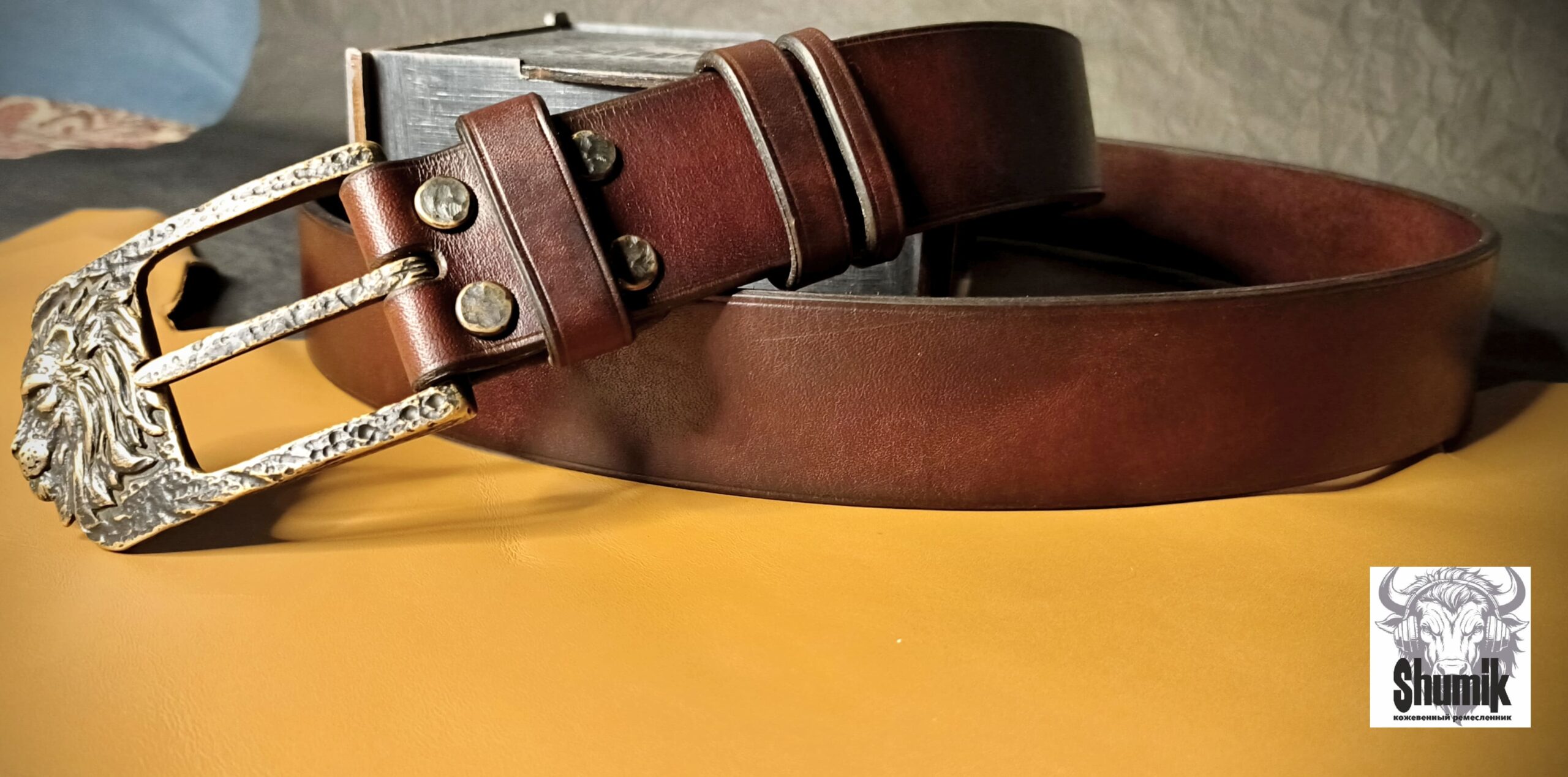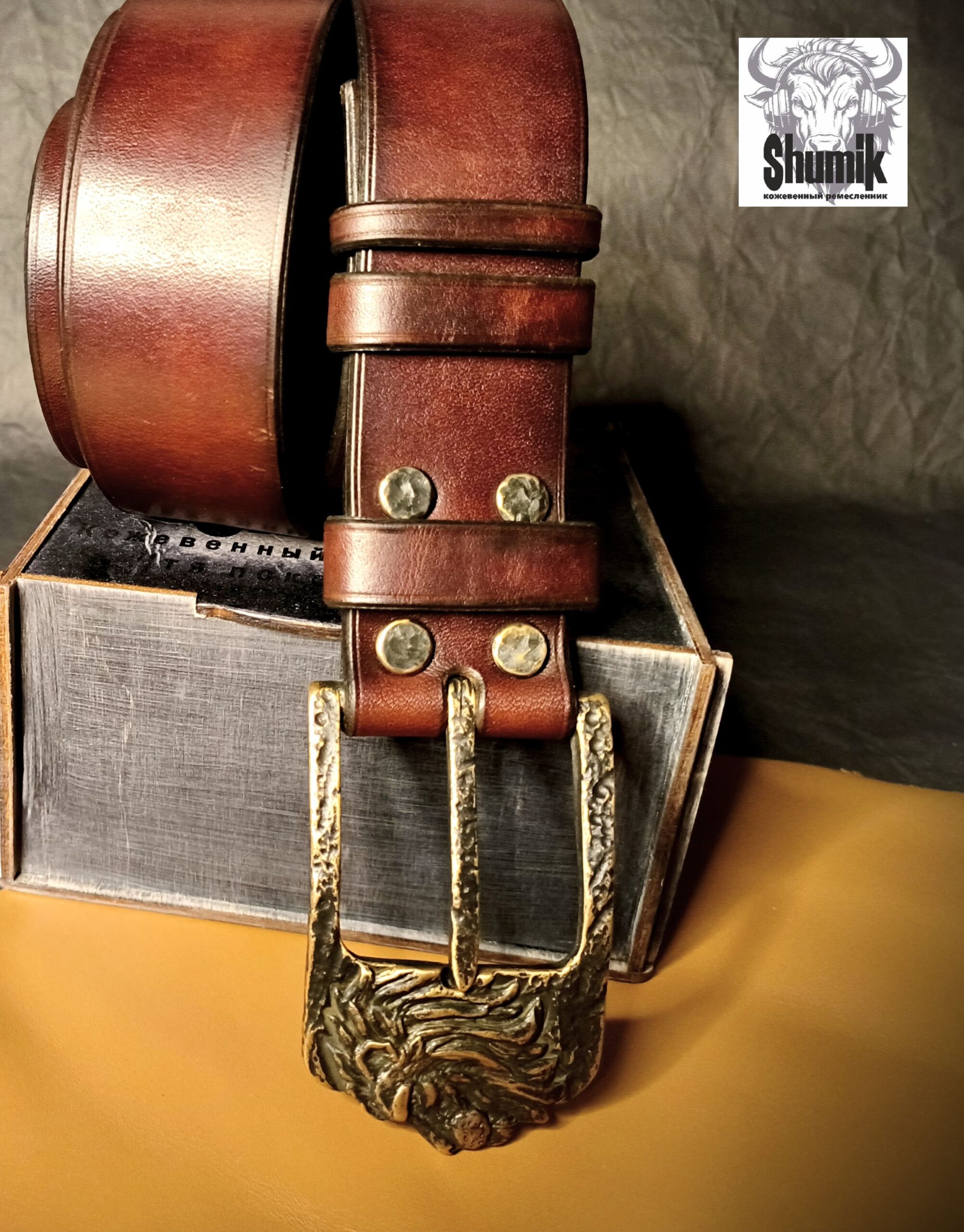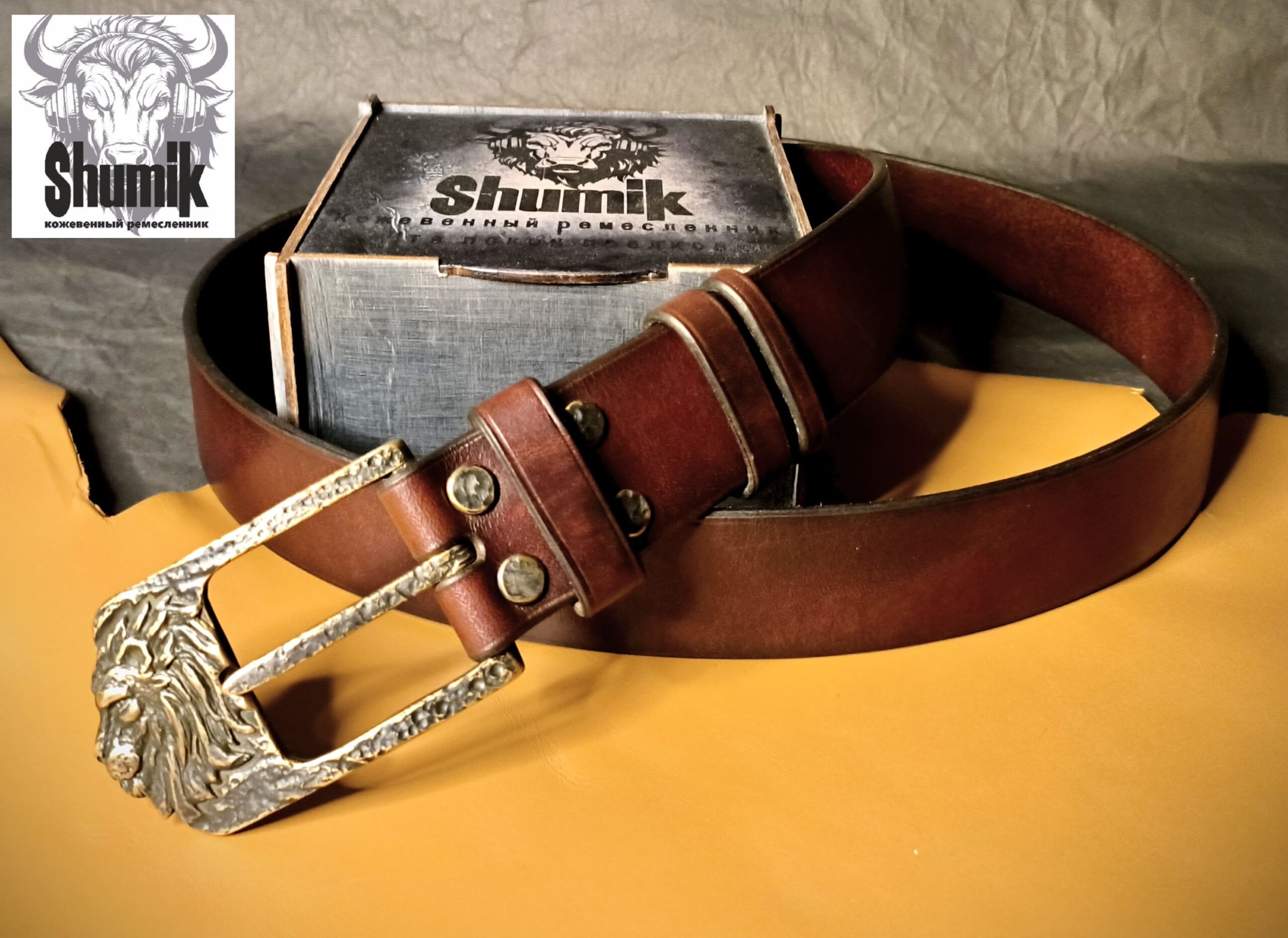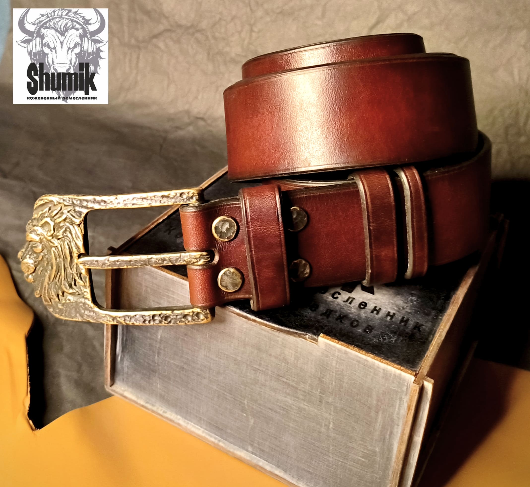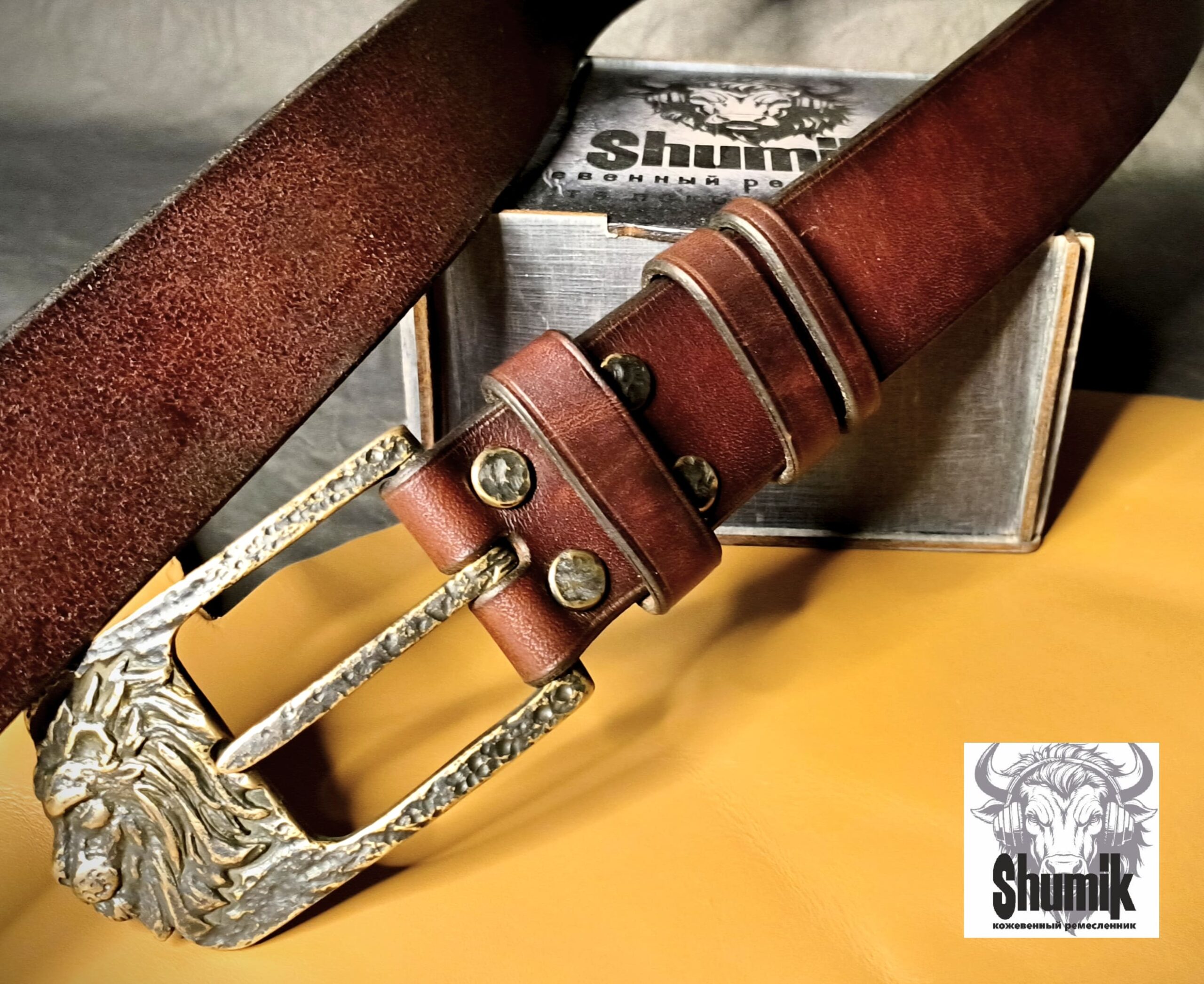 Ремень ручной авторской работы из натуральной кожи« Лев»
