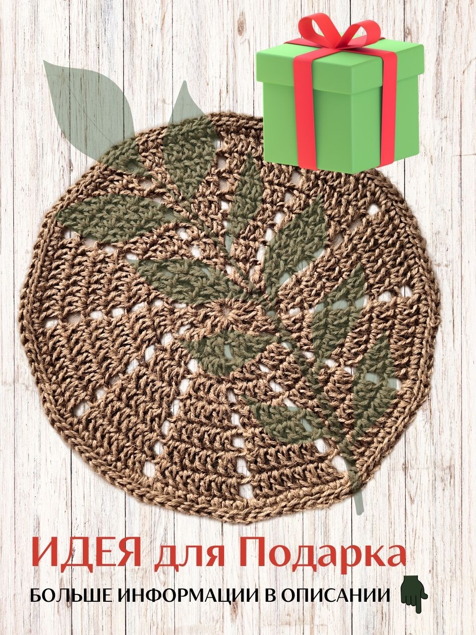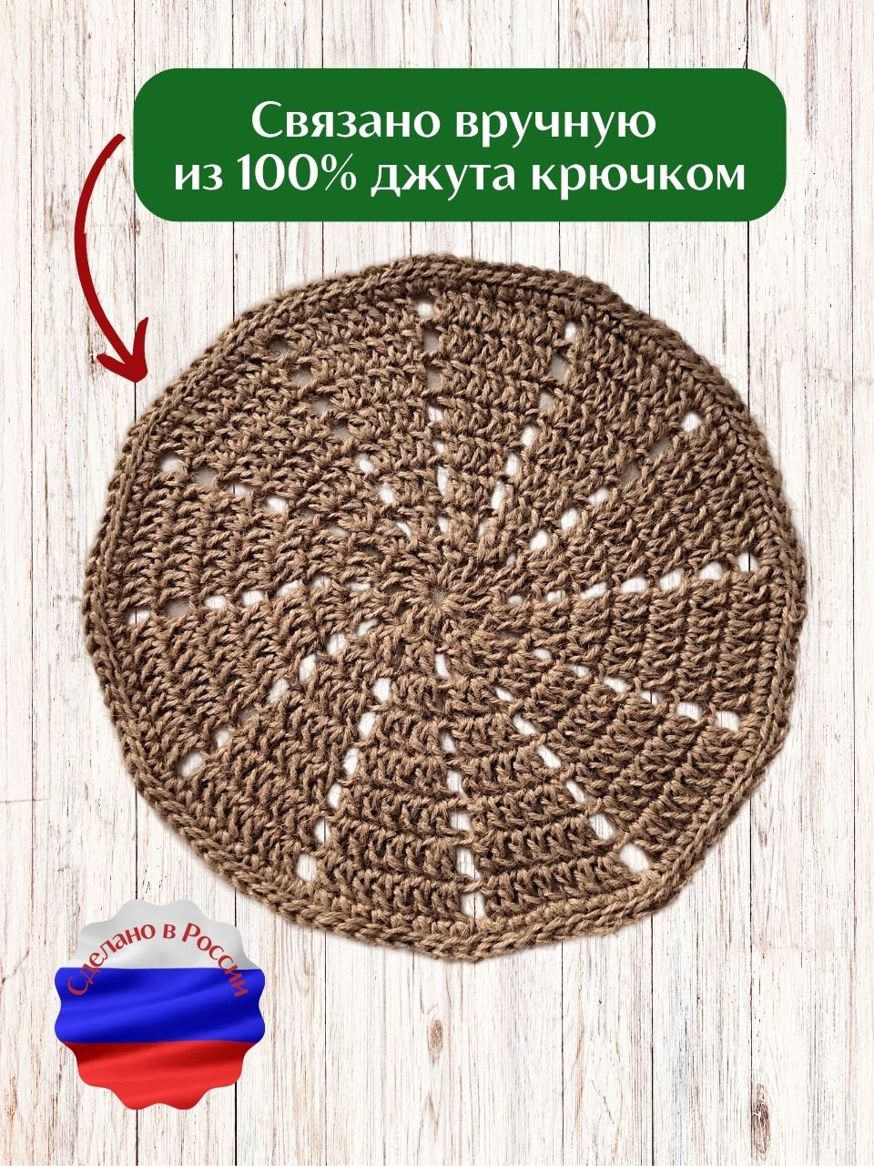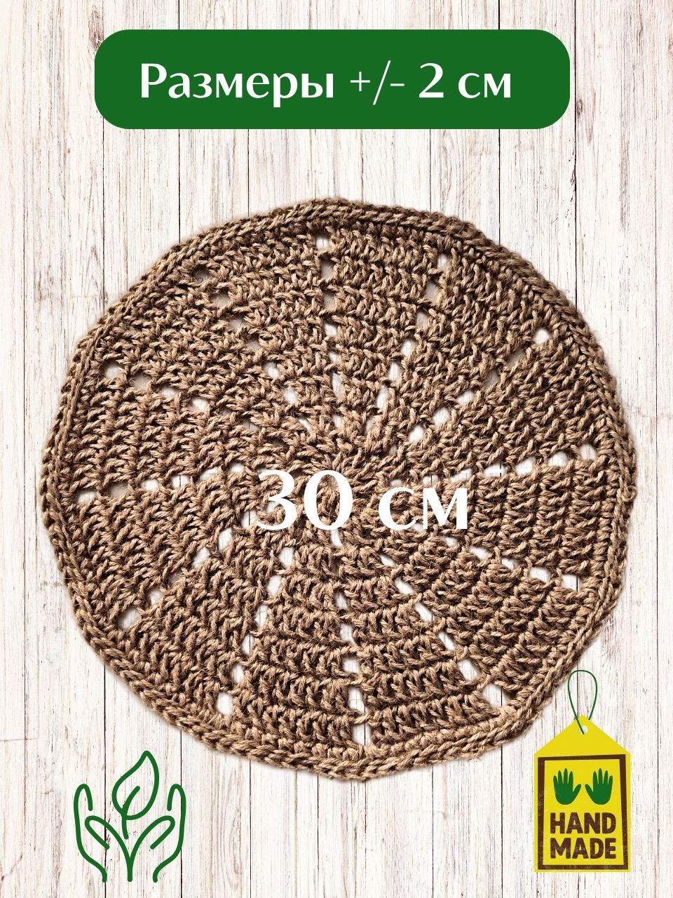 Салфетка плейсмат на стол сервировочная круглая вязаная крючком из джута