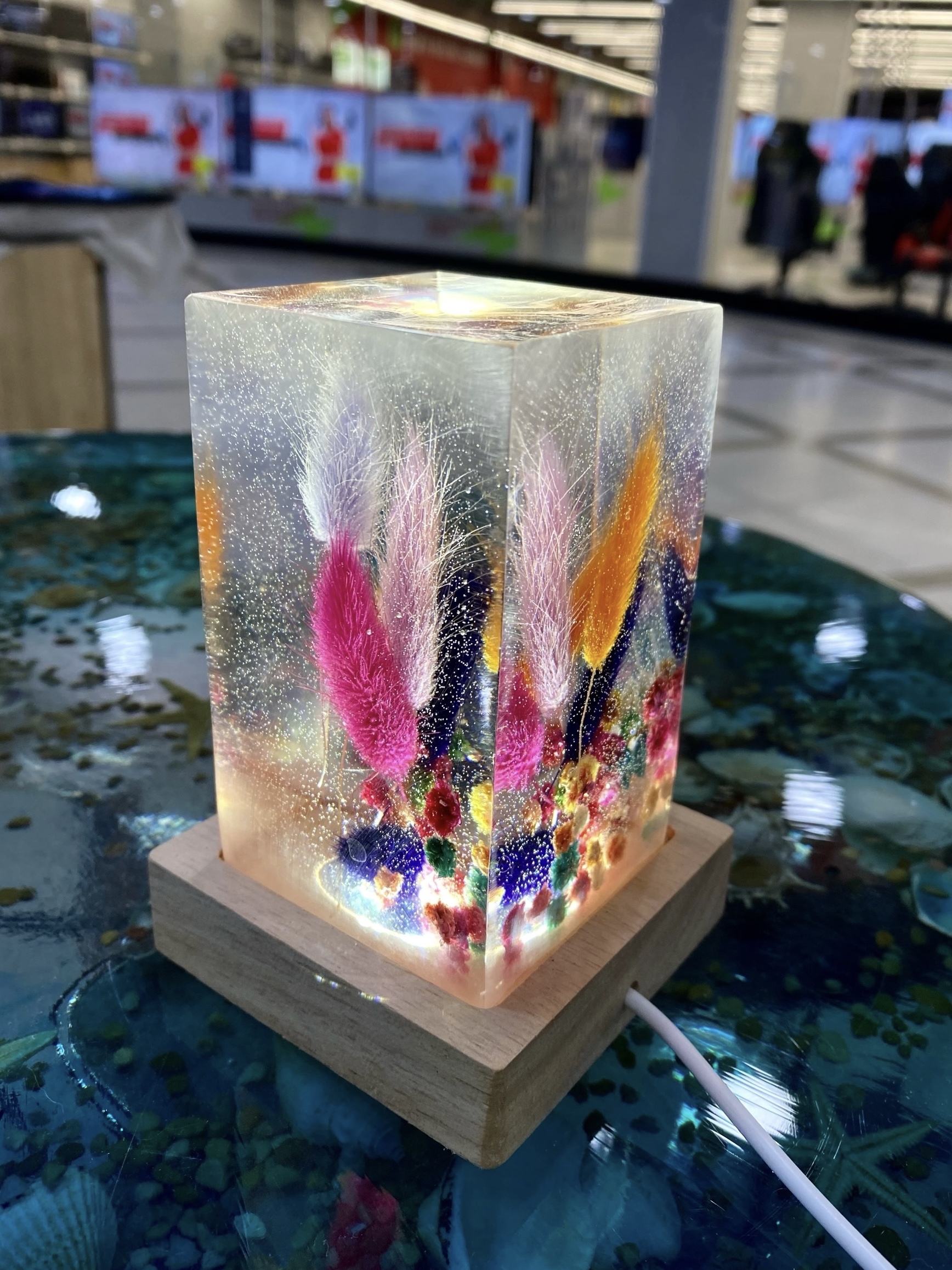 Светильники из эпоксидной смолы. Варианты светильников варьируются от дизайна с сухоцветами , до деревянных вставок. Служат долго.