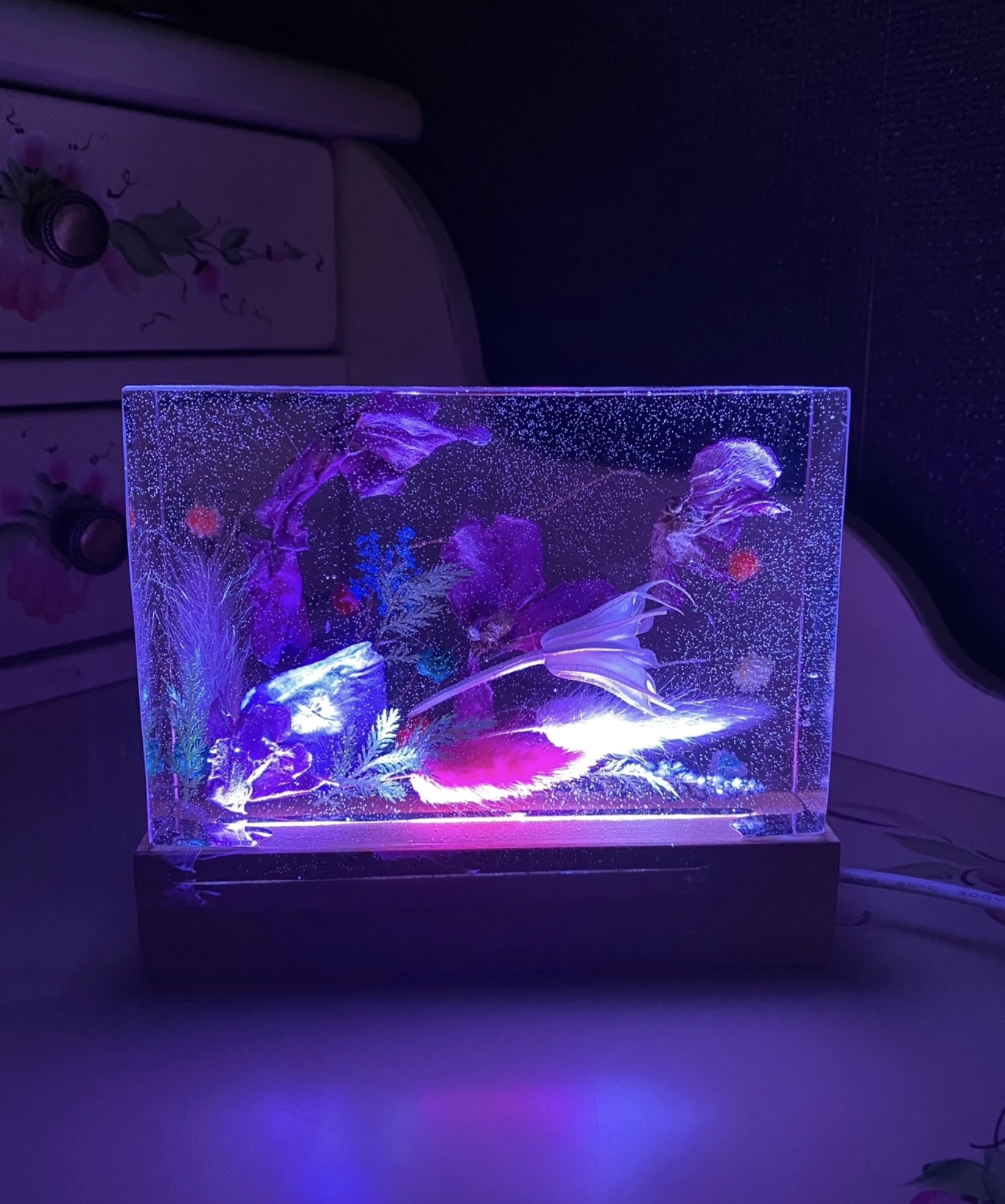 Светильники из эпоксидной смолы с цветной подсветкой. Размер светильника 16×10