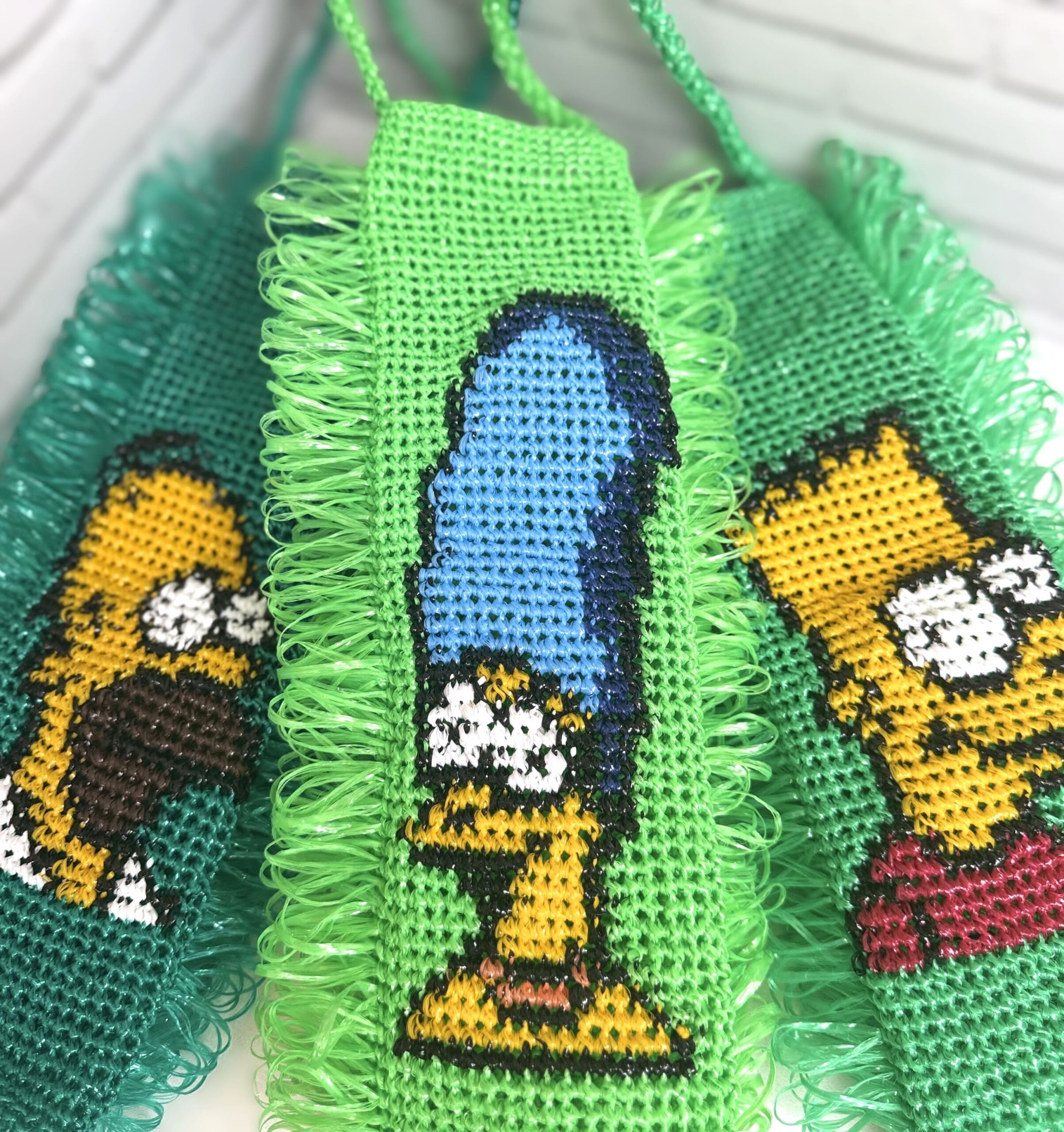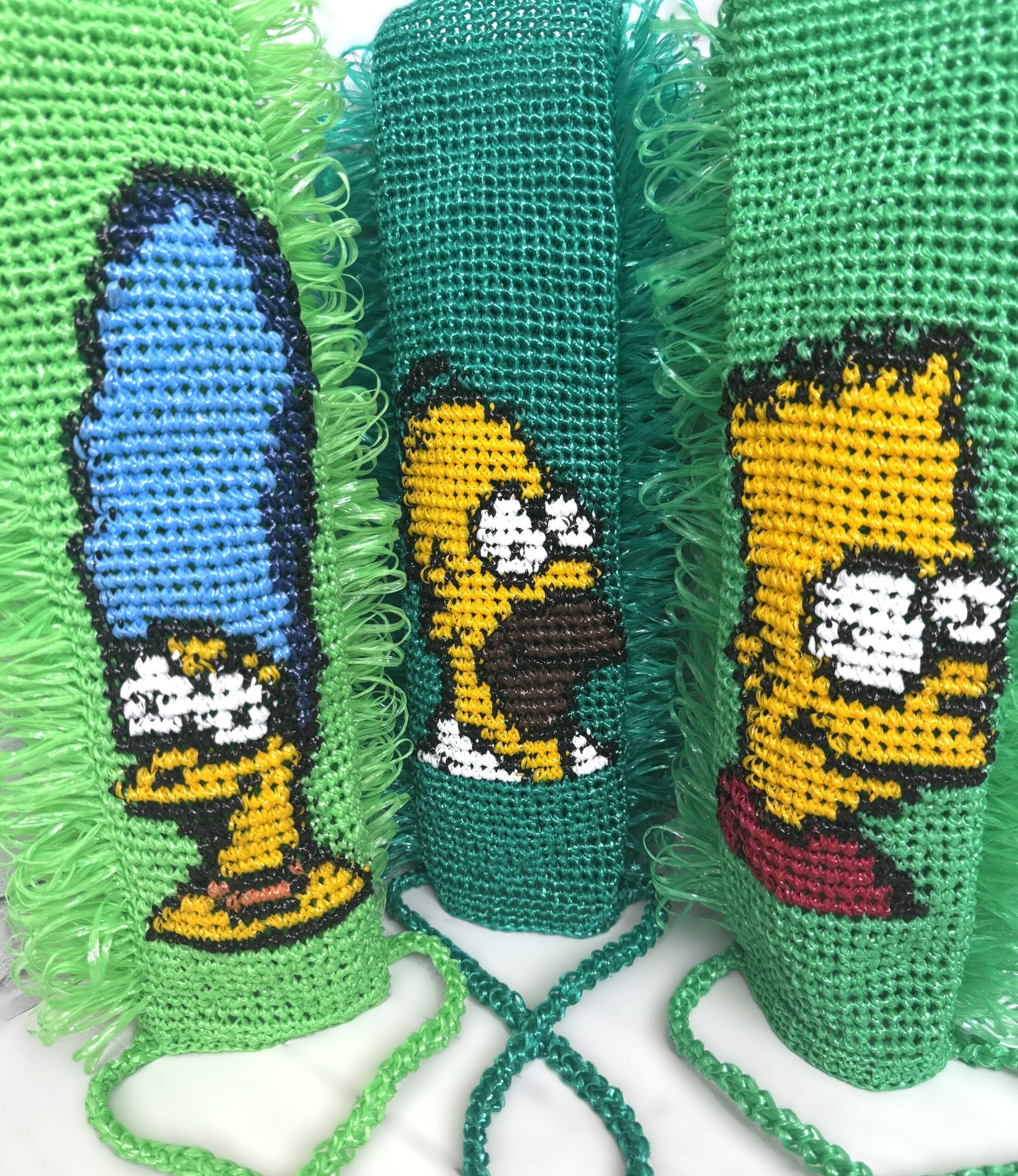 эксклюзивные мочалки Симпсоны ручной вязки, семейный комплект полипропиленовых мочалок, полипропиленовые мочалки с принтом Симпсоны, двойная вязаная мочалка Симпсоны, набор двойных мочалок ручной работы Симпсоны, мочалки с вывязанным принтом Симпсоны, вывязанные персонажи Симпсонов на мочалках, долговечный набор мочалок Симпсоны,
