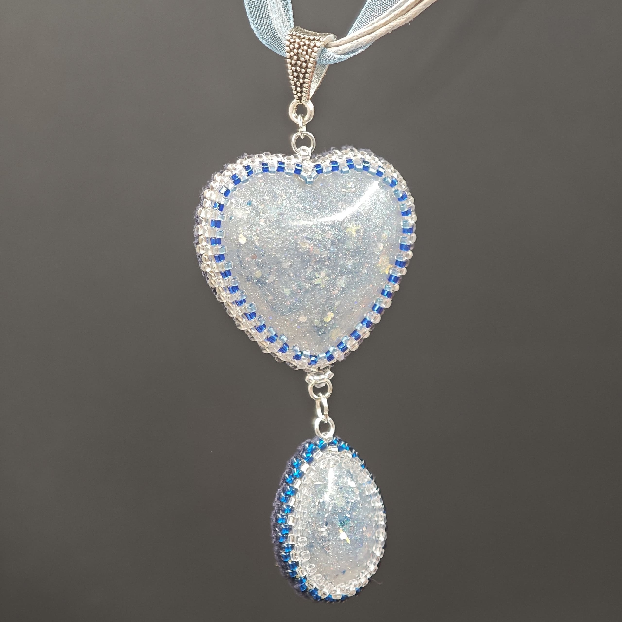 Аккуратное обрамление из серебристого и синего бисера подчёркивает хрупкость и ценность «хранилища» грёз.