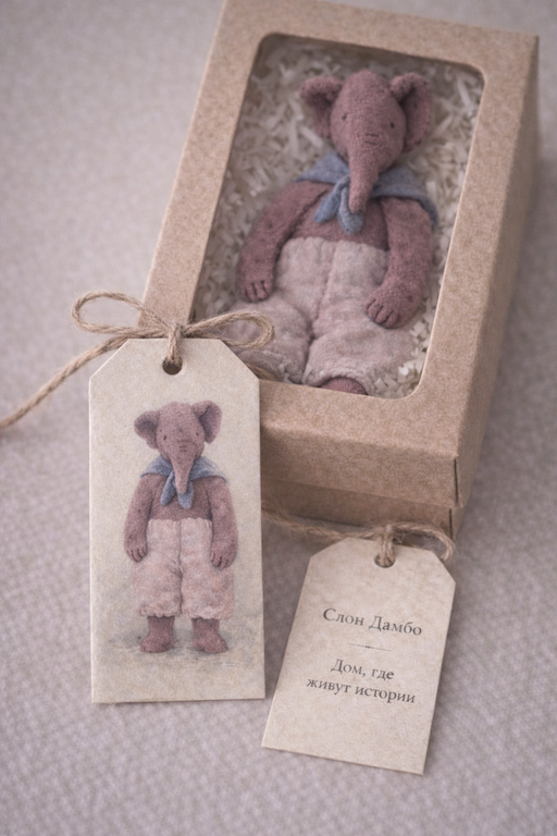 • Вдохновлён легендой: персонаж вдохновлён знаменитым диснеевским мультфильмом, но воплощён в авторской текстильной интерпретации. Слонёнок не просто игрушка — он символ веры в себя и свои «особенности», которые делают нас уникальными!