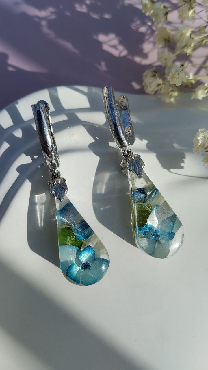 Серьги из ювелирной эпоксидной смолы с настоящими цветами.