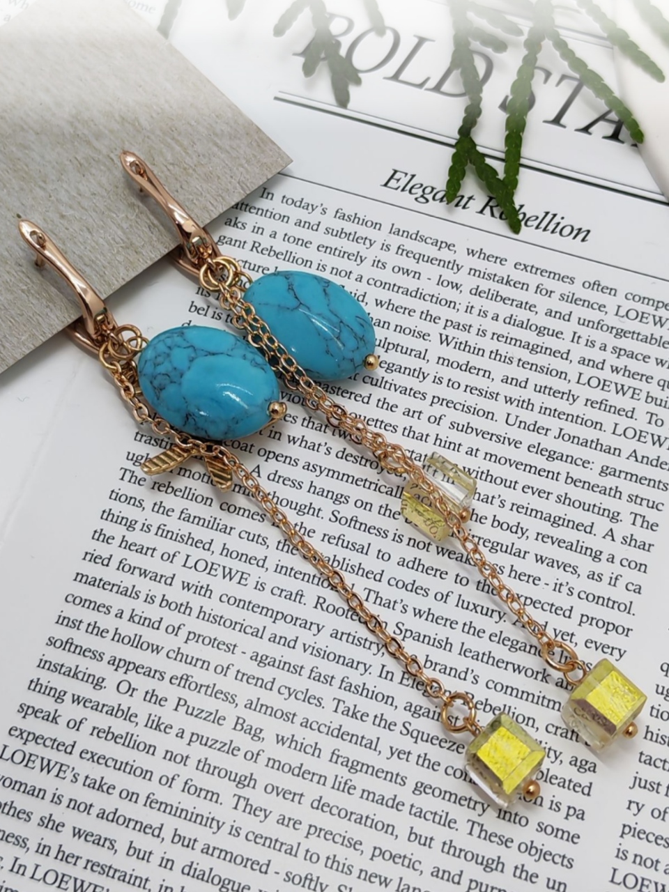 Погрузитесь в атмосферу морского бриза с изысканными серьгами, сочетающими природную красоту бирюзы и утончённость золотых элементов. Эта пара украшений — настоящий гимн лету и свободе, воплощённый в деталях.