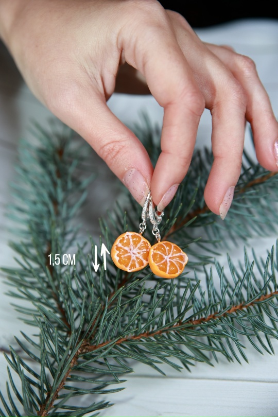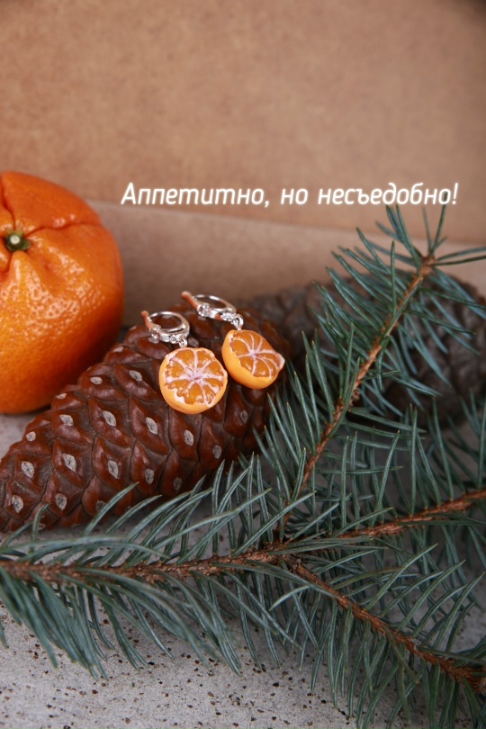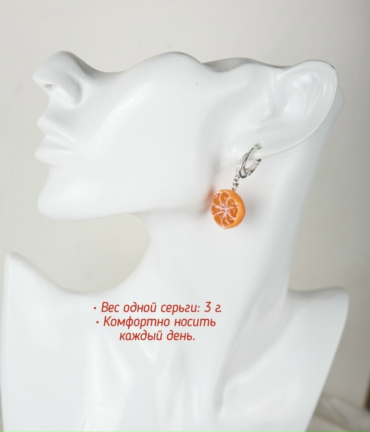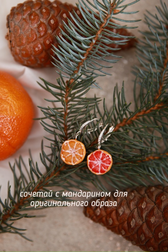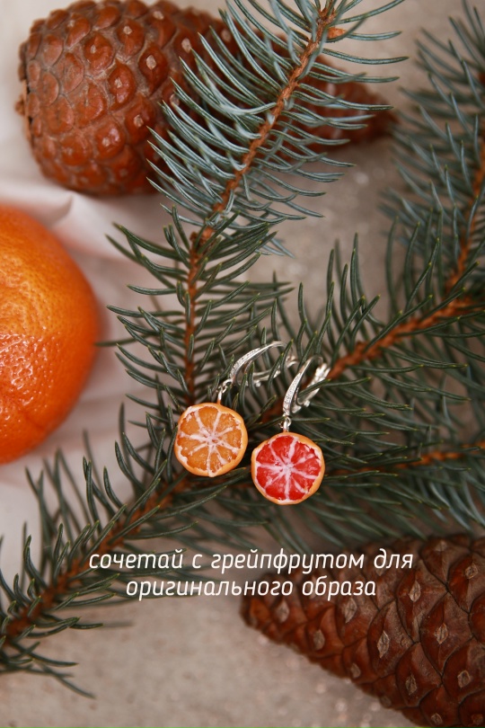 Возможен заказ серёжек в оранжевом цвете (мандарин) или асимметричных серёжек: 1 мандарин и 1 грейпфрут.