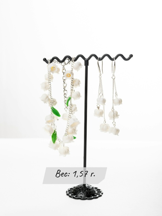 Изящные, очень нежные, невесомые и комфортные в носке удлиненные серьги с цветочками ландышей просто созданы для весеннего настроения.
