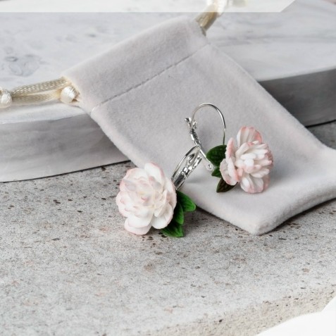 Возможен заказ серёжек с пионами в разных расцветках: розовый, белый, марсала или асимметричный комплект. А также изготовление под заказ подвески, кольца или браслета с пионами в комплект к серёжкам.