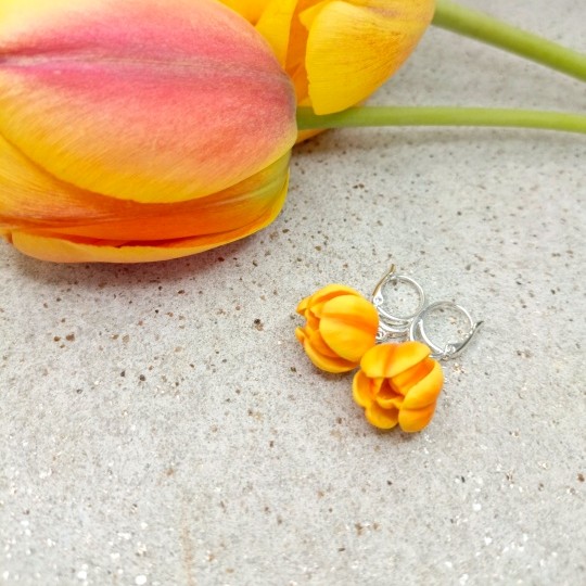 Каждая пара серёг создана вручную с особой заботой и вниманием к деталям. Нежные тюльпаны из полимерной глины словно только что распустились: их ярко‑жёлтый цвет передаёт всю свежесть весеннего утра. Лёгкий объёмный дизайн делает цветы удивительно реалистичными — кажется, будто они вот‑вот зашелестят лепестками от лёгкого ветерка.