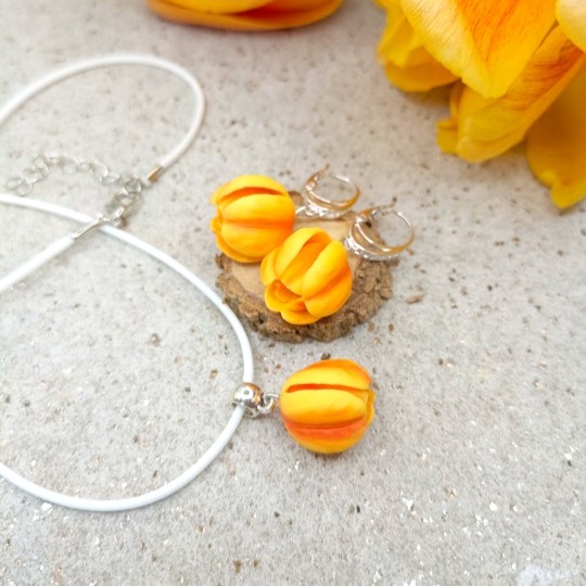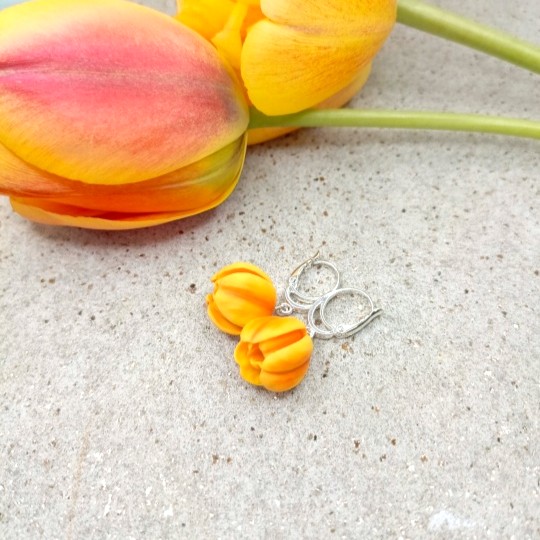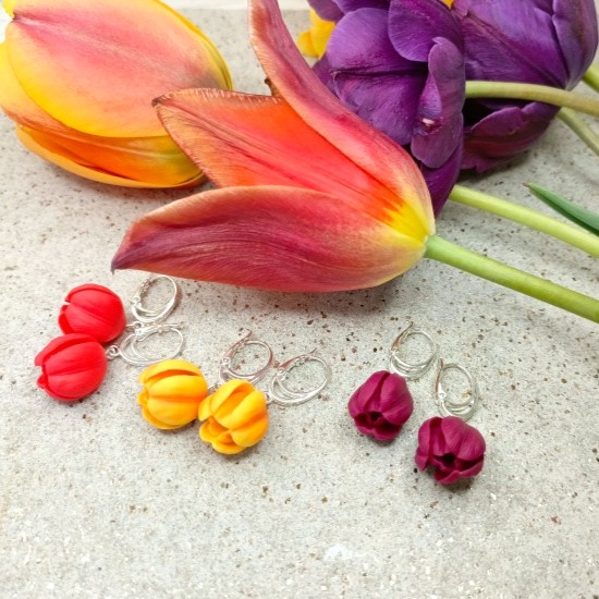Возможен заказ серёжек с тюльпанами в разных расцветках: жёлтый, красный, бордовый (см. карусель). А также изготовление под заказ подвески с тюльпаном в комплект к серёжкам.