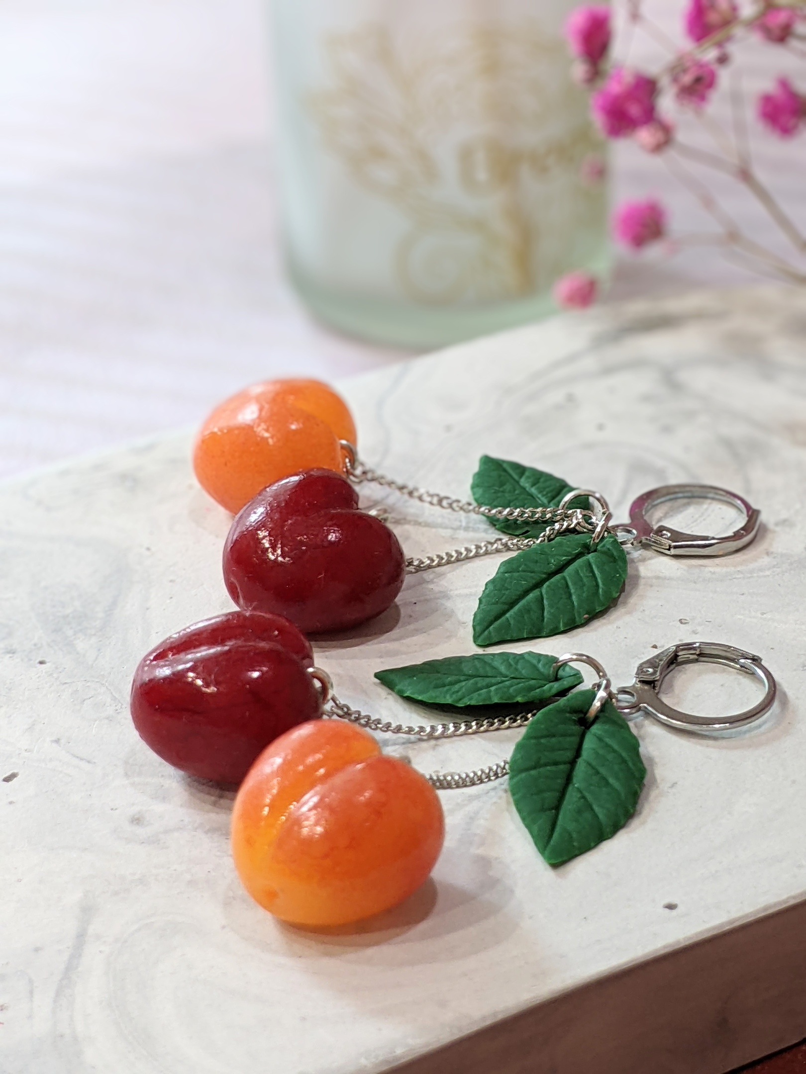 Яркие серьги с аппетитной сочной черешней выполнены из запекаемой полимерной глины.