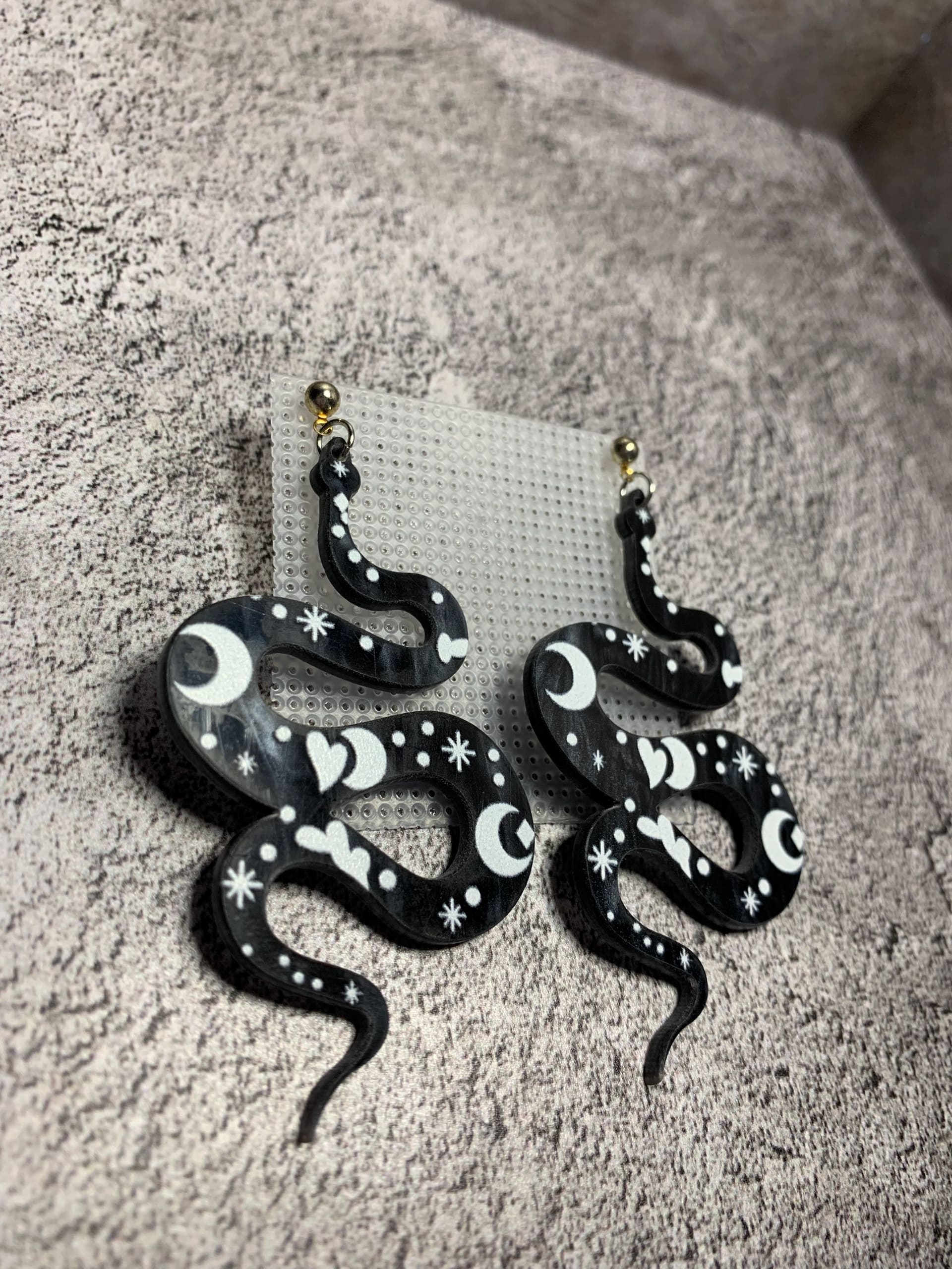 Змея — символ трансформации, мудрости и нового начала.Погрузитесь в атмосферу мистики и элегантности с этими эффектными серьгами в виде змей! Яркий дизайн с космическими мотивами (звёзды, луны, сияющие лучи) превращает аксессуар в настоящий арт-объект.