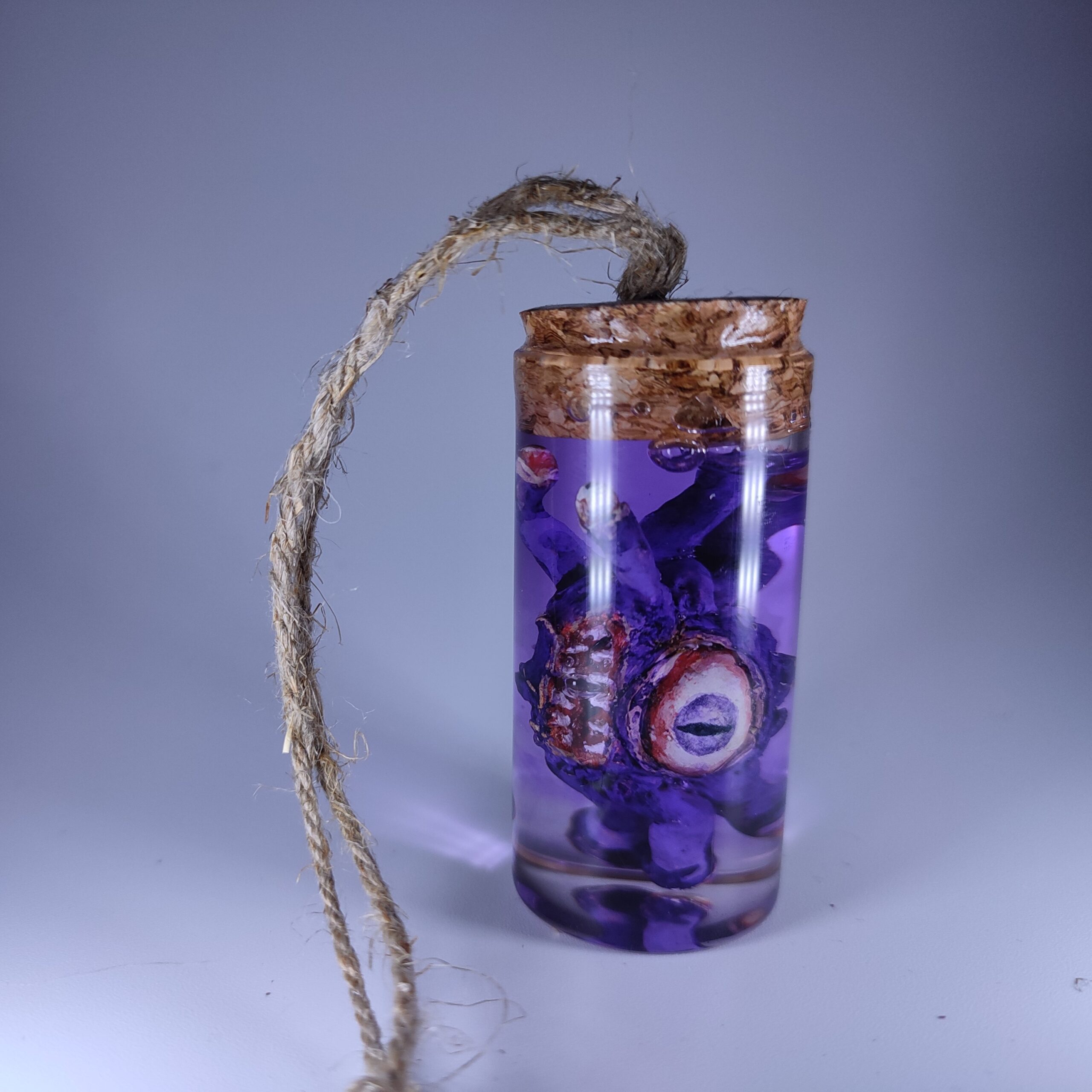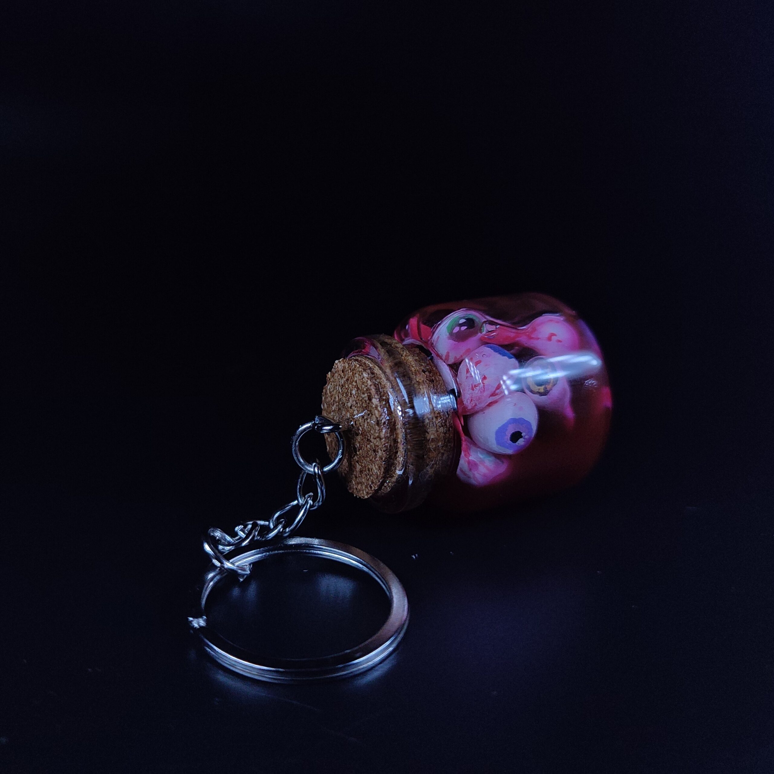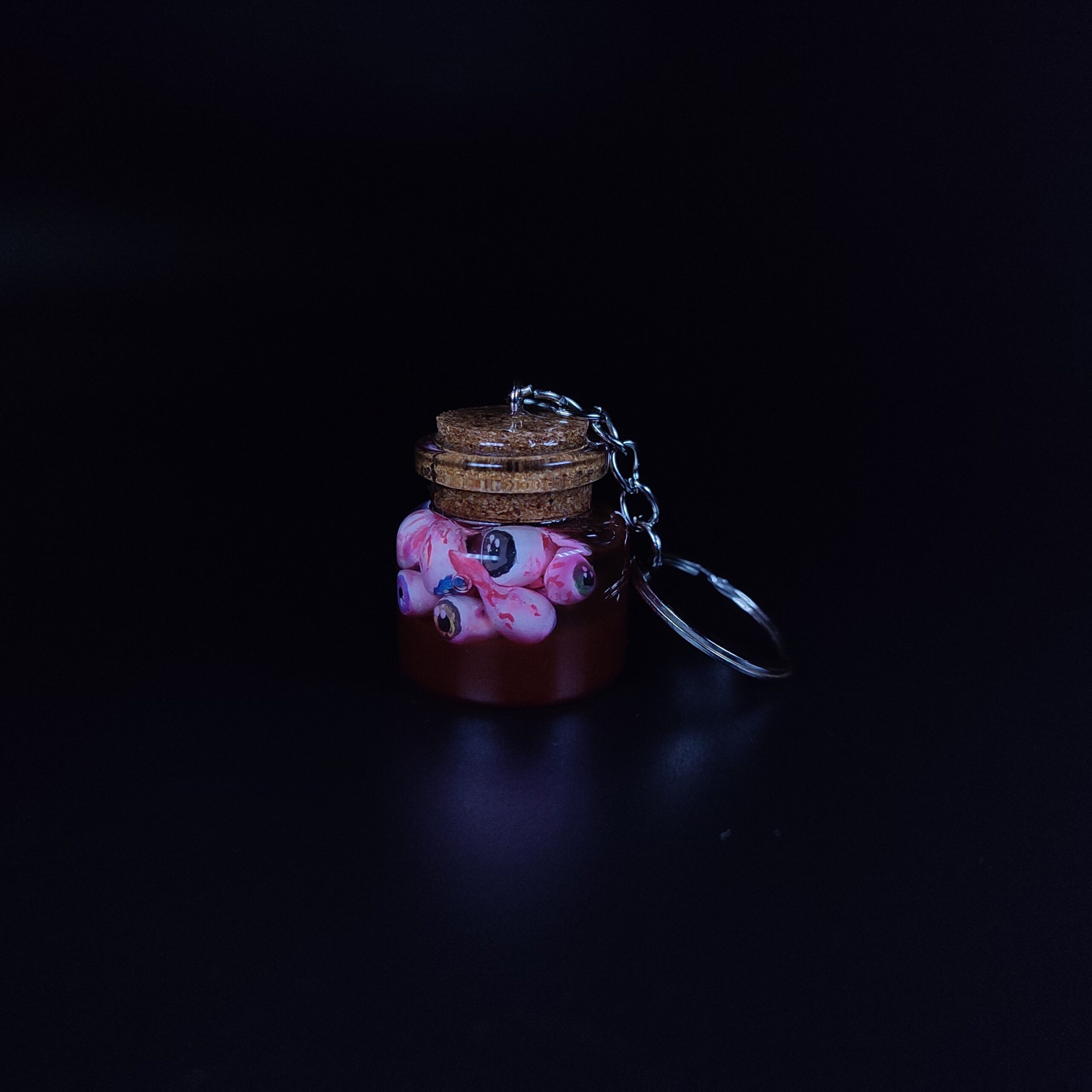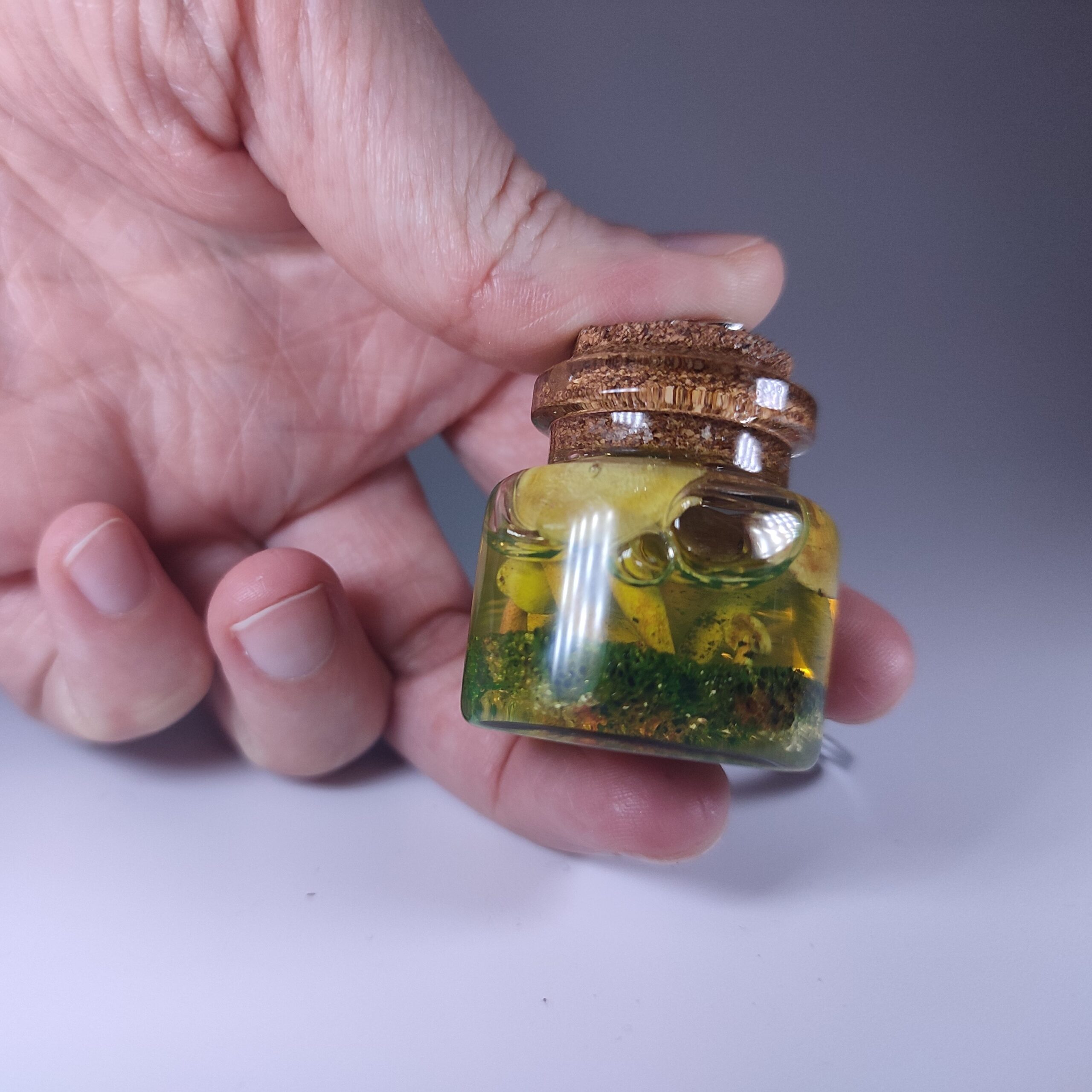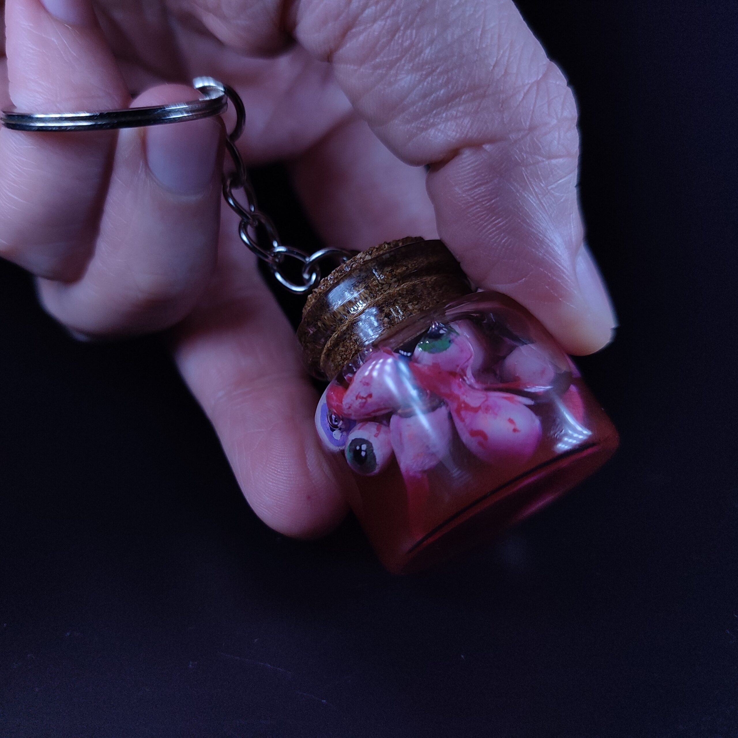 аксессуары в виде стеклянных банок с плавающими в них предметами. Можно выбрать брелки с разным содержанием — глаза, грибы настоящие, грибы светящиеся, природные компоненты — цветы, рябина и т.п.