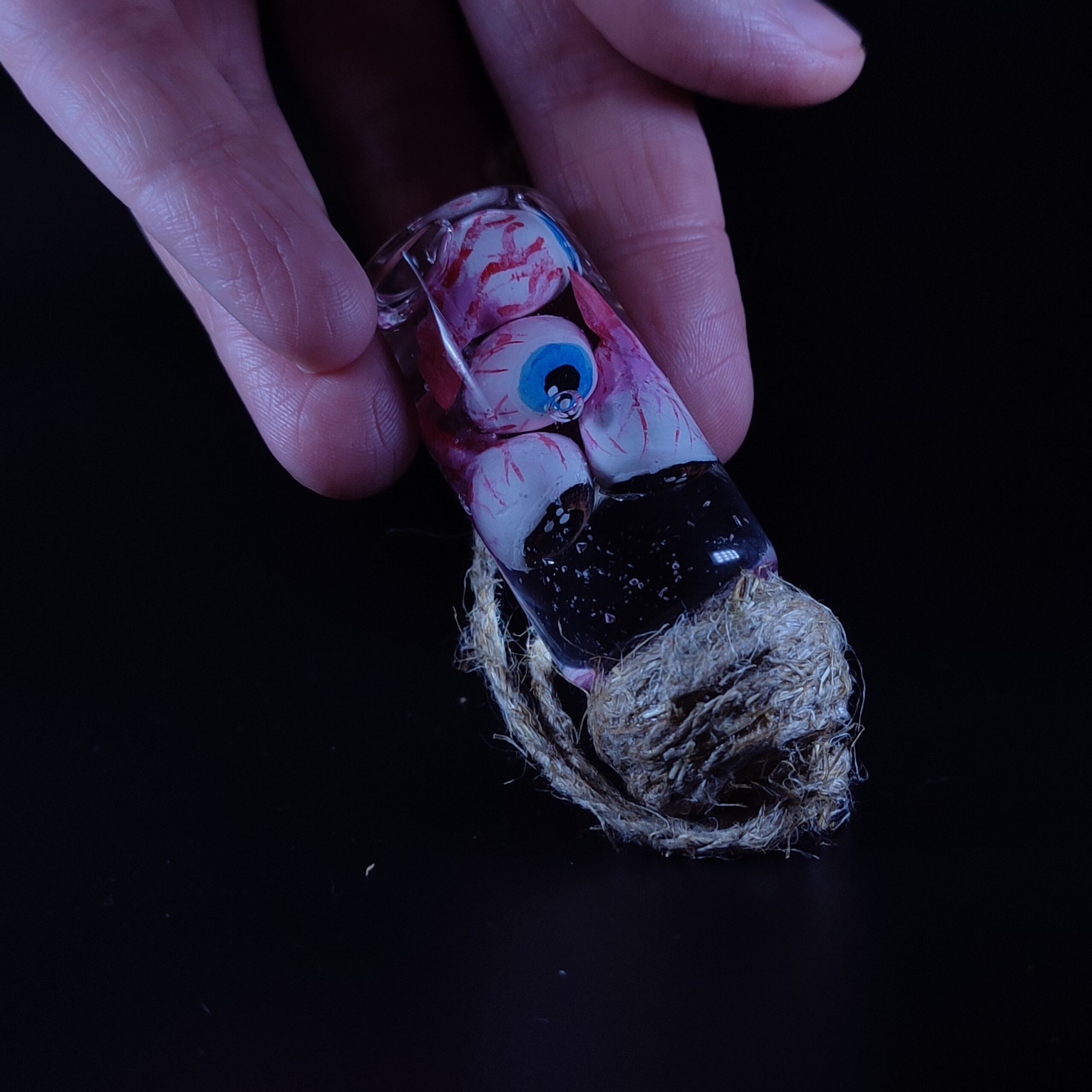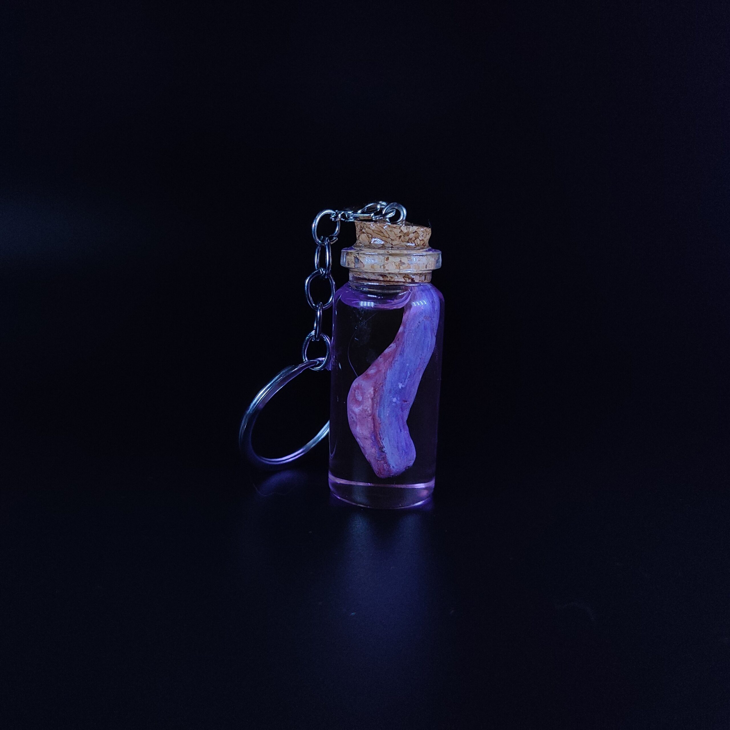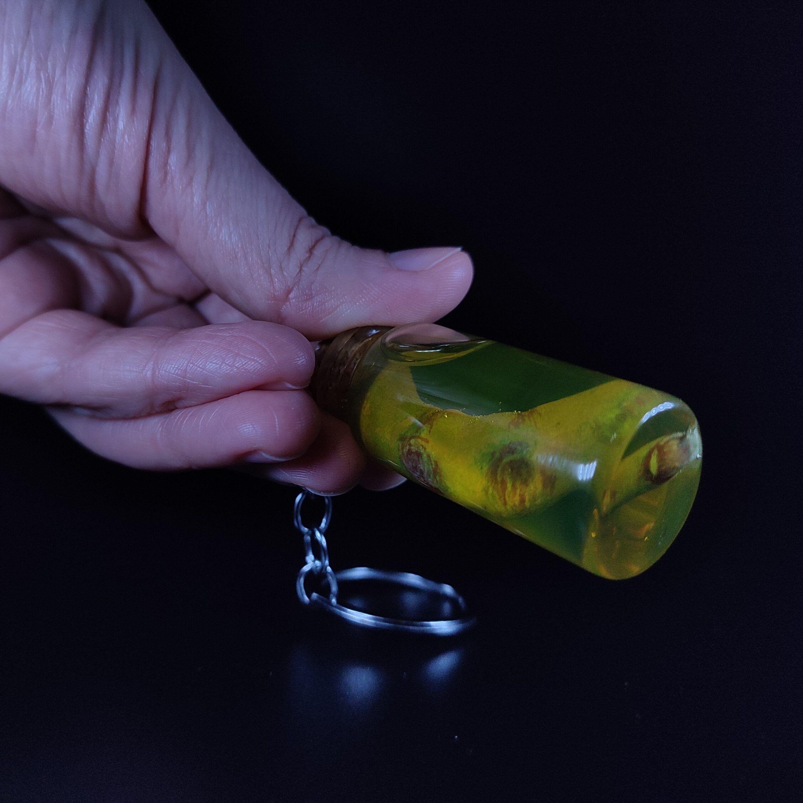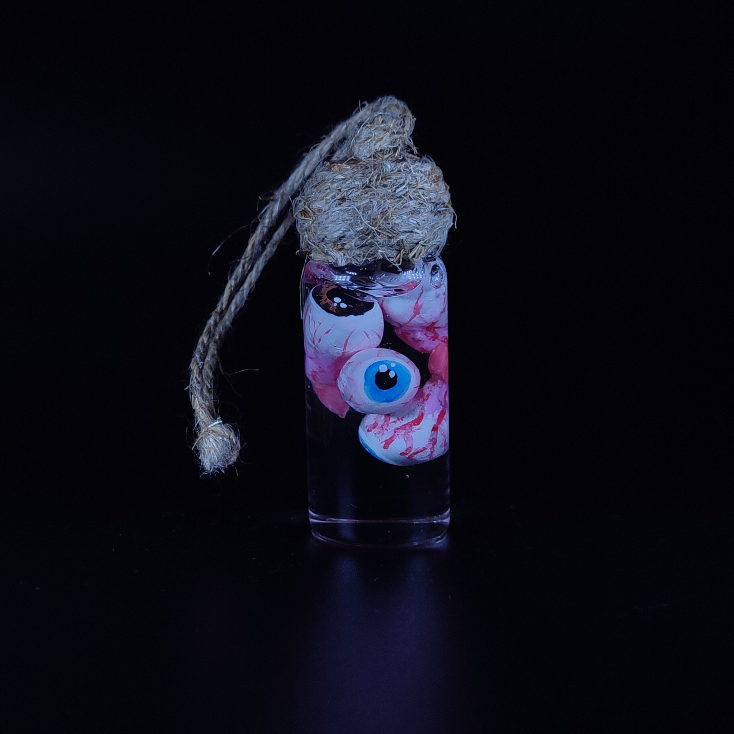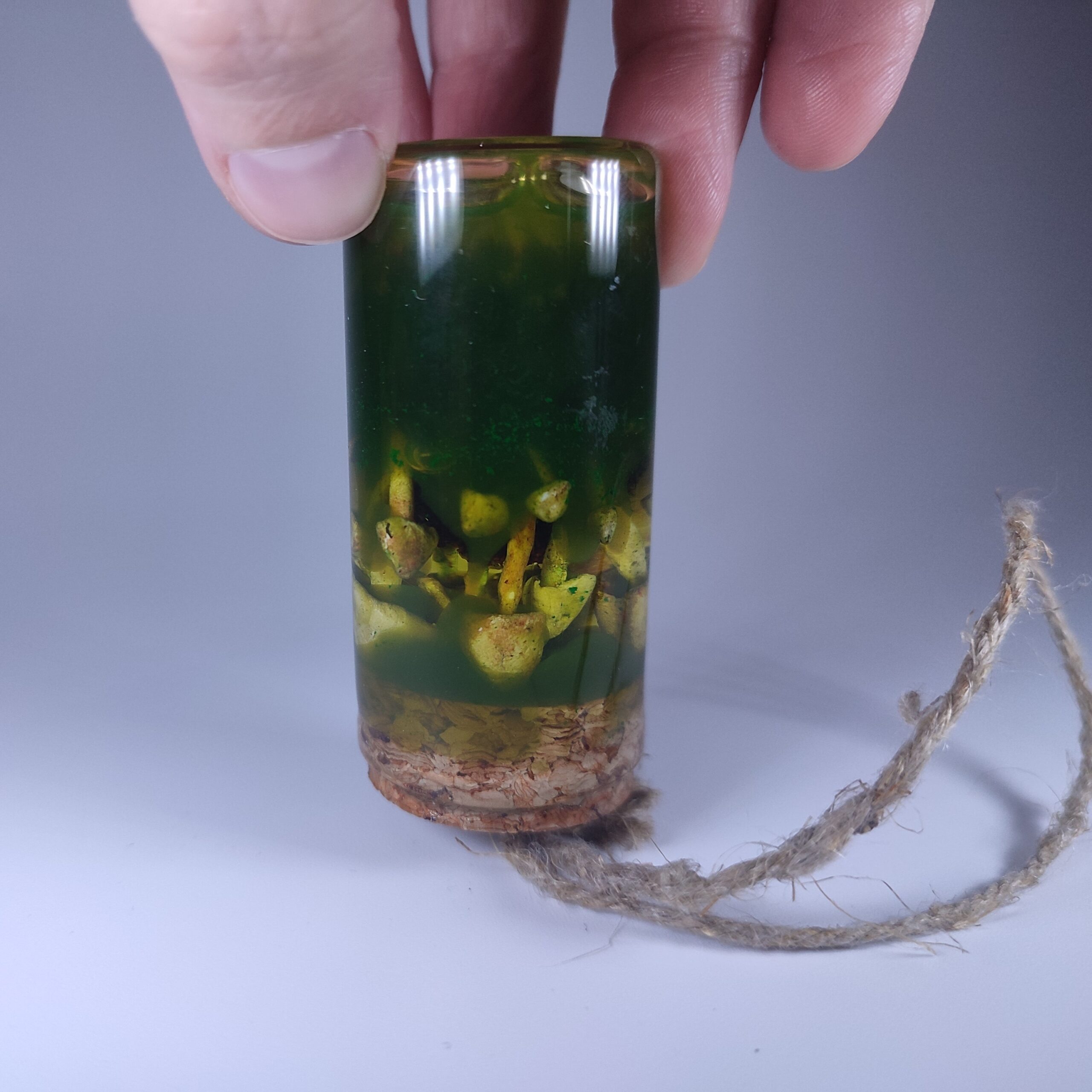 аксессуары в виде стеклянных банок с плавающими в них предметами. Можно выбрать брелки с разным содержанием — глаза, грибы настоящие, грибы светящиеся, природные компоненты — цветы, рябина и т.п.