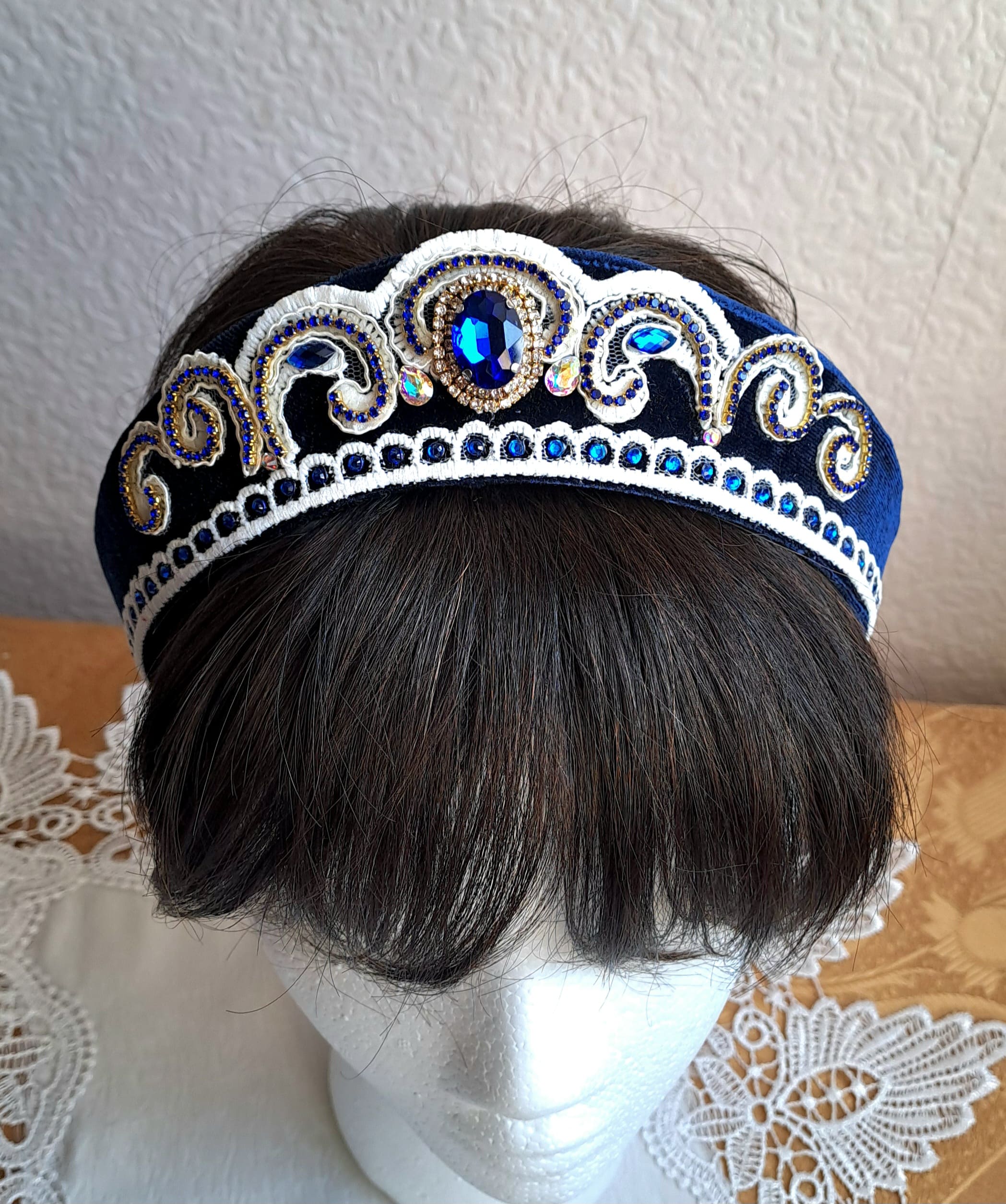 В наличии кокошники из синего бархата.