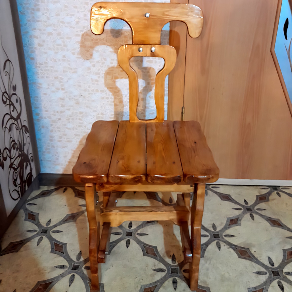 Габариты (см): Высота 44, спинка 40, ширина 37х37. Покрытие: морилка спиртовая цвета дуб, лак яхтный 2 слоя.