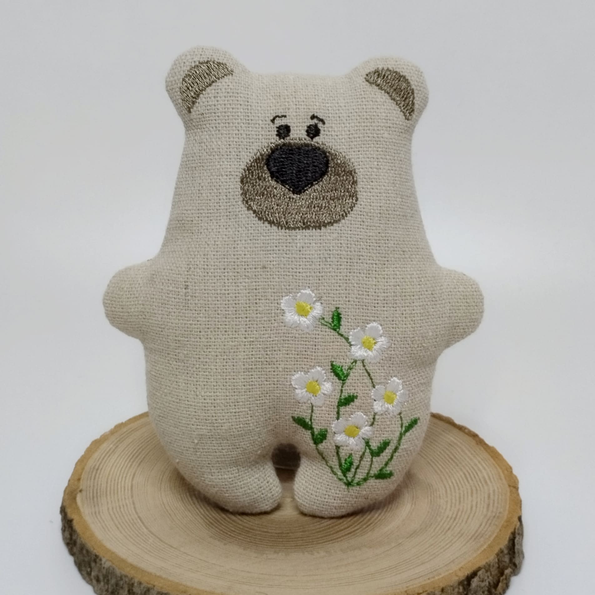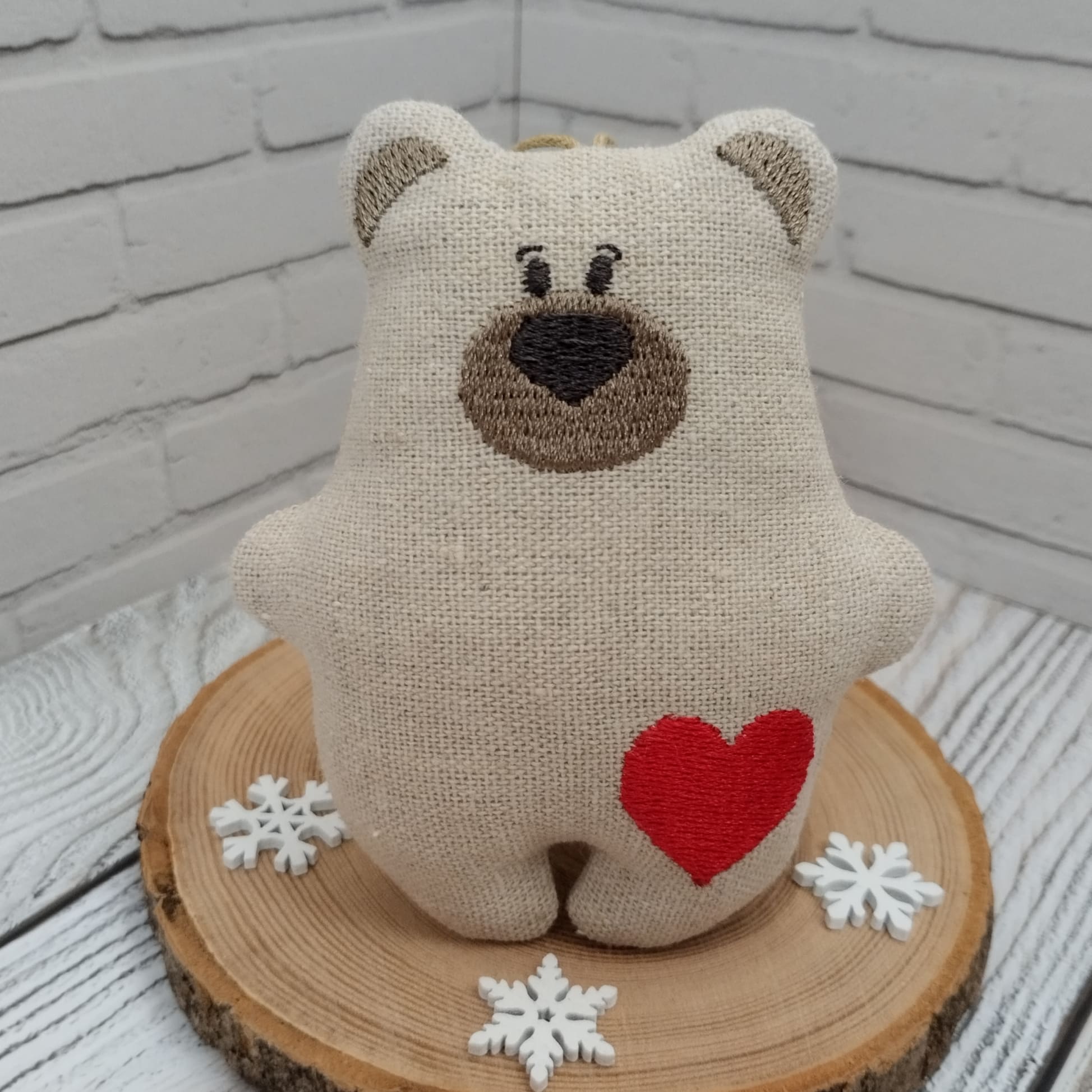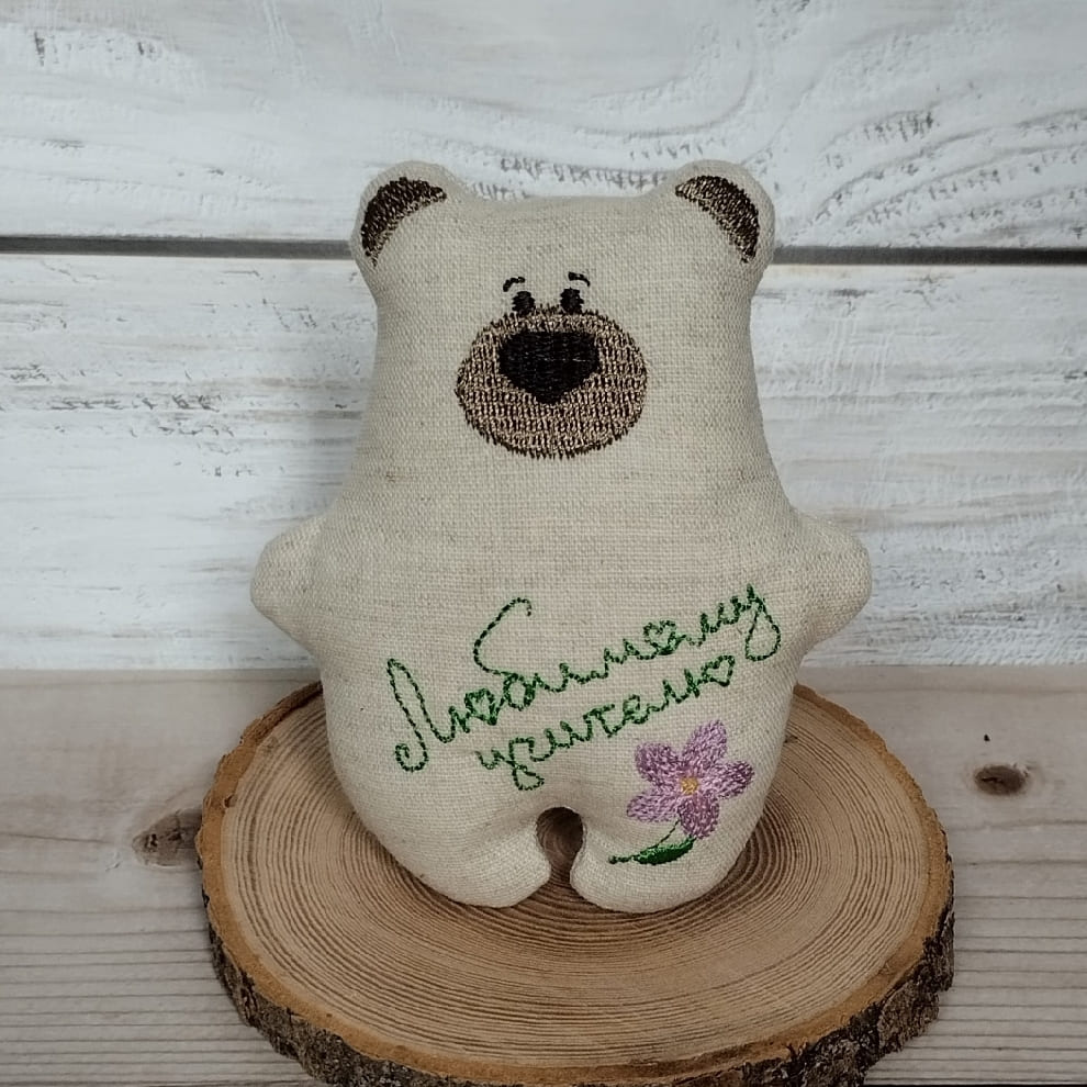 Текстильный медвежонок с вышивкой — уют и тепло в каждой детали.