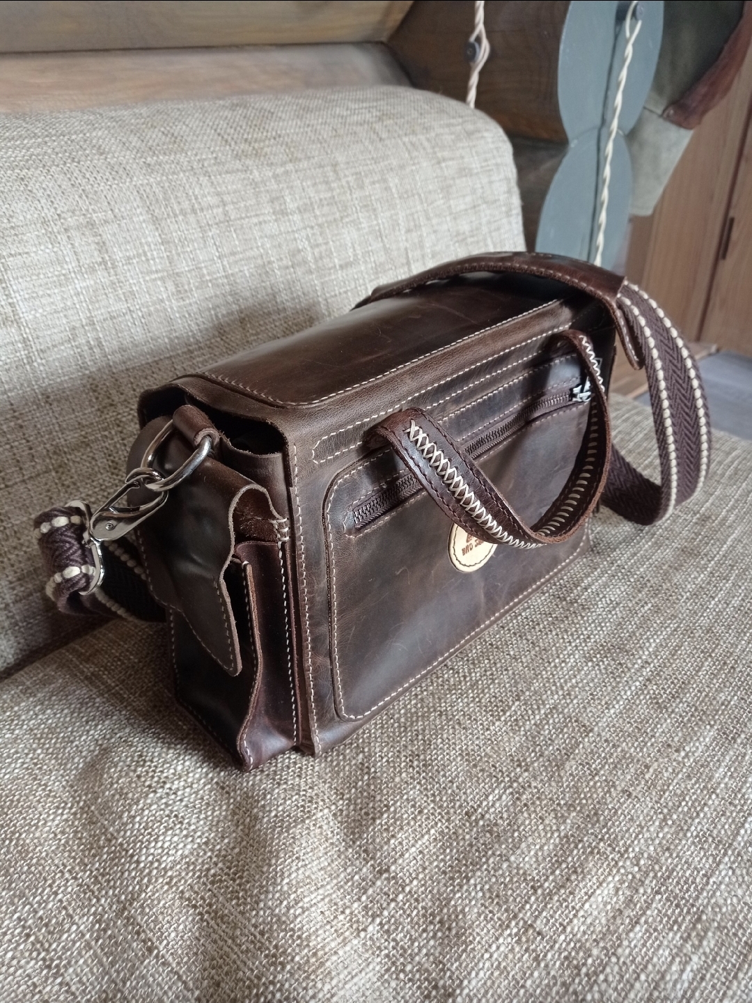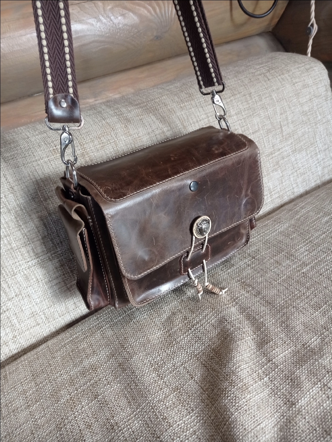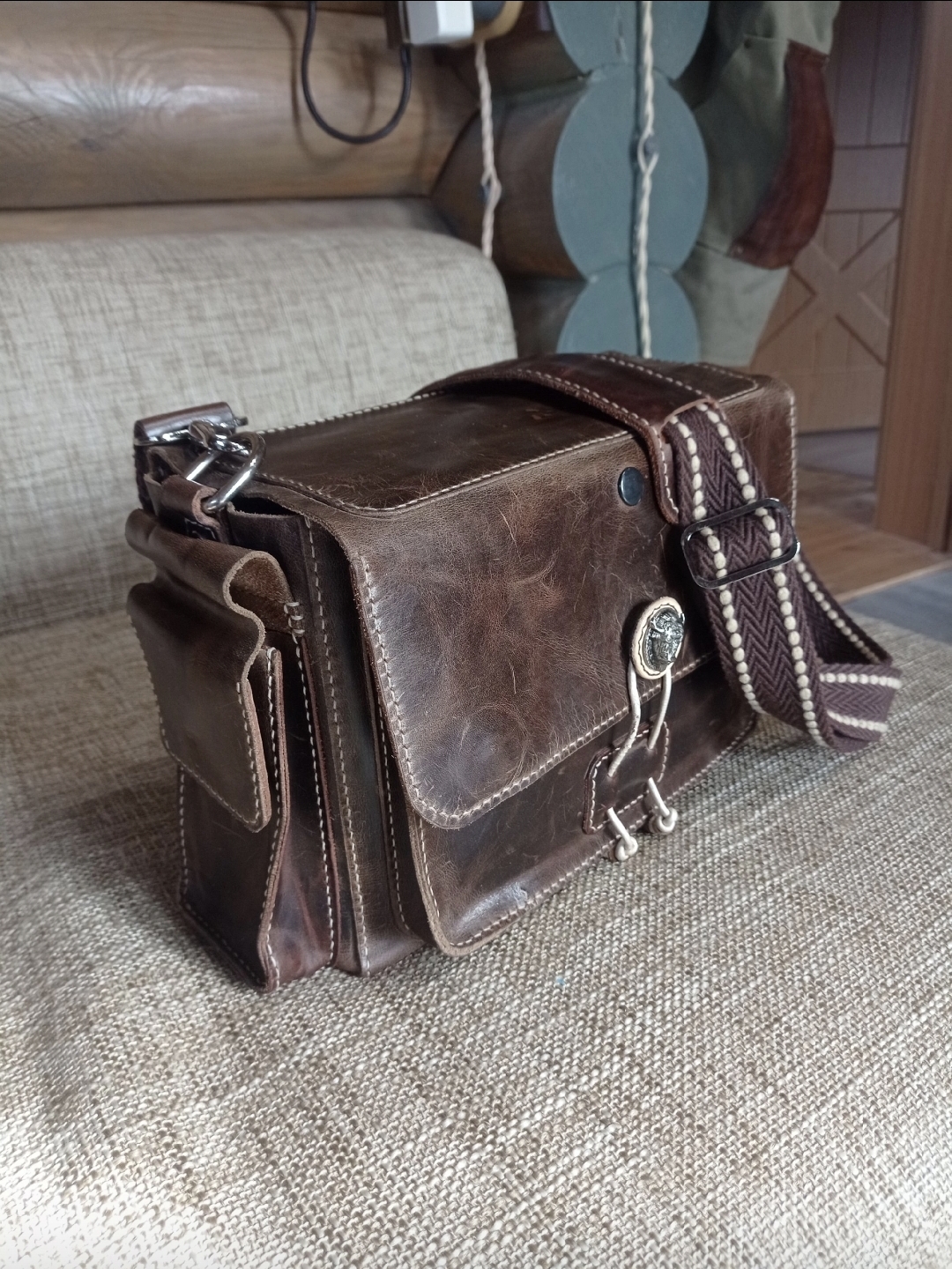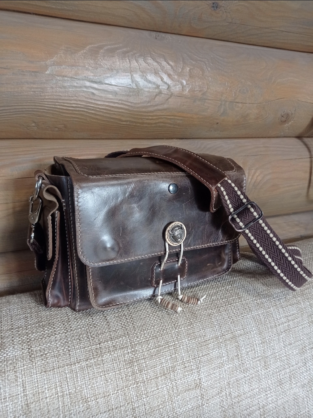Функциональная и вместительная сумка кросс-боди. Корни модели уходят в Юго-Восточную Азию. Темно коричневая Итальянская кожа Crszy horse, защищена специальным составом от влаги и царапин. Унисекс.
