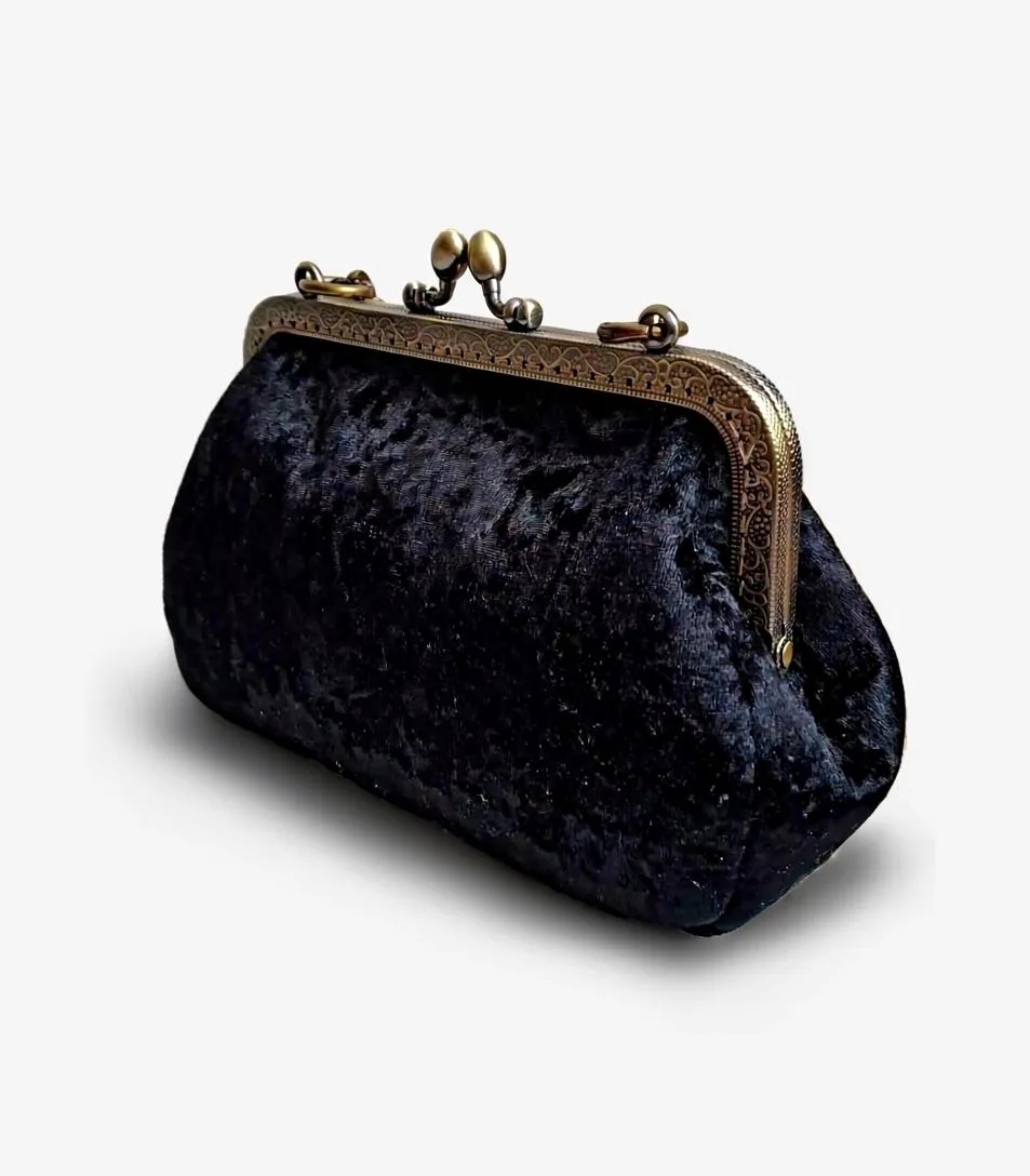 Сумочка с пришивным фермуаром выполнена из мраморного бархата, декорирована вышивкой.