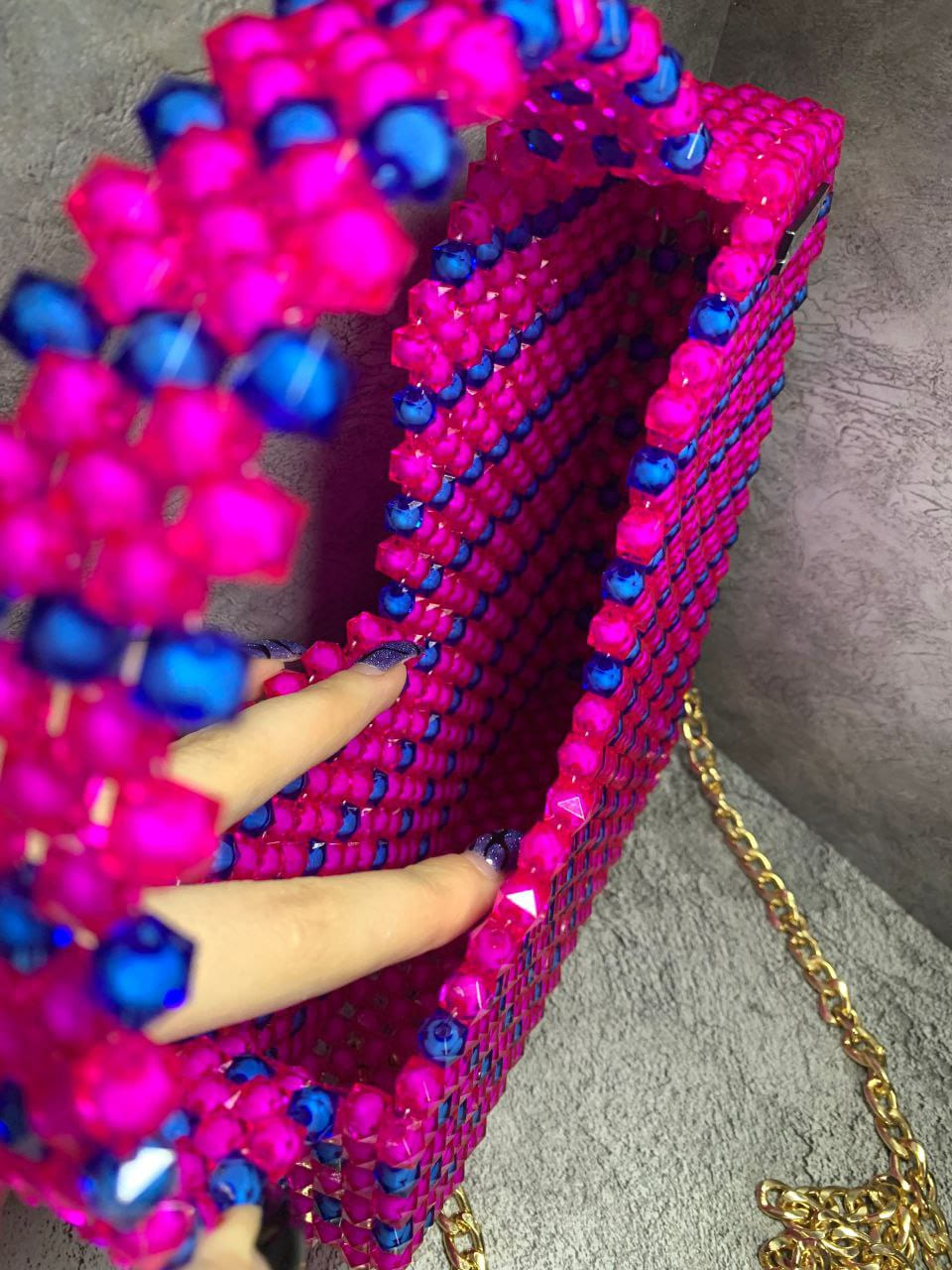 Изысканный handmade-аксессуар, который станет главным акцентом вашего образа. Каждая деталь этой сумки создана вручную: переливающиеся бусины, образующие гибкое и держащее форму полотно и стильная цепочка на плечо.