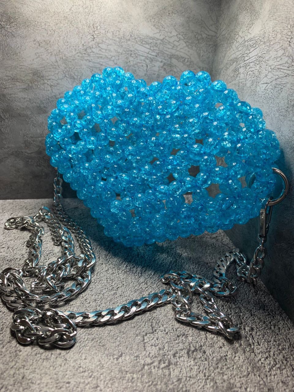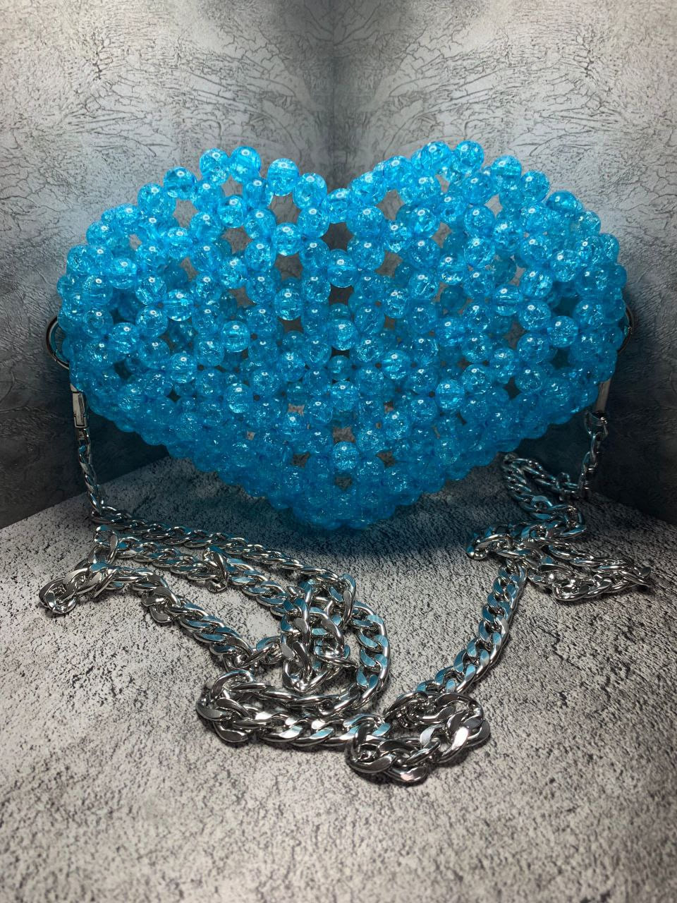 Это больше чем сумка — это застывшая капля моря в виде сердца, собранная вручную из сотен сияющих бусин.