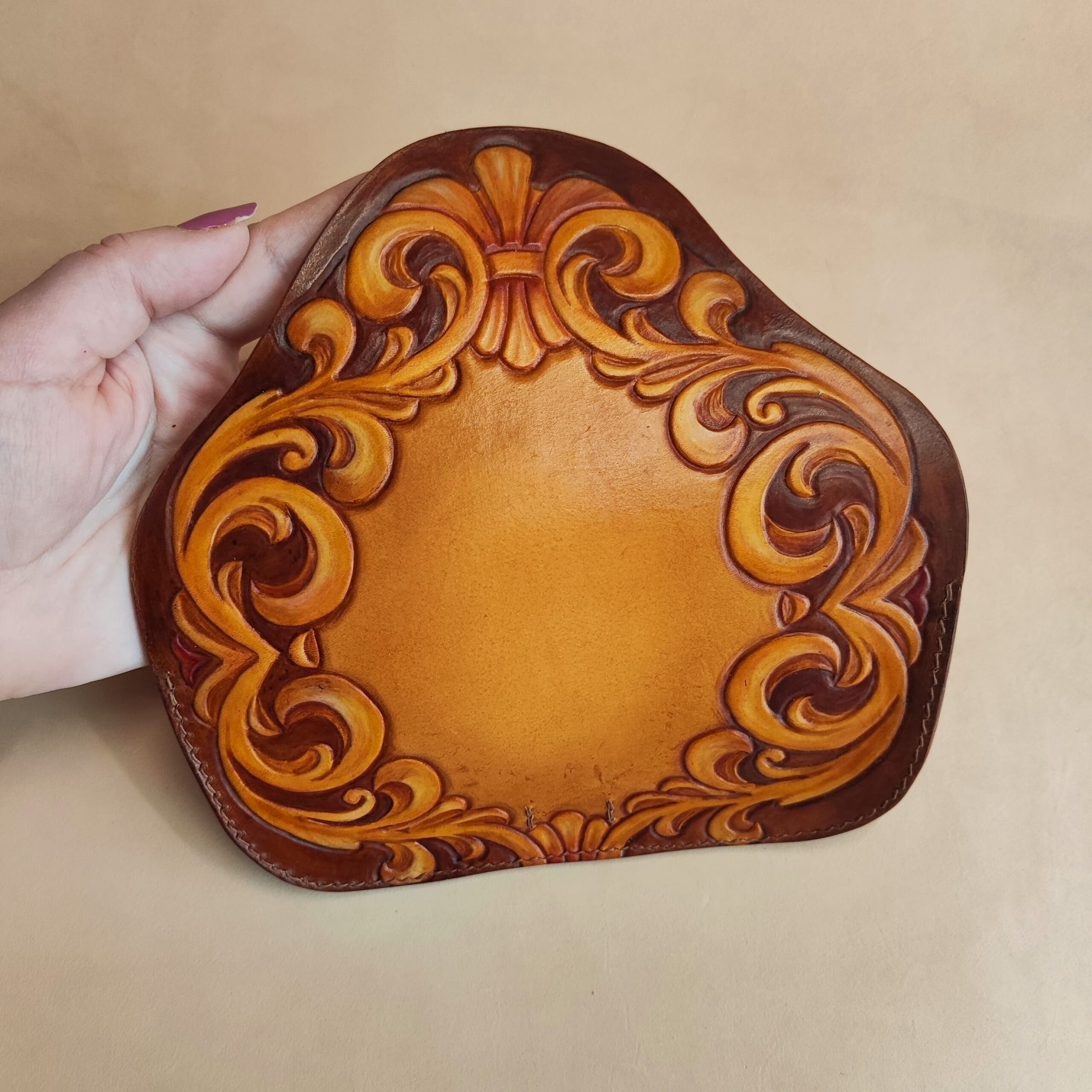 Прошивка вручную седельным швом ,Ручная работа ,Ручная роспись ,С использованием декоративных элементов ,Сборка на фурнитуру ,Тиснение по коже ,Ручной выкрас |