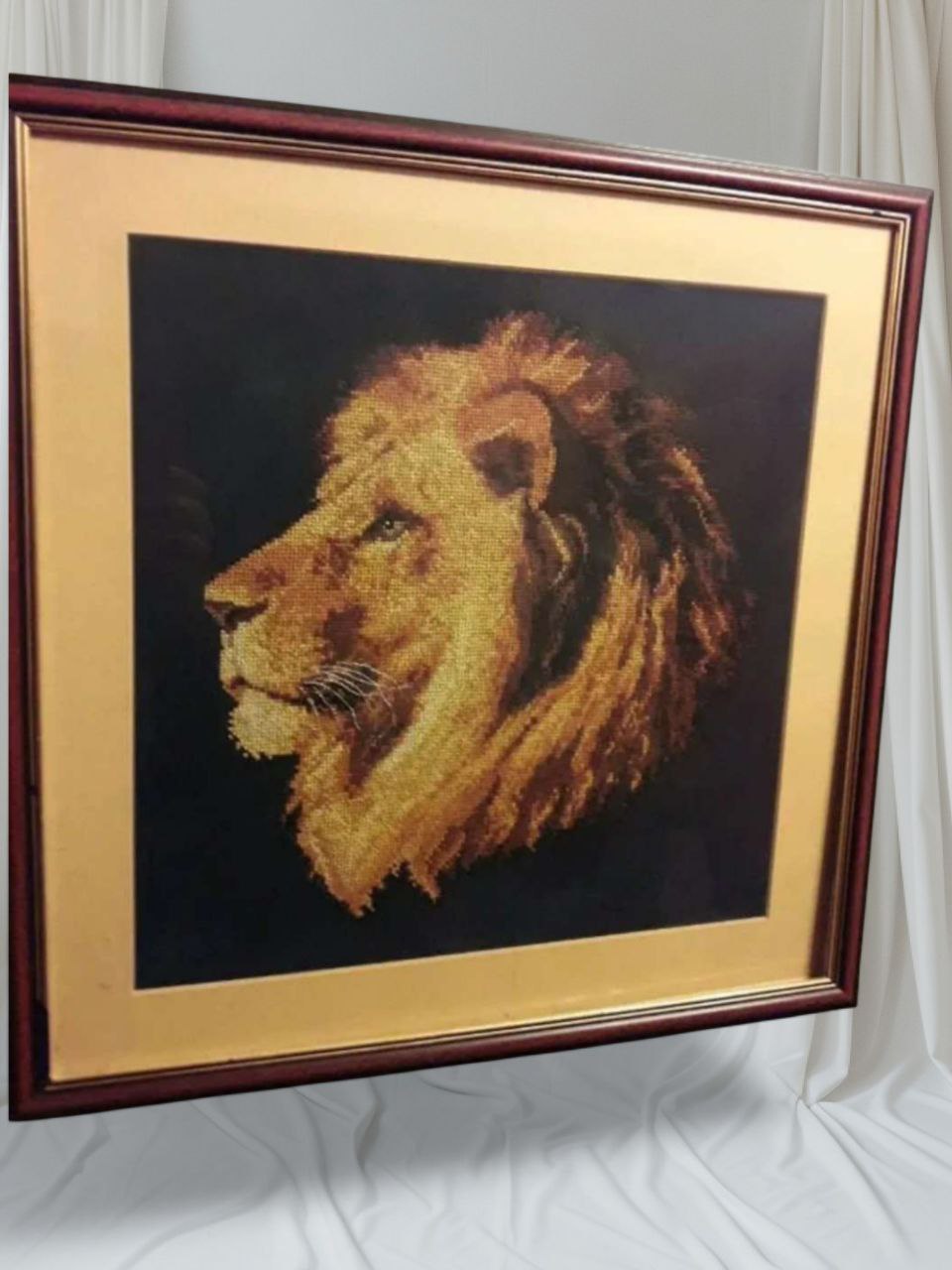 - Ручная работа: вышивка крестом с потрясающей детализацией, передающей мощь и величие льва.